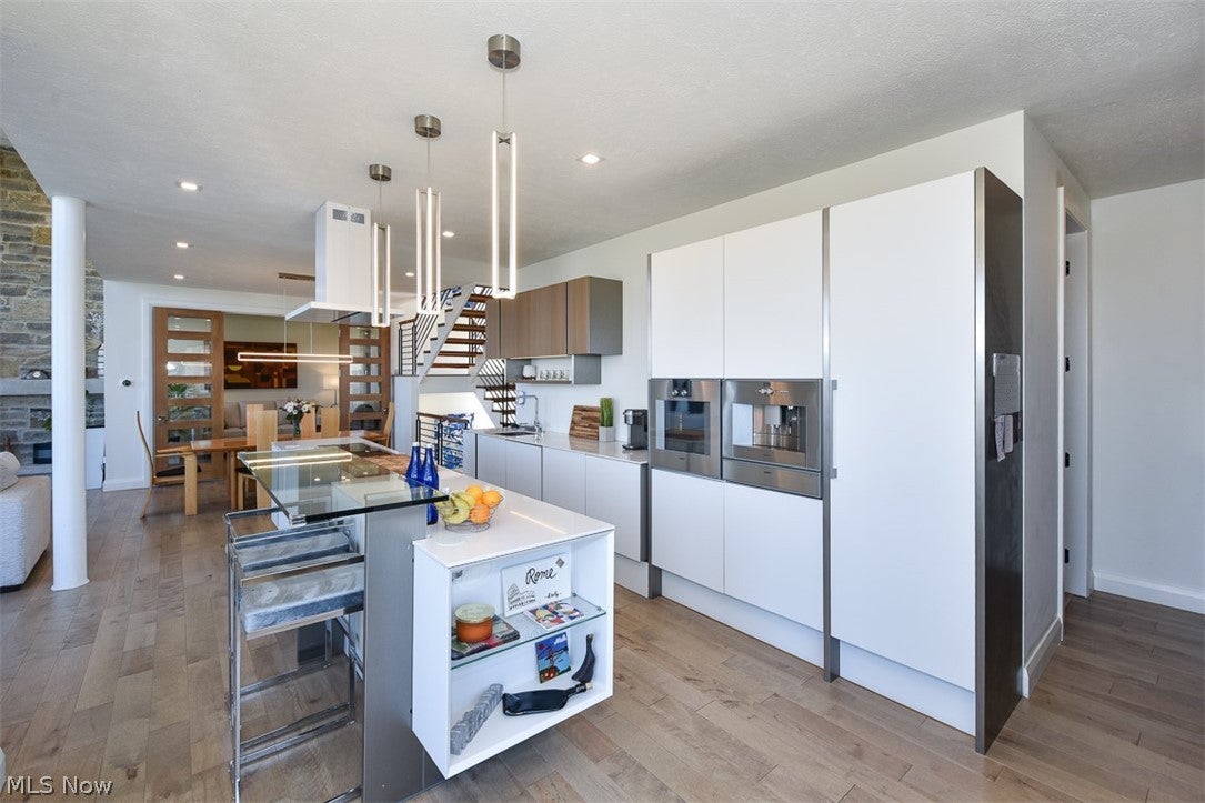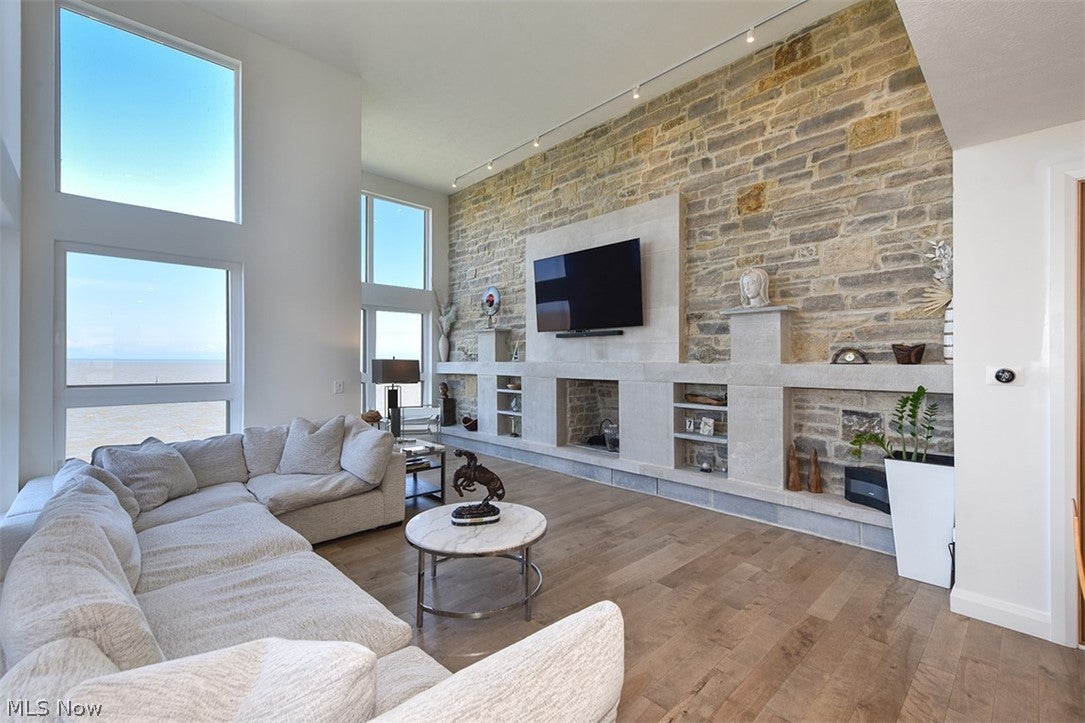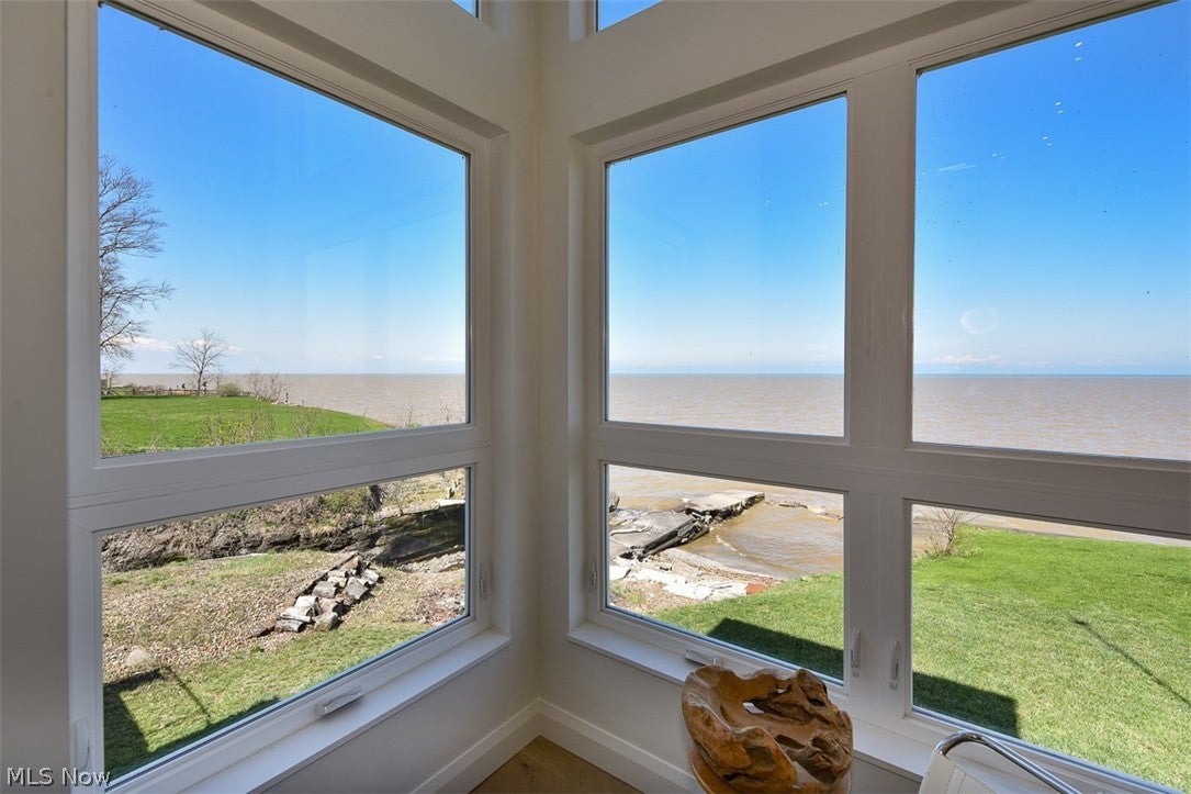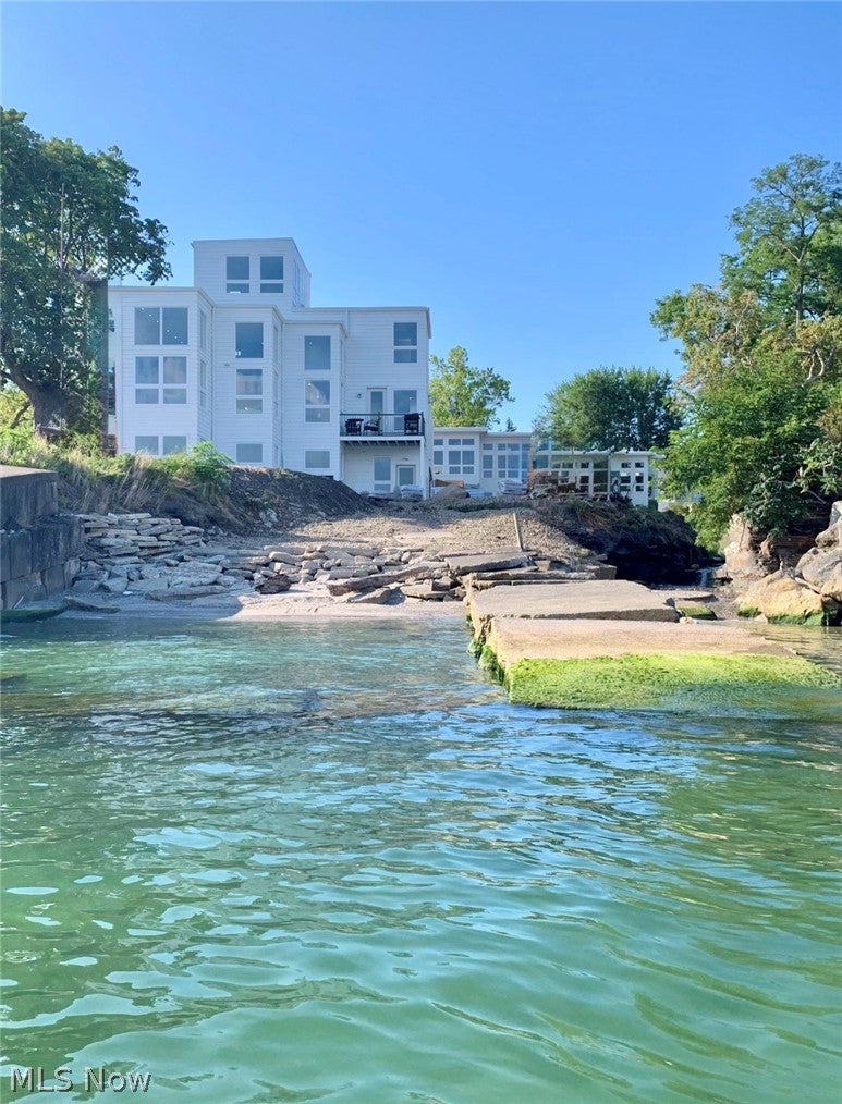Set directly on the shores of Lake Erie, this extraordinary custom-built residence redefines modern lakefront living. Built in 2022, this architectural masterpiece captures breathtaking, unobstructed sunset views while offering rare, direct water accessan unparalleled combination of design, setting, and lifestyle. This 3-bedroom home offers a stunning guest suite, with a full bath on the first floor. Navigate your kayak or jet ski right up to the shore behind your home. Spanning approximately 3,900 square feet across four thoughtfully designed levels, the home seamlessly blends sophistication with function. Expansive walls of glass flood the interior with natural light, culminating in a dramatic 15-foot great room anchored by a visually stunning fireplace wall crafted from authentic Indiana and Ohio limestone. The heart of the home is a globally celebrated culinary showpiece: a Porsche Design P7350 kitchen in collaboration with Poggenpohlrecipient of the prestigious Red Dot Design Award. Outfitted with ultra-premium Gaggenau appliances, this space is as functional as it is iconic. Solid hardwood flooring throughout the main living areas, loft, and sky suite, as well as 8-foot solid walnut doors. Three full luxury bathrooms feature tiled showers, Kohler fixtures, and integrated body spray systems. Two full masonry, wood-burning fireplaces. The fully finished walkout lower level expands the living space by an additional 1,000 square feet with plenty of windows facing the lake. The upper levels include a loft overlooking the vaulted Great Room and incredible views of the horizon. The striking Sky Suite has over 180-degree views of the lake. A spacious lakefront deck and expansive stone patio create the perfect setting for entertaining, complete with a wood-fired pizza oven. This is more than a homeit is a statement in Design, Craftsmanship, and Lakefront Living.
