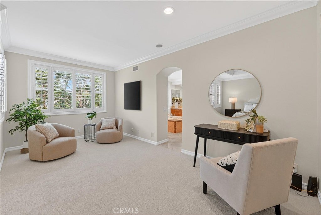 Welcome to an exceptional residence in the prestigious guard-gated community of The Peninsula at Huntington Seacliff, where refined coastal living meets timeless elegance. Ideally situated on a quiet cul-de-sac this expansive 4-bedroom, 4.5-bathroom home offers almost 3,700 square feet of thoughtfully designed living space. Designed for both comfort and sophistication, the home features a highly desirable main-level bedroom with a full en-suite bathperfect for guests or multi-generational living. PLUS, there is still a separate powder bath for guests. Each of the four bedrooms boasts its own private bathroom, offering ultimate privacy and convenience. One of the secondary bedrooms even features a walk in closet, built in bookcases and a private balcony. The formal living room welcomes you with soaring volume ceilings and an abundance of natural light streaming through stunning windows that frame picturesque views of the backyard. Two inviting fireplaceslocated in both the living room and family roomcreate warm, elegant gathering spaces throughout the home. The well-appointed interior includes all new LED lighting throughout, shutters, crown molding, new carpet, a large kitchen with a center island and generous storage, spacious laundry room with sink and laundry chute from upstairs, central vacuum system, a newer air conditioning system with 2 condensers for year-round comfort. Energy-efficient solar panels with a backup battery further enhance the homes modern appeal. Step outside to a beautifully designed backyard retreat that is very private as theres no house behind you. The yard includes a covered patio with recessed lighting and built-in barbecueideal for entertaining or enjoying relaxed coastal evenings. Additional highlights include a three-car garage with built in cabinets and gated front courtyard welcoming your guests and your packages! Recently painted inside and out, this Turnberry home (the largest tract in The Peninsula) is a rare opportunity to own a luxurious home in one of Huntington Beachs most sought-after communities. This unbeatable location just minutes from the renowned Huntington Club, the stunning beaches of Huntington Beach and within walking distance to Seacliff Elementary School, a National Blue Ribbon school repeatedly ranking one of the top elementary schools in California. Furthermore, residents have easy access to parks, gyms, grocery stores, Starbucks, restaurants and more all within walking or biking distance!