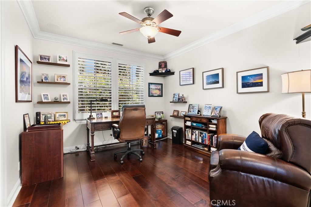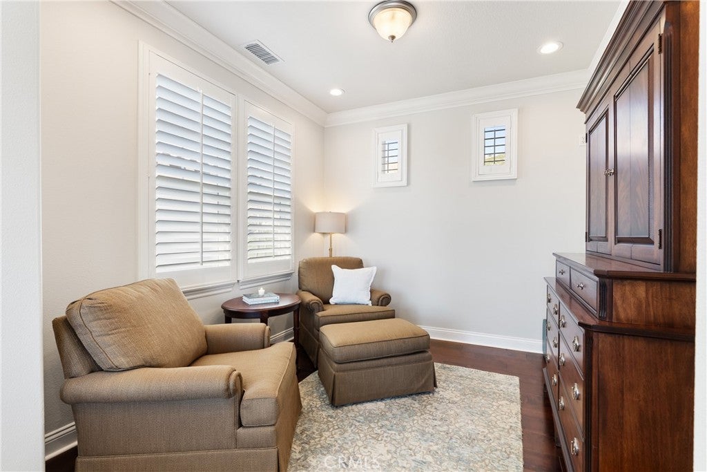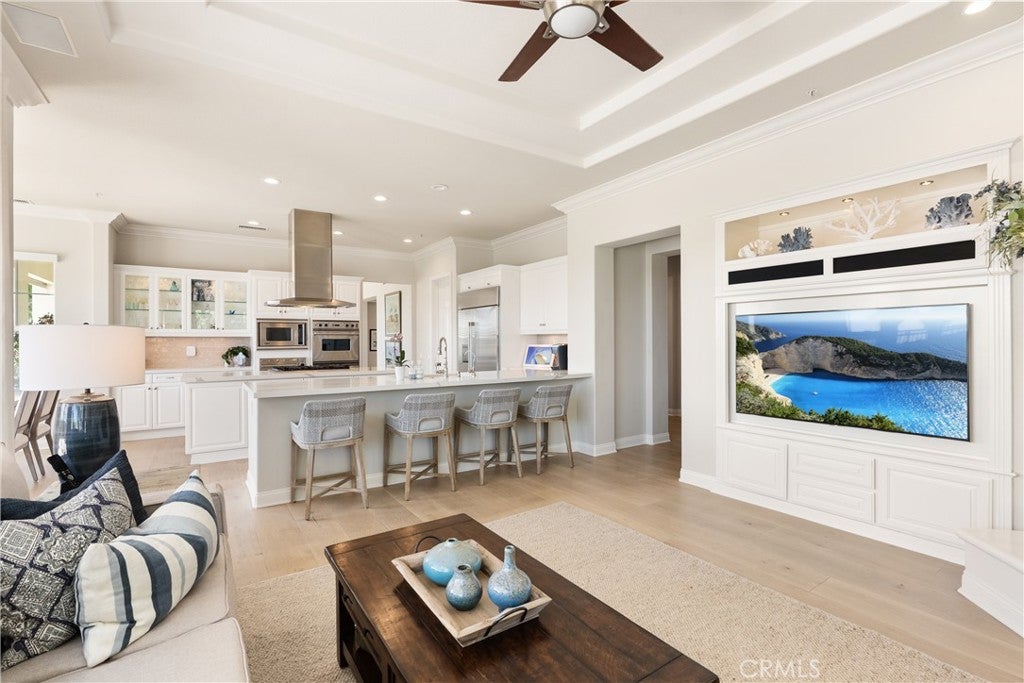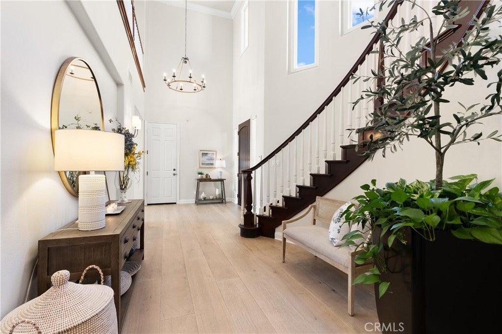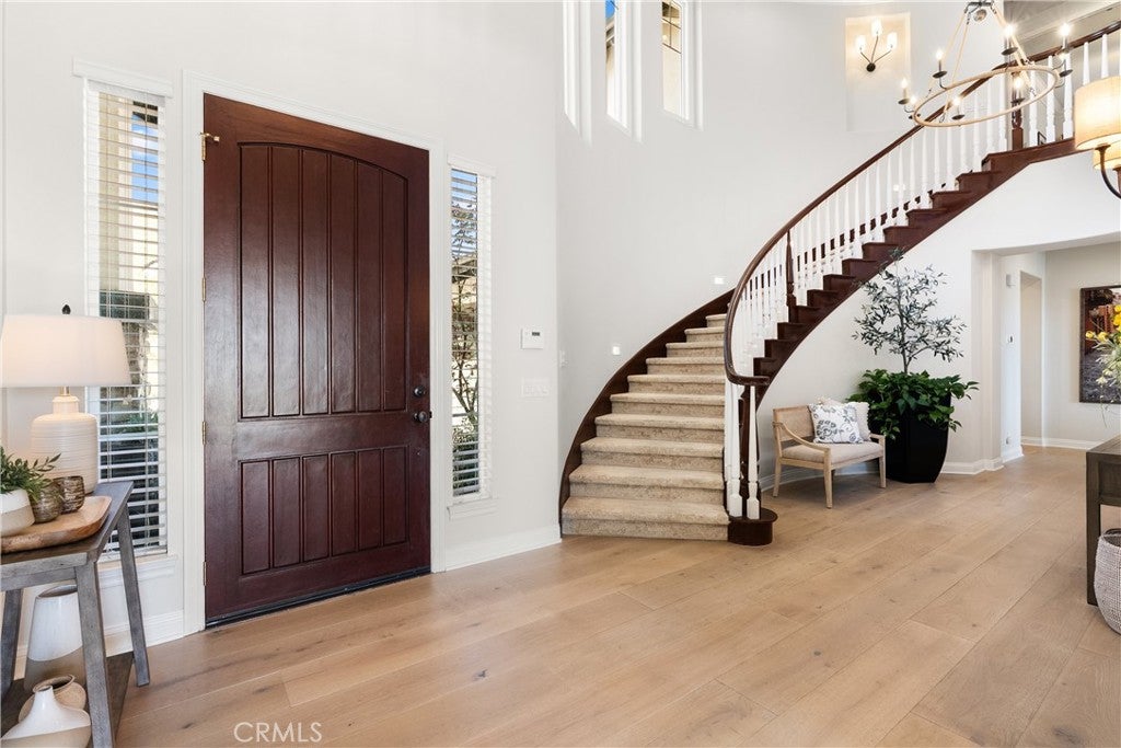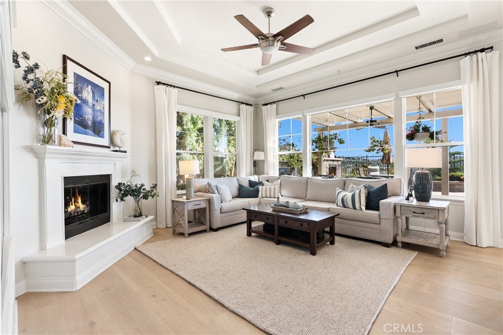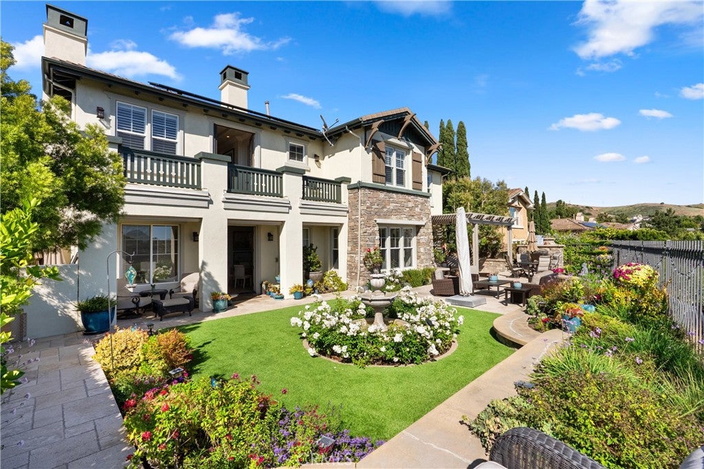 Set on a premium cul-de-sac on a single-loaded street in the highly sought-after San Angelo neighborhood of Forster Highlands, this professionally designed residence offers exceptional privacy with no homes directly across the street. Enjoy panoramic ocean, canyon, hill, and city lights views with a coveted southwest-facing orientation showcasing breathtaking sunsets.Spanning approximately 4,100 square feet, this impeccably upgraded 5-bedroom, 5.5-bathroom home blends luxury, comfort, and timeless coastal eleganceideal for turnkey living or multigenerational flexibility.A grand two-story entry opens to beautifully curated interiors featuring crown molding, designer lighting, new hardwood flooring, and crisp white tones throughout. Formal living and dining rooms are filled with natural light and enhanced by French doors and a statement fireplace.The gourmet chefs kitchen features quartz slab countertops, custom white cabinetry, a 6-burner range, warming drawer, and a large walk-in pantry. It flows seamlessly into the spacious family room with custom built-ins and fireplace, creating an ideal open-concept great room for everyday living and entertaining.A main-level en-suite bedroom with remodeled bath offers flexibility for guests, extended family, or a private office. A powder room and dedicated laundry room complete the lower level.Upstairs, the luxurious primary suite is a true retreat with a sitting area, fireplace, oversized custom walk-in closet, private balcony with ocean views, and a spa-inspired bath with dual sinks, vanity, soaking tub, and walk-in shower. Three additional bedrooms, including en-suite options and a Jack-and-Jill layout, plus a bonus room or optional sixth bedroom, provide exceptional versatility.Additional highlights include owned solar, dual-zone A/C, water softener, central vacuum, security system, EV charging, custom closets, built-in speakers with Sonos, Ring doorbell, and a desirable split 3-car garage.The resort-style backyard is designed for seamless indoor-outdoor living with a covered loggia, outdoor fireplace, built-in BBQ, and stunning panoramic views.Residents enjoy access to pools, clubhouse, parks, and trails, just minutes from beaches, top-rated schools, and no Mello-Roos.