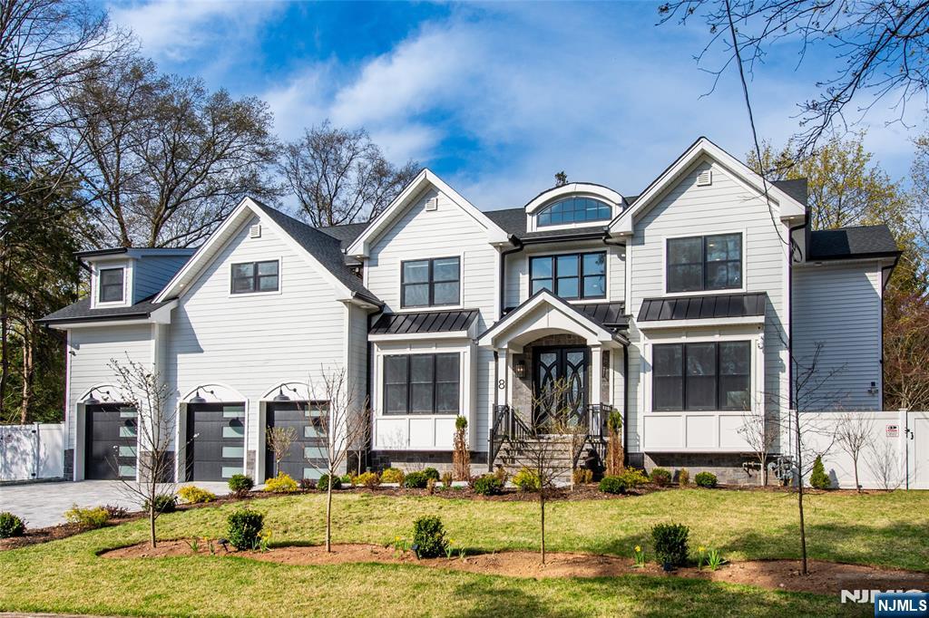 Enter into pure luxury on a quiet dead end street in the East Hill of Demarest. This home is minutes to NYC via the GWB, nearby parks, and in a top rated school district feeding Northern Valley Regional HS at Demarest. It offers 4,140 sqft above grade plus 1,510 sqft of finished lower level space on a 0.319 acre lot. With hundreds of thousands in post construction upgrades, the home features a variance approved extra wide driveway leading to a 3 car garage, stone accented exterior, and Andersen windows throughout. Walnut stained oak floors anchor the main level with a chefs kitchen featuring Statuario quartz, Sub Zero, Wolf, a Cove dishwasher, and a walk in pantry. Every plumbing fixture is House of Rohl, burnished gold in the kitchen and polished chrome in each bath. Gas fireplace, kitchen island, paver patio, and fully fenced yard make it easy to entertain, while a first floor junior suite offers multigenerational flexibility, and a powder room completes the main level. Upstairs, the primary suite offers dual walk in closets, cove lighting, motorized shades, and a spa bath, plus two junior suites, a fifth bedroom, and a hall bath. The radiant heated lower level adds a rec room, home gym, wet bar rough in, bonus room, and a full bath. Also included: 50 AMP EV charger, 8 camera CCTV security, whole house water filter and water softener, and Generac ready transfer switch. Virtual Tour link contains the full gallery, video tour, and spec sheet. Book your private showing today.