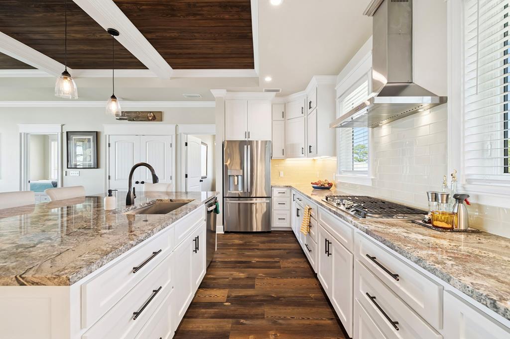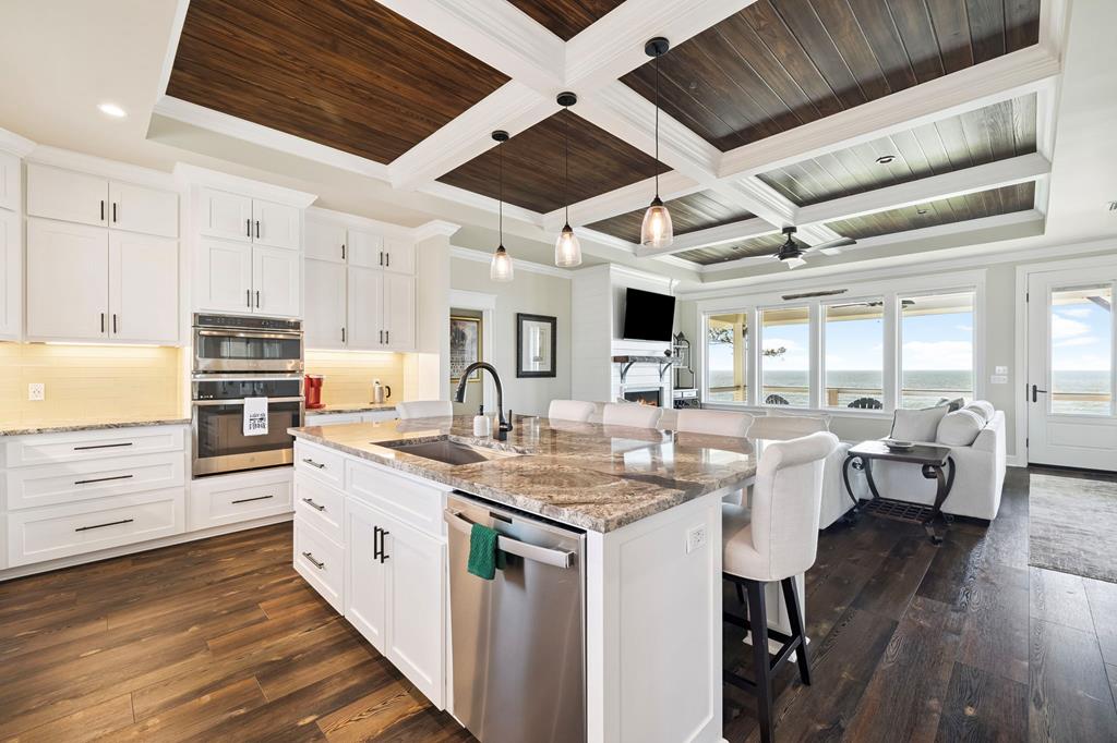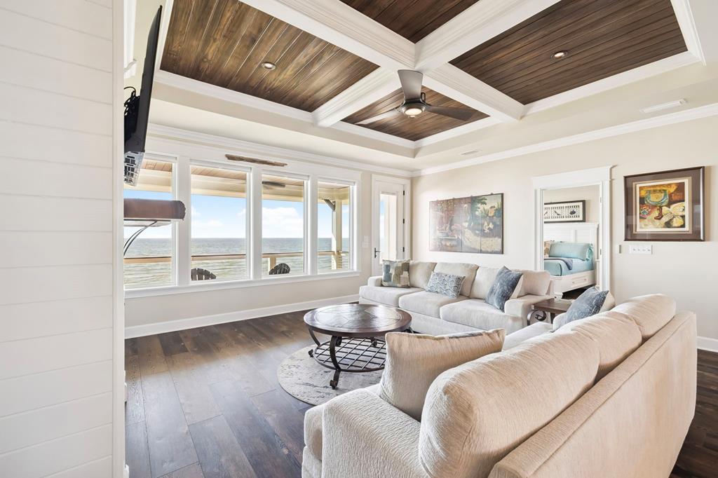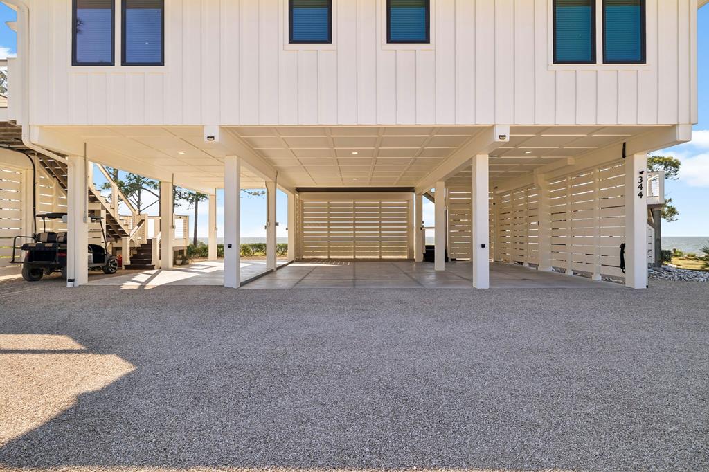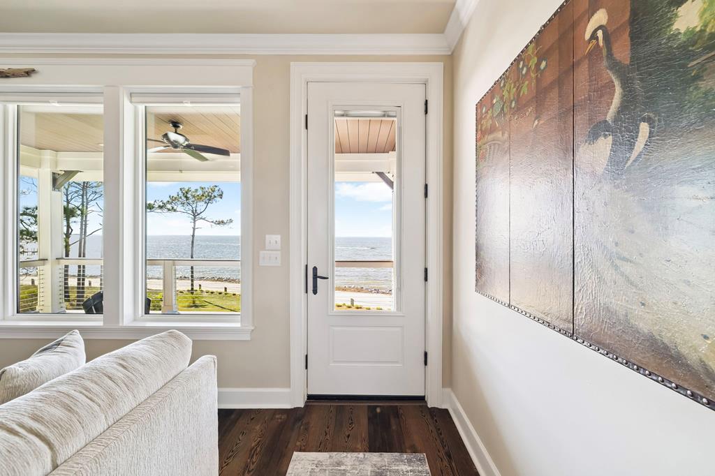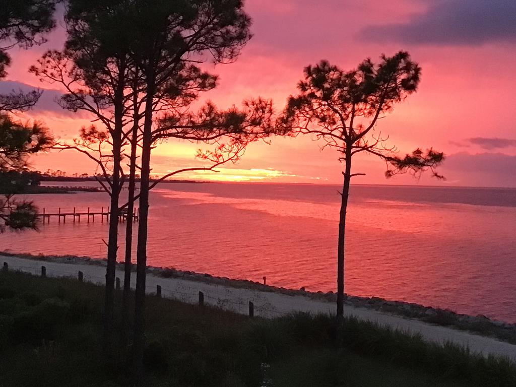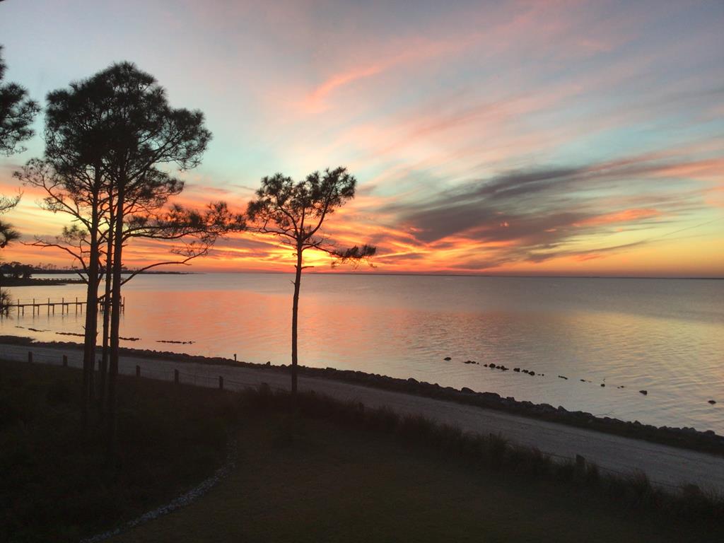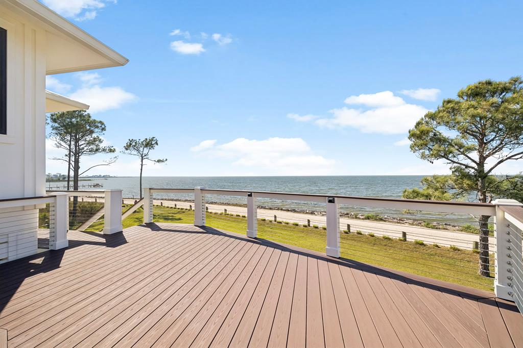 A home where the water always takes center stage. This 2022 custom-built island residence offers the best Apalachicola Bay sunsets, year-round. Positioned for unobstructed western views, it captures glowing sunrises and moonsets. Oversized 3x6 hurricane rated casement windows frame the bay from nearly every room, blending protection, energy efficiency, and beauty. Inside, the open great room showcases coffered ceilings w/ stained pine inlay and crown molding adding rich dimension, while a ship lapped gas fireplace anchors the space with a live edge cypress mantle milled from Apalachicola River wood. The custom kitchen is a chefs delight, featuring maple cabinetry to the ceiling, seamless Brazilian granite counters, a large eat in island, 5 burner gas cooktop, ZLINE hood, and dual smart ovens - one an Advantium for speed and versatility. Two bay facing primary suites showcase private baths and sweeping views; a third bedroom and flex space add comfort for guests or an office. Every finish feels considered - wide plank LVP flooring, recessed dimmable lighting, and whisper quiet soundproof insulation. Built for longevity and health, the home includes steel ductwork, a full HALO air purification and dehumidification system, Purple Board drywall, attic spray foam insulation, and a 500 gal propane powered whole home generator. Outdoor living flows effortlessly with TimberTech decking, stainless cable railings, and a covered ground level retreat perfect for sunset cocktails. Additional highlights include Blueskin water barrier exterior, a 12 zone Rainbird irrigation system, and ample storage. Adjacent parcels are available, offering control of sightlines and the option to expand. Kayak from your shoreline into world class fishing waters or take a short golf cart ride - just a half mile south - to the soft white sands of the Gulf. This is island living refined: panoramic views, enduring quality, and easy elegance - crafted for those who want their waterfront dream to last.