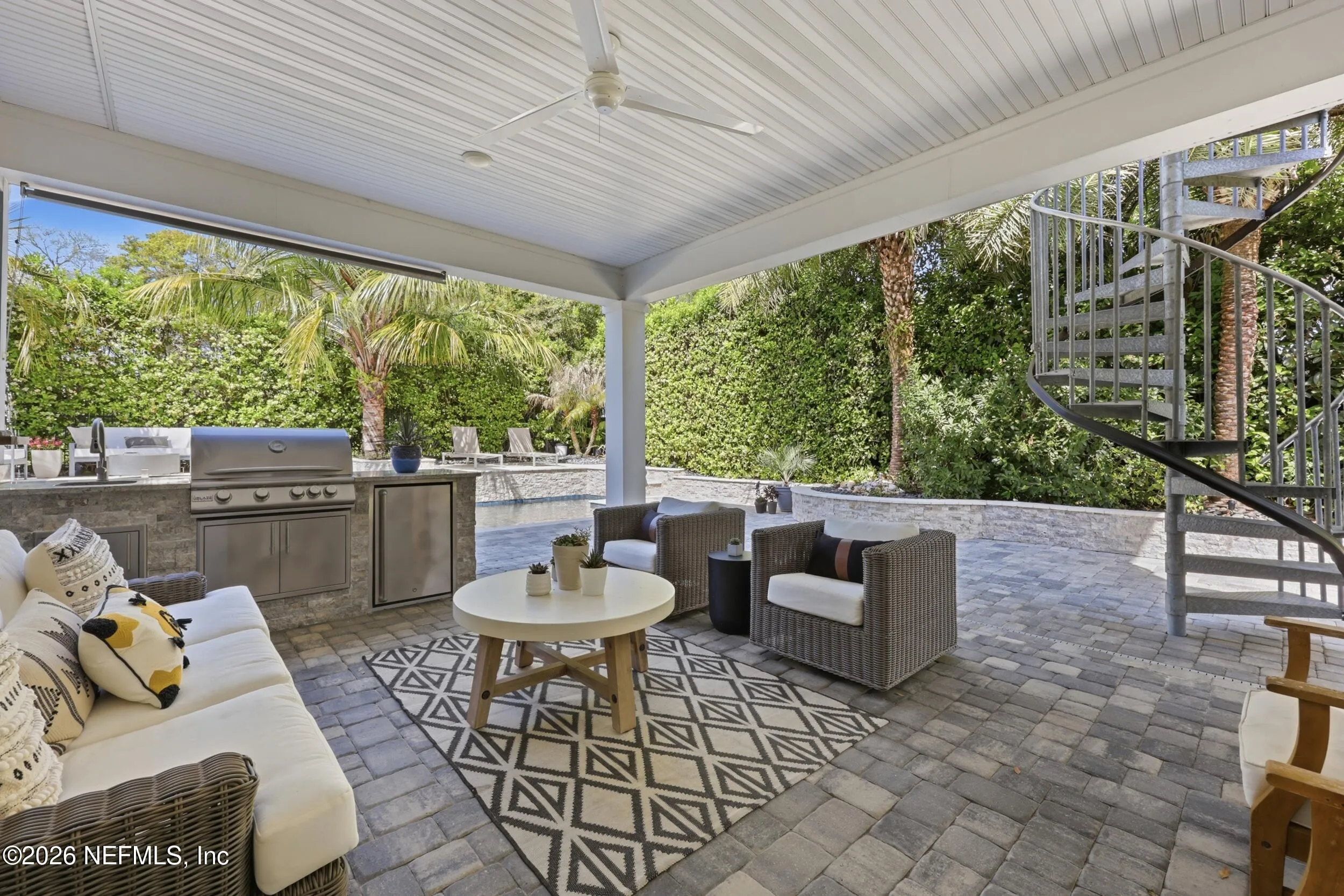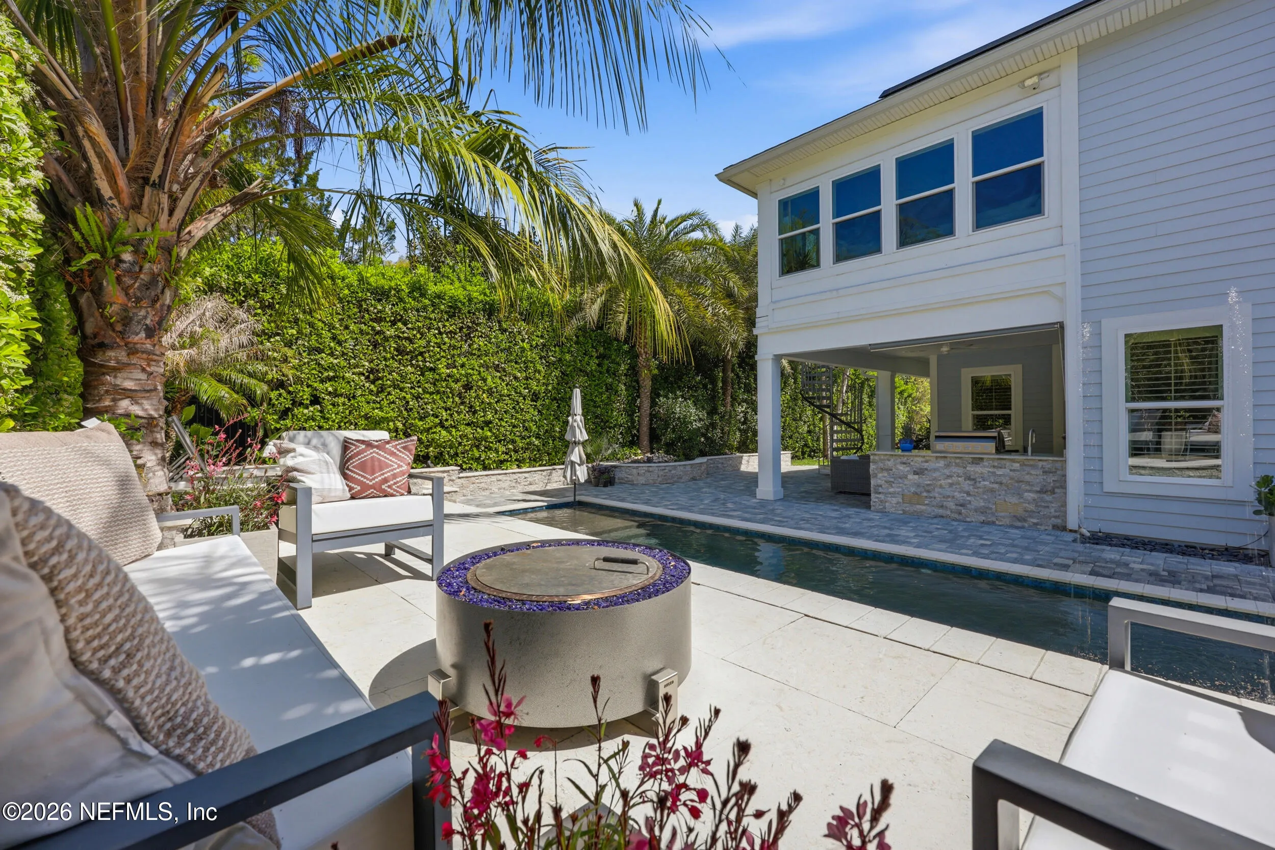 Luxury coastal living meets unmatched lifestyle amenities in this 2018-built home in a neighborhood known to locals as a hidden gem. Featuring hurricane impact glass windows and spray foam insulation, this energy-efficient property is fully powered by Tesla solar panels, delivering zero electricity or gas bills, while natural gas service powers all gas appliances, including pool equipment.