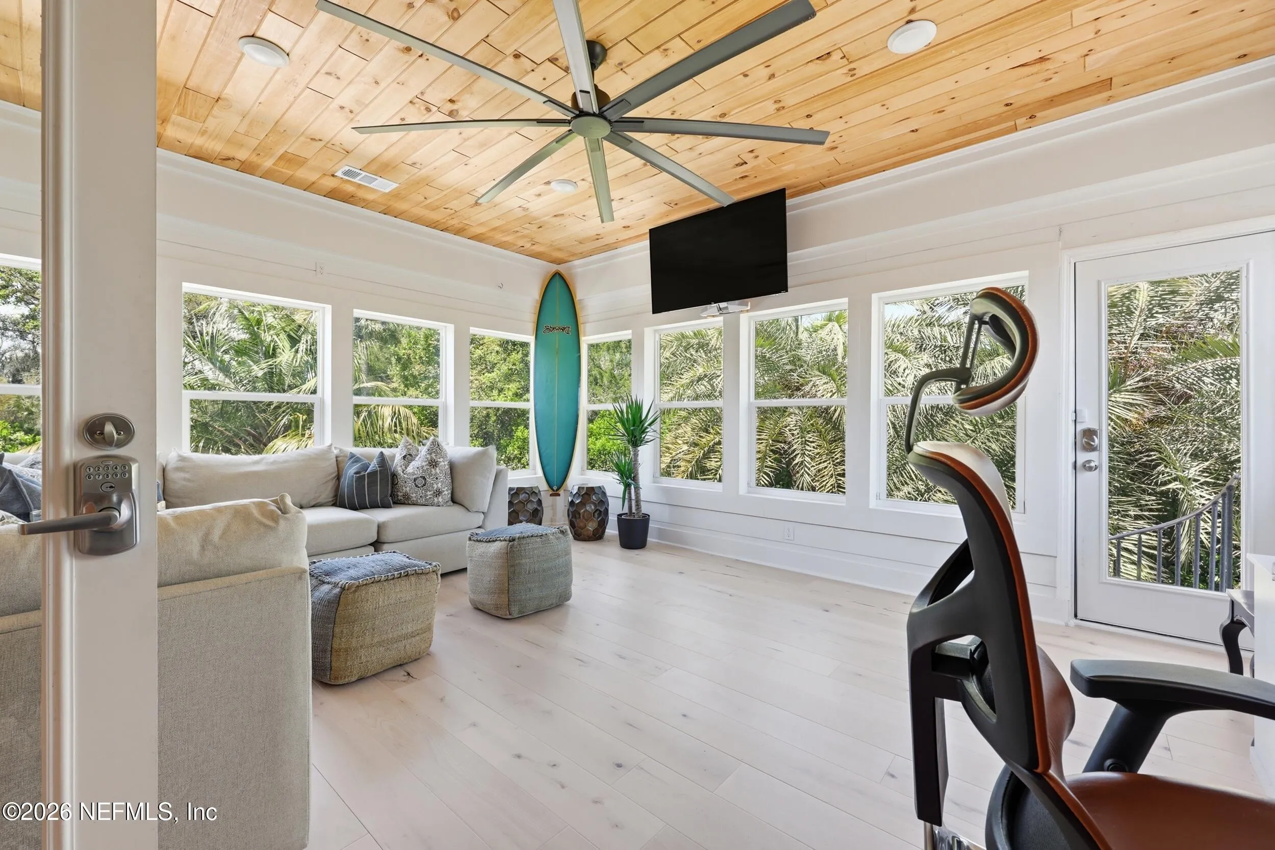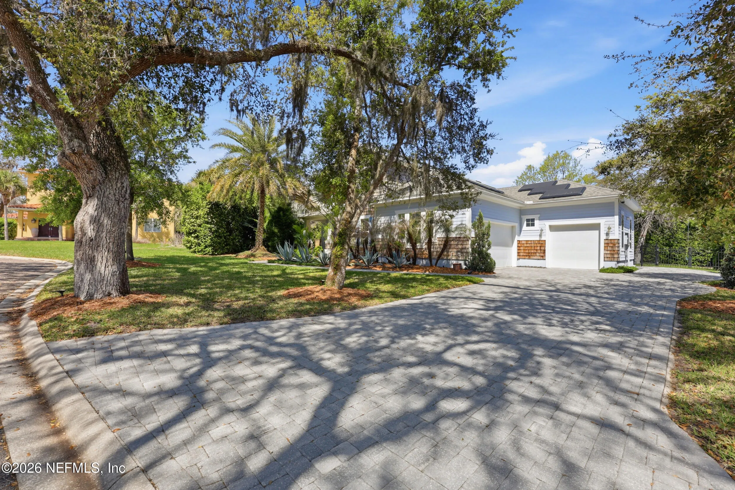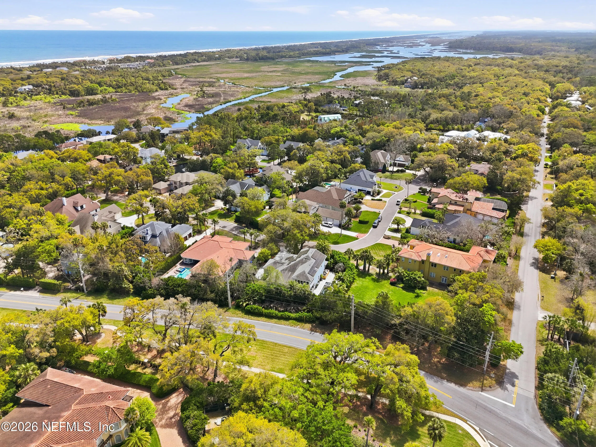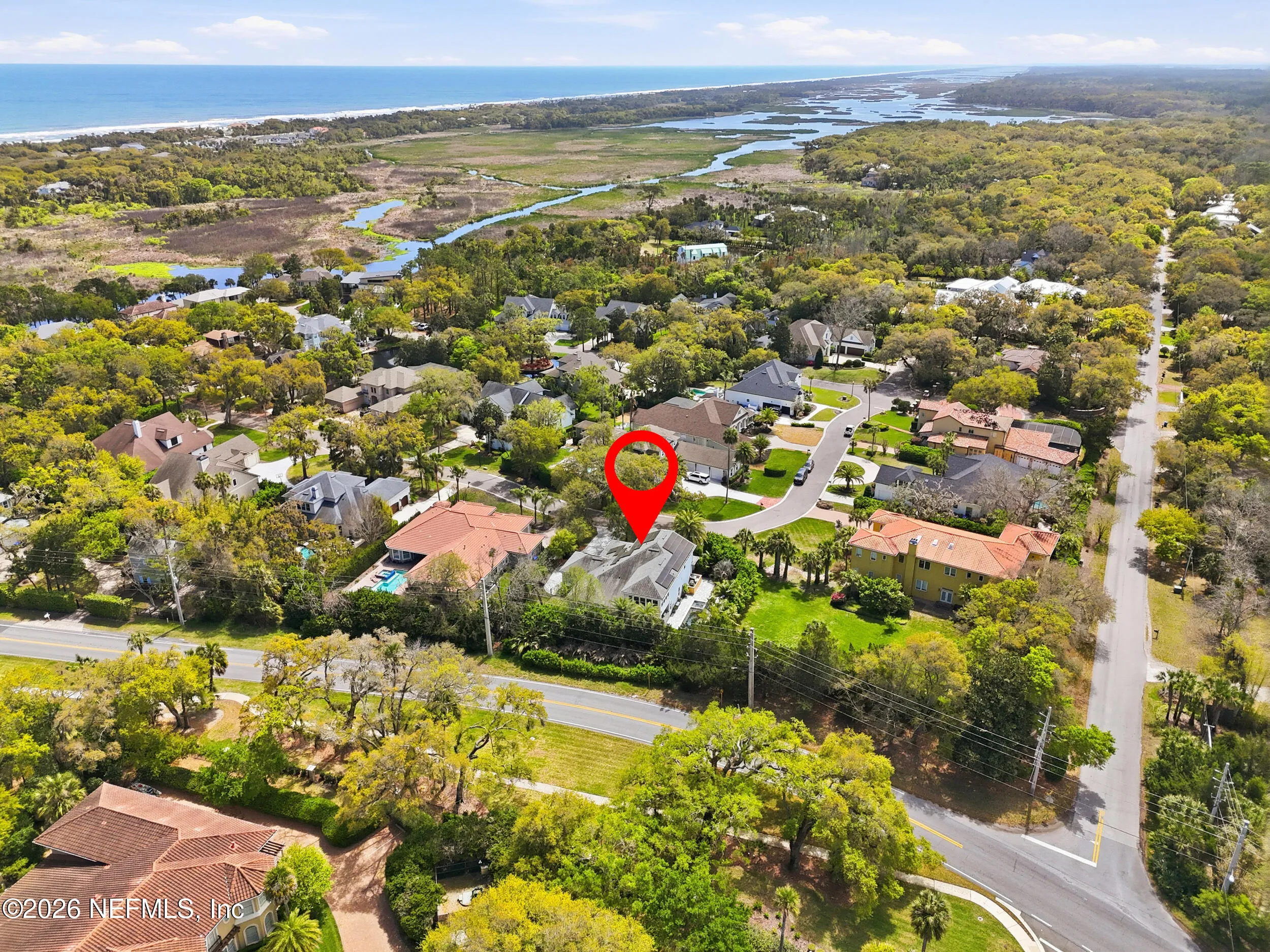 Luxury coastal living meets unmatched lifestyle amenities in this 2018-built home in a neighborhood known to locals as a hidden gem. Featuring hurricane impact glass windows and spray foam insulation, this energy-efficient property is fully powered by Tesla solar panels, delivering zero electricity or gas bills, while natural gas service powers all gas appliances, including pool equipment. Enjoy a rare 55-foot lap pool and a private backyard oasis perfect for relaxing or entertaining. Take advantage of exclusive access to a private kayak launch to the scenic Guana Preserve, ideal for outdoor enthusiasts. Step out your back gate and walk less than half a mile to Micklers Beach for daily ocean breezes and sunsets. Inside, an open floor plan, abundant natural light, and spacious living areas create a seamless flow for modern living. Located near top-rated St. Johns County schools, this home defines the ultimate Ponte Vedra Beach lifestyle.
