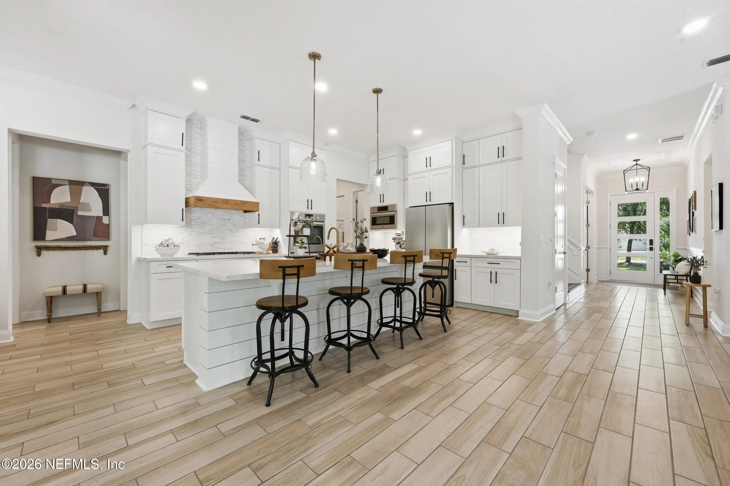 Welcome to 91 Siasconset Lane, a Gulf-view luxury home nestled in the highly desirable Prominence South neighborhood of Inlet Beach, Florida. Located just south of Scenic Highway 30A and within walking distance of The Big Chill, this fully furnished 4-bedroom, 3.5-bath retreat was built in 2021 and has never been rented - offering pristine condition and turn-key appeal. Enjoy stunning Gulf views from the third-floor balcony. Inside, youll find designer furnishings, 10 ceilings, 8 doors, artisan shiplap accents, and quartz countertops throughout. The chefs kitchen includes ample cabinetry, a walk-in pantry, and seamless flow into the open-concept living and dining areas. A private elevator connects all three floors for maximum accessibility. The spacious layout sleeps 14, includes a custom-built bunk suite with four queen beds, a cozy lounge, and en-suite bath, ideal for guests or large family gatherings. The serene primary suite features a Gulf-facing porch, spa-like bath, and private seating area. Located in a golf-cart-friendly community, this home offers access to two resort-style pools (one heated off-season), a fitness center, grilling areas, and proximity to Watersound Club (membership required). Public beach access is just mile away. With projected rental income between 100K-125K annually and low monthly ownership cost (2,600), this home presents an exceptional second home or income-generating opportunity.