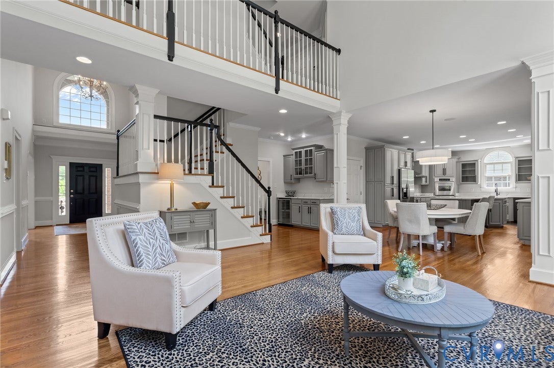 Welcome to 5412 Hillshire Way, an exceptional custom built executive home nestled in the desirable Hillshire at Berkeley community. Situated on a private, nearly half-acre lot, this property offers the perfect blend of space, comfort, and refined living.Step inside to discover a thoughtfully designed interior featuring a dramatic two-story family room filled with natural lightideal for both everyday living and entertaining. The spacious kitchen is a standout, showcasing brand-new quartz countertops, ample cabinetry, and a functional layout that will impress any home chef. Fresh paint and two levels of hardwood floor throughout creates a clean, modern, and inviting atmosphere.This home offers versatile living with a first-floor bedroom and full bathperfect for guests, multigenerational living, or a private home office. The primary suite is expansive, offering a sitting area and custom walk in closet. Generously sized additional bedrooms and living spaces provide flexibility for a variety of lifestyles. Hardwood floors throughout the first and second levels Outside, enjoy over 1,000 square feet of beautifully designed hardscaping, creating an ideal setting for outdoor entertaining, relaxing evenings, or weekend gatheringsall within the privacy of your expansive lot. A three-car garage adds convenience and ample storage.Located within the highly sought-after Kaechele Elementary School district, this home combines luxury living with access to top-tier education. Enjoy the tranquility of a private setting while remaining close to shopping, dining, and major commuter routes.Dont miss the opportunity to own this beautifully updated executive home in one of the areas most desirable neighborhoods.