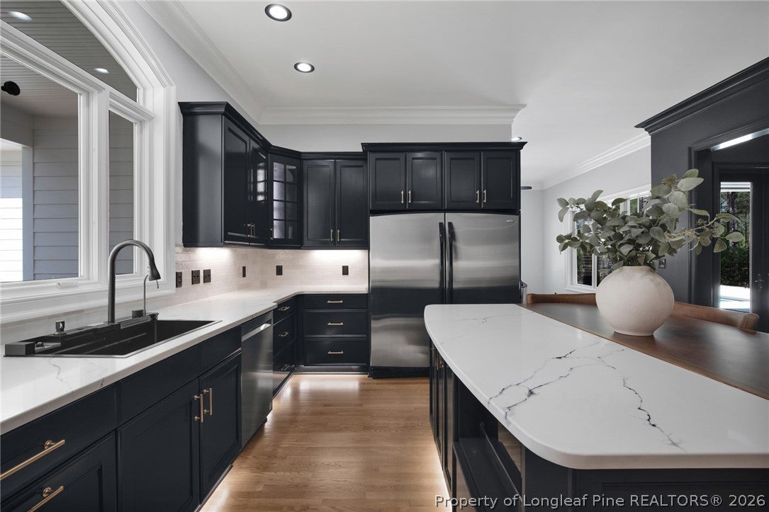 This extraordinary Pon Chinn-designed home at 1805 Woodrail Ave has been masterfully reimagined with uncompromising luxury and architectural brilliance. Bathed in natural light from new Marvin windows & doors; the main level showcases white oak flooring, bespoke Mark Hall cabinetry, quartz and granite surfaces, and a chefs kitchen appointed with Thermador and Sub-Zero appliances.