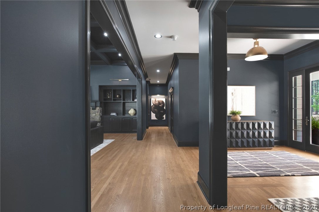 Once in a blue moon, a home like this presents itself.Built in 2022, this stunningly gorgeous custom home is situated on just under an acre with water views from back of home and swimming pool and in established Deerfield, a golf-cart community with no HOA.With extra attention to detail, home was well-designed to reflect current trends and still FEELS new. Its open floor plan design has calming colors, stylish finishes, and many thoughtful upgrades throughout.French doors welcome you into its grand entryway and expansive central living area and the heart of the home. Main level is comprised of an office, powder room, living/kitchen/dining room, private master suite and two bedrooms with large hall bathroom for single story living. A huge bonus room or fourth bedroom guest suite with bathroom is privately located above the triple car garage. Walk-in attic storage is easily accessible on this second level as well. With room to stretch out indoors and out, enjoy a screened porch with fireplace for chilly evenings and extra dining space, open back deck off living room with triple & quad sliders along the entire back of the homes exterior - ALL overlooking an inviting cool blue salt water pool & relaxing hot tub. Back lawn is fully enclosed. Feel the gentle breezes off the nearby ICW and enjoy sparkling water views of neighboring canal. Set back from the street, the front porch, and sweeping front lawn gives you room all to yourself. A great home for entertaining and enjoying all that coastal living offers!Impressive conveyances include 9 ft ceilings with recessed lighting plus vaulted ceiling and exposed beams in common areas, designer Levolor privacy shades and louvered window shutters, LVP flooring throughout, tiled bathrooms, soft close cabinets & drawers, modern lighting & plumbing fixtures, built-ins & wood shelving, tray ceiling and large dual walk-in closets in master bedroom, electric fireplace insert, quartz countertops, GE (American made) Caf luxury kitchen appliances plus a DREAM pantry; also included is a designer GE washer/dryer pair in laundry room/drop zone. Peace of mind features include encapsulated crawl space, whole home generator, energy saving solar panels, sophisticated well water irrigation with app controls, tankless water heater, 500 gallon buried propane tank, three-car garage with epoxy flooring, boat parking pad, green space behind home (no direct back door neighbors), and NO HOA.This traditionally timeless home is in an equally gorgeous and sought-after neighborhood on the south side of Hampstead - close to marinas, boat docks, golf courses, medical facilities and nearer to the conveniences of Wilmington. A grocery store plus local restaurants, shops and businesses are a short drive, neighborhood walk or bike ride away.TRUE BLUE and a real coastal charmer, this is THE ONE to call HOME.Pre-inspected and appraised, sellers have done all of their homework and the heavy lifting for you. We are welcoming serious and pre-qualified buyers.