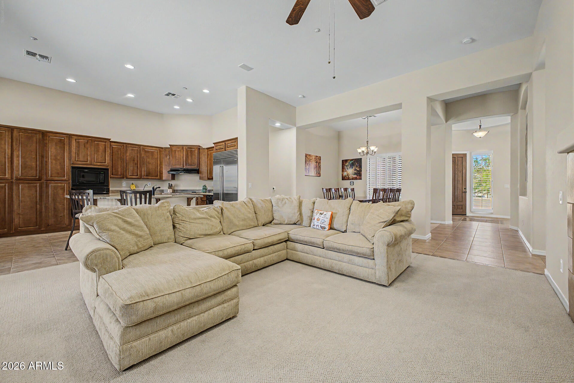 Stunning golf-course home in Anthem Country Club with spectacular mountain views. Recently refreshed inside and out (painted 2026) and updated systems including new HVAC. Electricity is expensive, good thing this home has OWNED SOLAR! The main house also offers a spacious flowing great room with gas fireplace, formal living and dining rooms, 4 bedrooms and 2.5 baths and central vac. The master bedroom features a huge walk-in closet, 2 separate sink areas and a makeup vanity. The 2nd bedroom also has a walk-in closet. The entertainers kitchen features a large island, abundant cabinetry and a new Sub Zero refrigerator. Outdoor living shines with a heated spa/pool (newer pool equipment), gas firepit with raised deck area and expansive vistas of the fairway and mountains. The views are truly spectacular in this North facing resort backyard. Separate casita with its own bedroom and bath round out the backyard! The casita has so many uses: guest house for family visits or a pool house, office space, art studio and more. This home has beautiful curb appeal with a custom finish driveway, front courtyard and a 3 car garage with cabinets & epoxy flooring. Perfect blend of resort-style amenities in Anthem Country Club and everyday comfort in a premier golf community. You will LOVE going for walks in this community and seeing the beautiful views and wildlife. Tennis, pickleball, swimming, golf, fine dining and more! There are also many wonderful hiking trails to enjoy the Arizona desert beauty. Commuting is also easy since the I-17 is just minutes away. Dont miss out on this home with its beautiful views! Come see it ASAP before its gone. AMENITIES: Anthem Country Club has TWO golf courses and country clubs. Fitness centers, tennis and pickleball, swimming pools and spas, fine dining and more. You also can use the amenities in Anthem Parkside which includes a huge water park (with slides!), fitness center, a 63-acre park with playgrounds, skateboard park, ballparks, sand volleyball, picnic areas and even a choo choo train! Anthem has many wonderful community events like fireworks, holiday celebrations, farmers markets and more. They even host fantasic triathalons! Anthem truly has something for everyone.