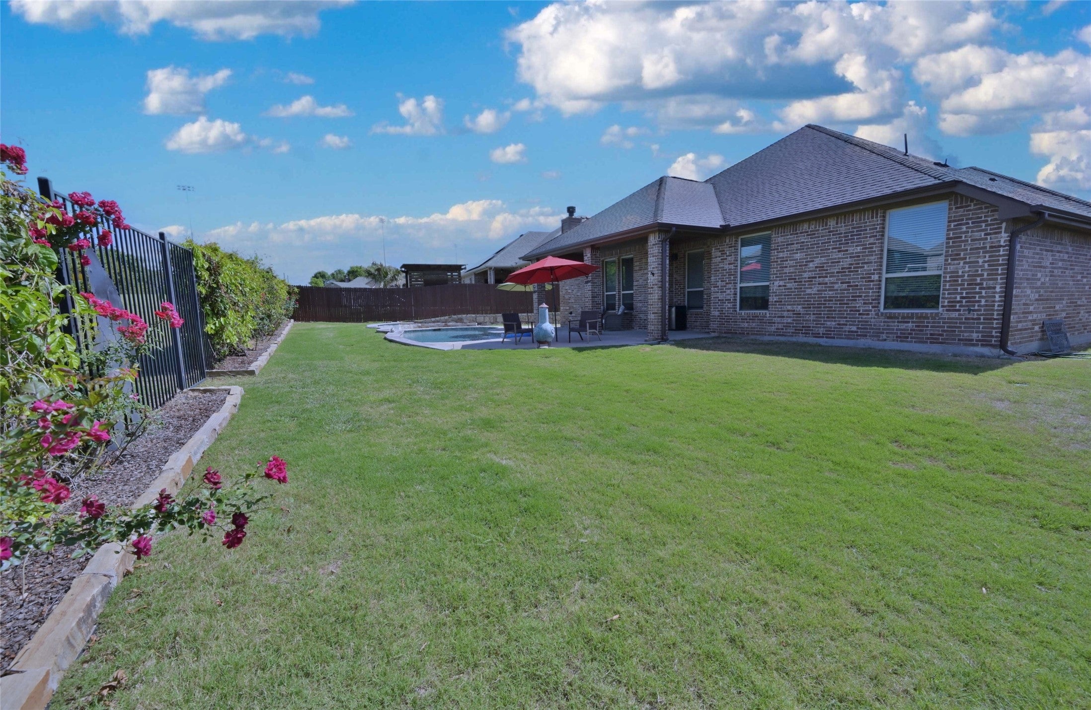IMPECCABLE Midlothian, Texas 4 BEDROOM, 3 FULL BATH HOME with beautiful IN-GROUND POOL, water feature and extended pool lounging area in the highly sought after Community of Lawson Farms!! NEW 10K PRICE REDUCTION!! Less than one mile from the amazing 105 acre Midlothian Community Park with walking trails, sports fields and endless outdoor recreation! LOADED with UPGRADES and custom detail.