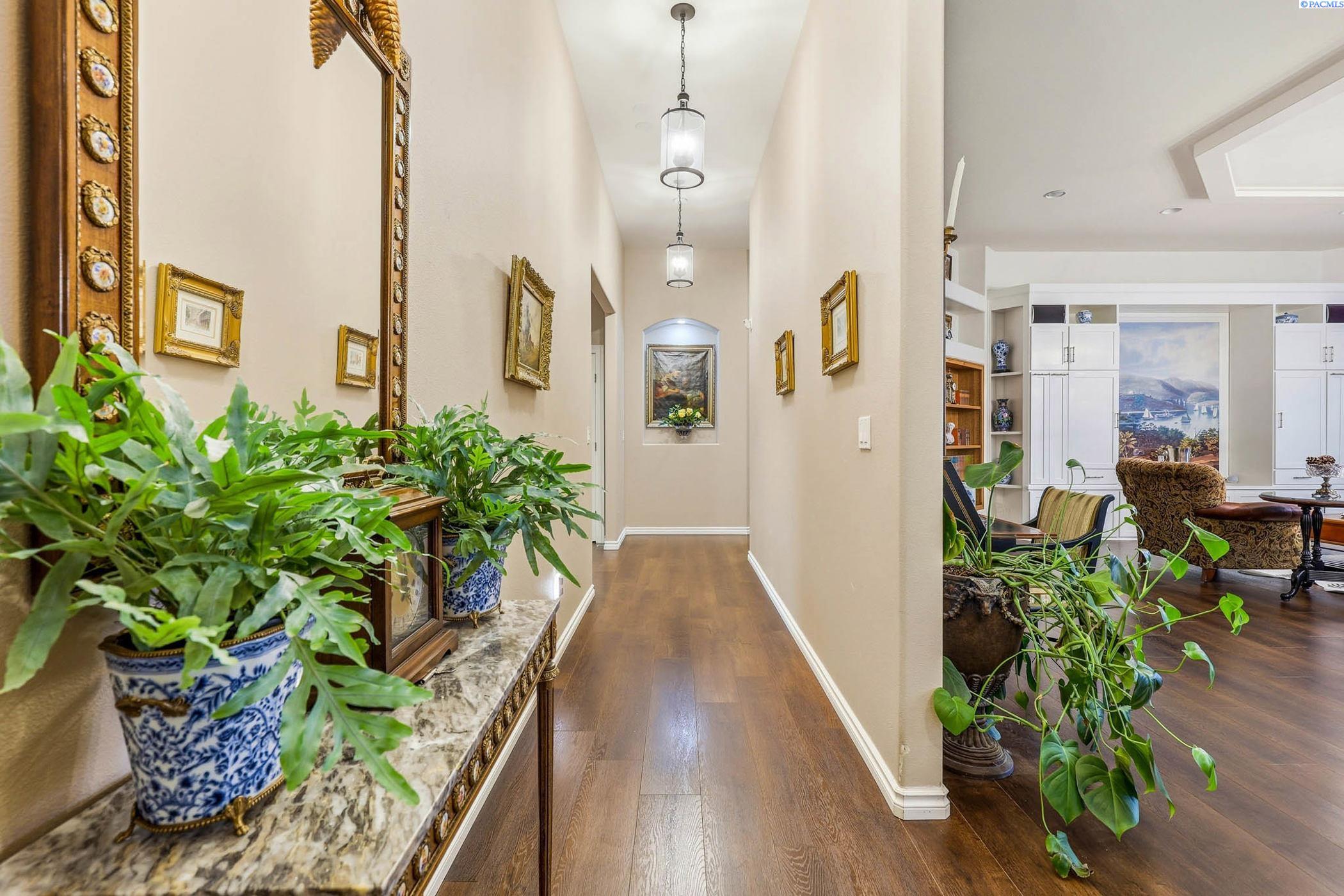 MLS# 289995 Truly one-of-a-kind home with panoramic views of the Tri-Cities, Columbia River & Blue Mountains! This 5,028 sq ft, two-story residence sits on a .44-acre lot and is thoughtfully engineered for comfort, efficiency, and securityoffering the rare feel of nearly two homes in one.The enclosed portico entry opens to a spacious great room designed to showcase the stunning scenery. Enjoy exclusive covered patios and a large wrap-around balcony, ideal for entertaining or quiet evenings taking in the views. Located directly across from the Badger Mountain Trailhead, your front yard extends for miles, with park access and a playground just steps away.The gourmet kitchen is perfect for gatherings and features a built-in refrigerator and freezer, gorgeous cabinetry with roll-outs, gas cooktop with pot filler, new appliances, and generous prep space. An independent entertainment room and additional bonus room upstairs offer flexible living optionsideal for an in-law suite, guest quarters, or home officewith its own covered deck and peaceful views.Each of the four bedrooms is a private suite, complete with its own bathroom. The primary suite is a luxurious retreat with dedicated heating, cooling, and its own water heater, a spa-style bath with dual toilets, a pass-through walk-in shower with three shower heads, and direct access to a private patio with hot tub.This home is fully wired with hardwired ethernet throughout, eliminating spotty cable concerns. Additional features include passive and electronic security, video surveillance, new garage door opener.The seller has created a smoking room with its own mini-split system. This room is perfect for a cigar and a beverage. Have the gang over for poker, watch a movie, whatever you can imagine, this room is ready for it. This home has many energy-efficient features, heat vent blower that helps circulate warm air throughout the home. Recent upgrades include new HVAC, new flooring, and new appliances. The home is handicap accessible, featuring wide hallways and stairways, with the stairway pre-wired for a lift chair.Outside, enjoy upgraded landscaping with a producing peach tree, a 3-car garage, 23x17 shop, and fully concrete RV driveway with enclosed RV parkingperfect for storing weekend toys without parking on dirt.A meticulously designed and upgraded home in an unmatched locationa must-see to truly appreciate. Call today for your private showing.