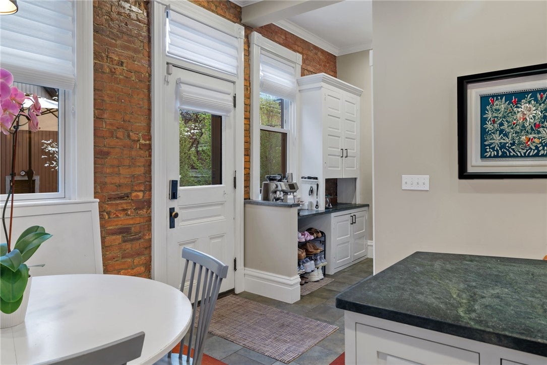 This stately, brick Victorian anchors one of the most sought-after locations in Shadyside, at 719 College Street. This classic home showcases timeless charm with its meticulous attention to detail, original trim, and thoughtfully integrated modern updates throughout. The main floor is an entertainers dream, featuring a stunning foyer that highlights original woodwork, a full bath, and a welcoming living room that flows seamlessly into the oversized dining room. The recently updated kitchen is both stylish and functional, boasting soapstone countertops, stainless appliances, exposed brickwork, an eat-in breakfast nook, and a dedicated coffee bar. An oversized deck, off of the kitchen and dining room, steps down to a low-maintenance patio..ideal for open-air hosting. The second floor offers four spacious bedrooms, including one with an en-suite bath. The private third floor serves as a true primary suite retreat, complete with custom casework in the walk-in closet, a gas fireplace, and an oversized slate shower with skylight. Enjoy direct access to a private third-floor deck and the adjacent flex room, a perfect space for a home office, nursery, or dressing room.A fully-fenced backyard encompasses the main home, connecting to the carriage house that offers two-car parking, additional storage, and a recently renovated, one-bedroom apartment with separate entrance and utilities. This space is perfect for an office, studio, or for continued use as an income-producing rental.In the heart of Pittsburghs East End, location is prime as youre within walking distance to some of Shadysides best dining, cafes, and boutique shopping. Dont miss the rare opportunity to own this historic home with modern versatility.