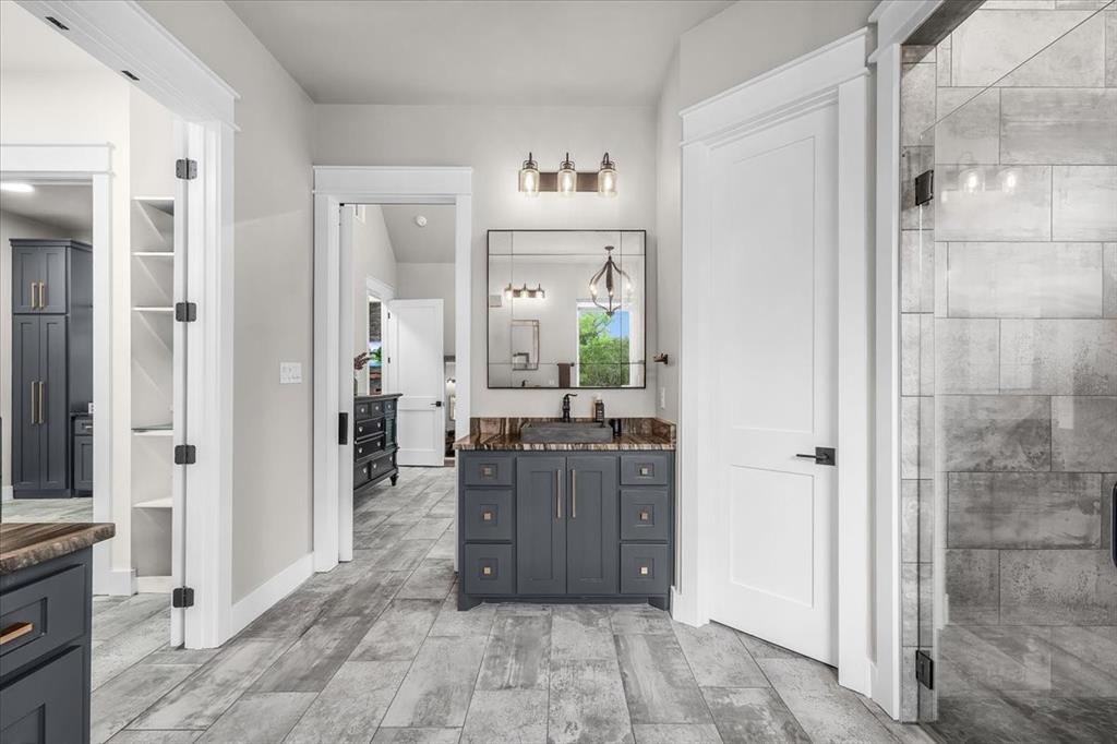 Welcome to a home where luxury, comfort, and thoughtful design meet on a beautiful corner lot with a two-car garage. Every detail of this home has been carefully curated with designer finishes, premium upgrades, and functional spaces perfect for both everyday living and entertaining. Inside, the home showcases luxury blonde wood flooring, designer paint colors, and custom light fixtures throughout. The living room is anchored by a gas fireplace with built-in bookshelves on both sides and a stunning coffered ceiling, creating a warm yet elegant focal point. The chef's kitchen is a true showstopper featuring: Sub-Zero refrigerator, Marble countertops, 6-burner gas cooktop with griddle, Designer hood vent and Pot filler. Just off the kitchen, a butler's pantry offers custom built-ins, a sink, and space for an additional refrigerator or freezer, providing exceptional storage and prep space. The home also includes a dedicated bar area with a wine fridge, beverage fridge, and sink, perfect for entertaining guests. Downstairs features both the primary suite and a private guest suite. The guest suite boasts soaring ceilings, abundant natural light, custom built-ins in the walk-in closet, and beautiful tile work in the bathroom, creating a welcoming retreat. The primary suite offers a designer accent wall and a spa-inspired bathroom featuring a Soaker tub, Dual-entry walk-in shower, Makeup vanity, Extensive cabinetry and storage, Custom-designed walk-in closet with built-ins. Upstairs offers two bedrooms and a full bathroom with dual sinks, along with a versatile landing area. Both bedrooms feature closets with built-ins, and one bedroom includes a built-in desk space, perfect for studying or working from home. Step outside to an incredible outdoor living space featuring a slate tile patio with beadboard ceiling and a fully equipped outdoor kitchen complete with a Blaze gas grill, two-burner cooktop, outdoor refrigerator, ice machine and sink. Schedule your viewing today!