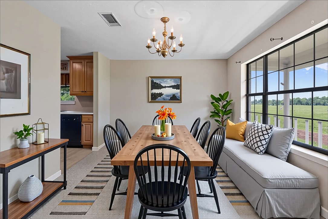If you've been dreaming of wide-open skies, peaceful mornings, and room to roam—this is the place. Just 20 minutes from town, this 26-acre property offers the chance to create your own country retreat. The 4-bedroom, 3.5-bath home has good bones, over 2,300 square feet of space, and plenty of potential to make it your own. Inside, you'll find a wood-burning fireplace, flexible dining and living spaces, and a kitchen with a window overlooking the land—perfect for taking in the view while you cook. Natural light fills the home through large windows that frame the surrounding pastures and trees, creating a sense of openness and connection to the outdoors. Imagine summer nights under the stars, quiet mornings with coffee on the porch and days filled with space to breathe. Whether you're looking for a full-time homestead or weekend getaway, this property offers the charm of country living and the freedom to make it your own. Schedule a tour and see it for yourself!