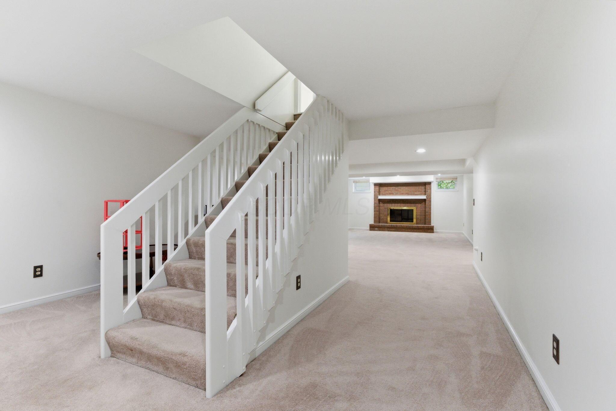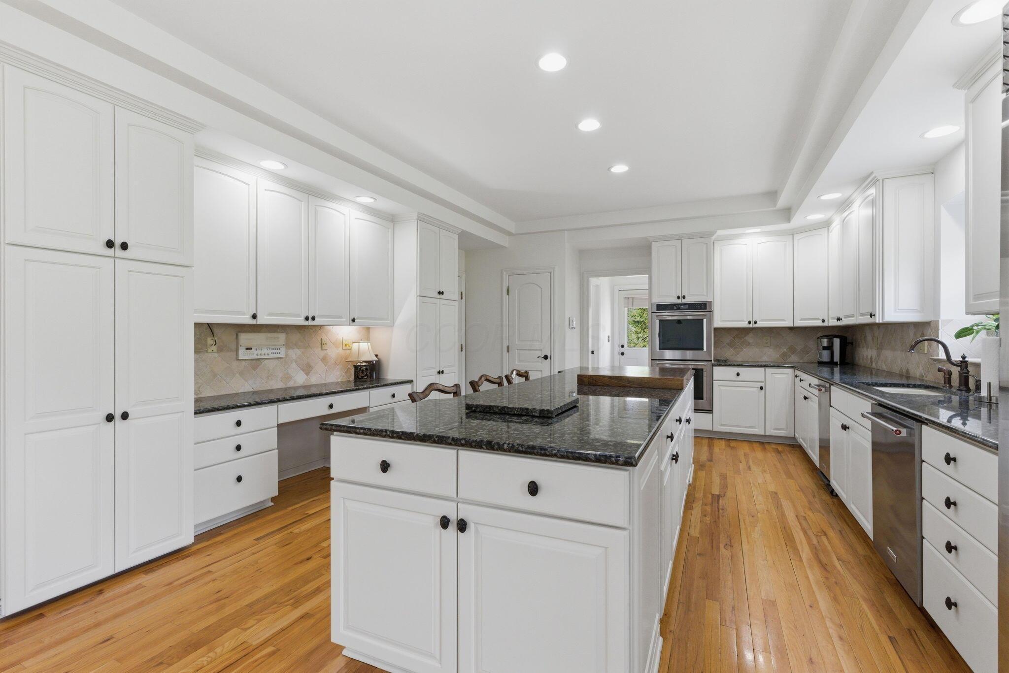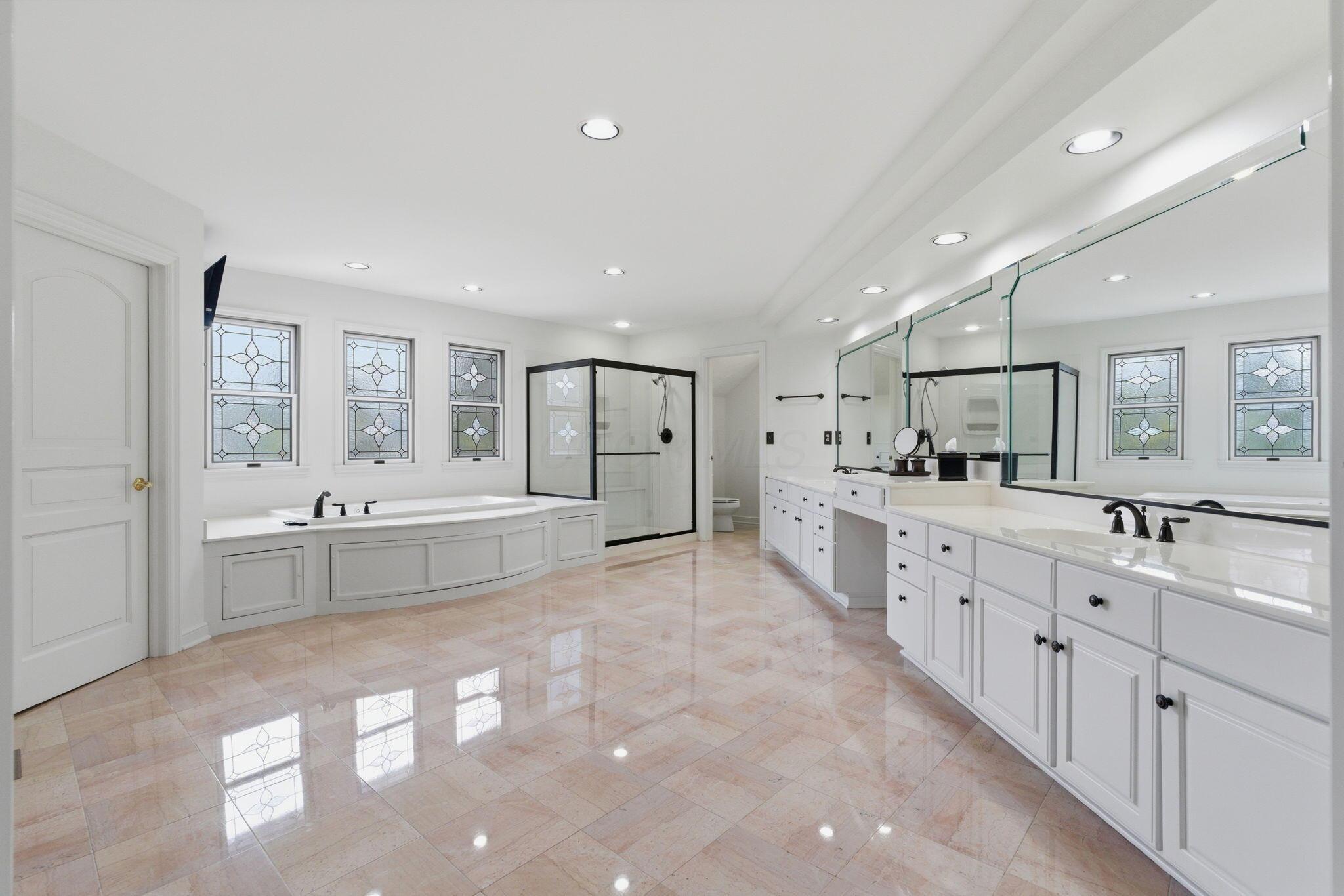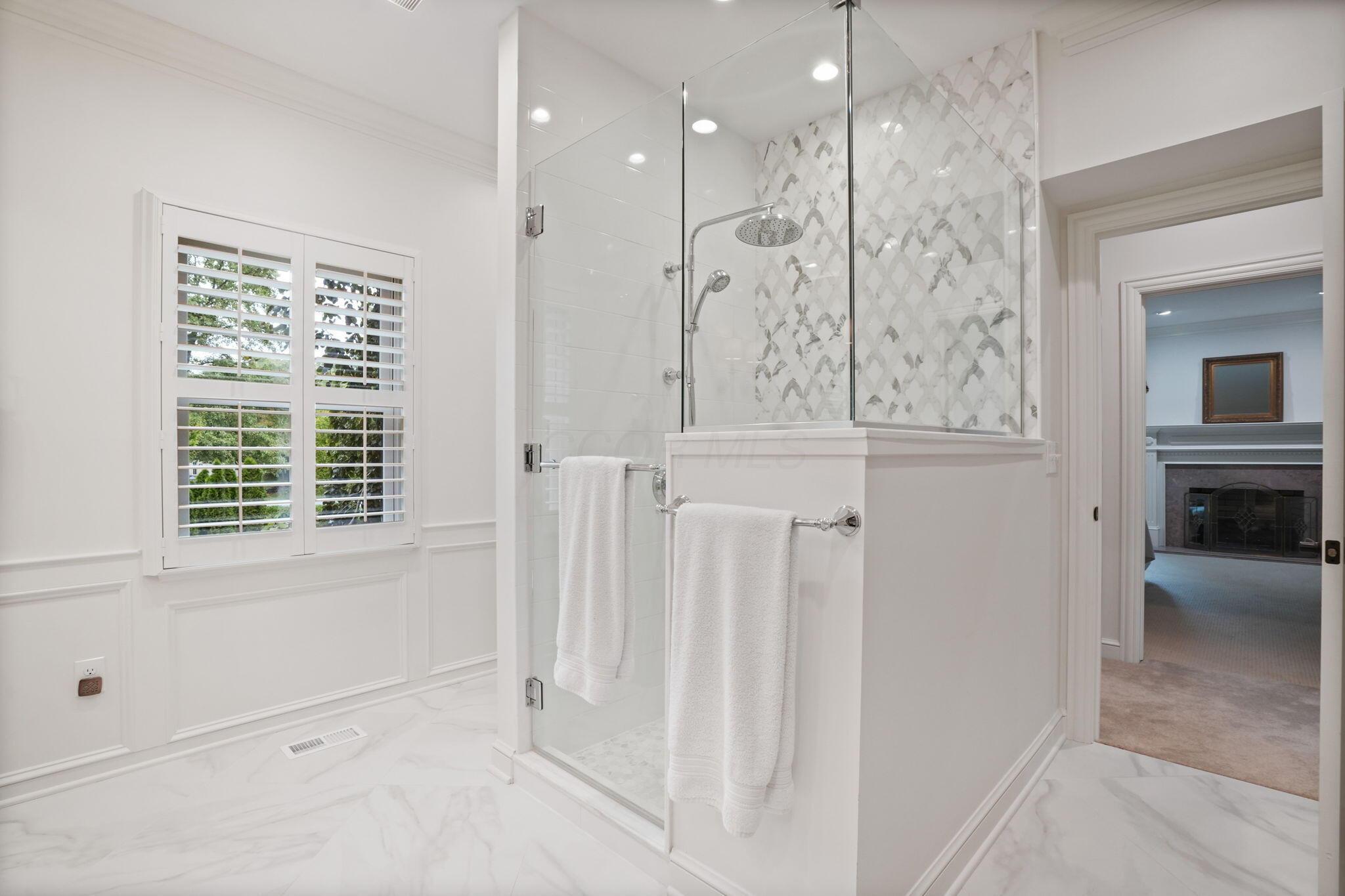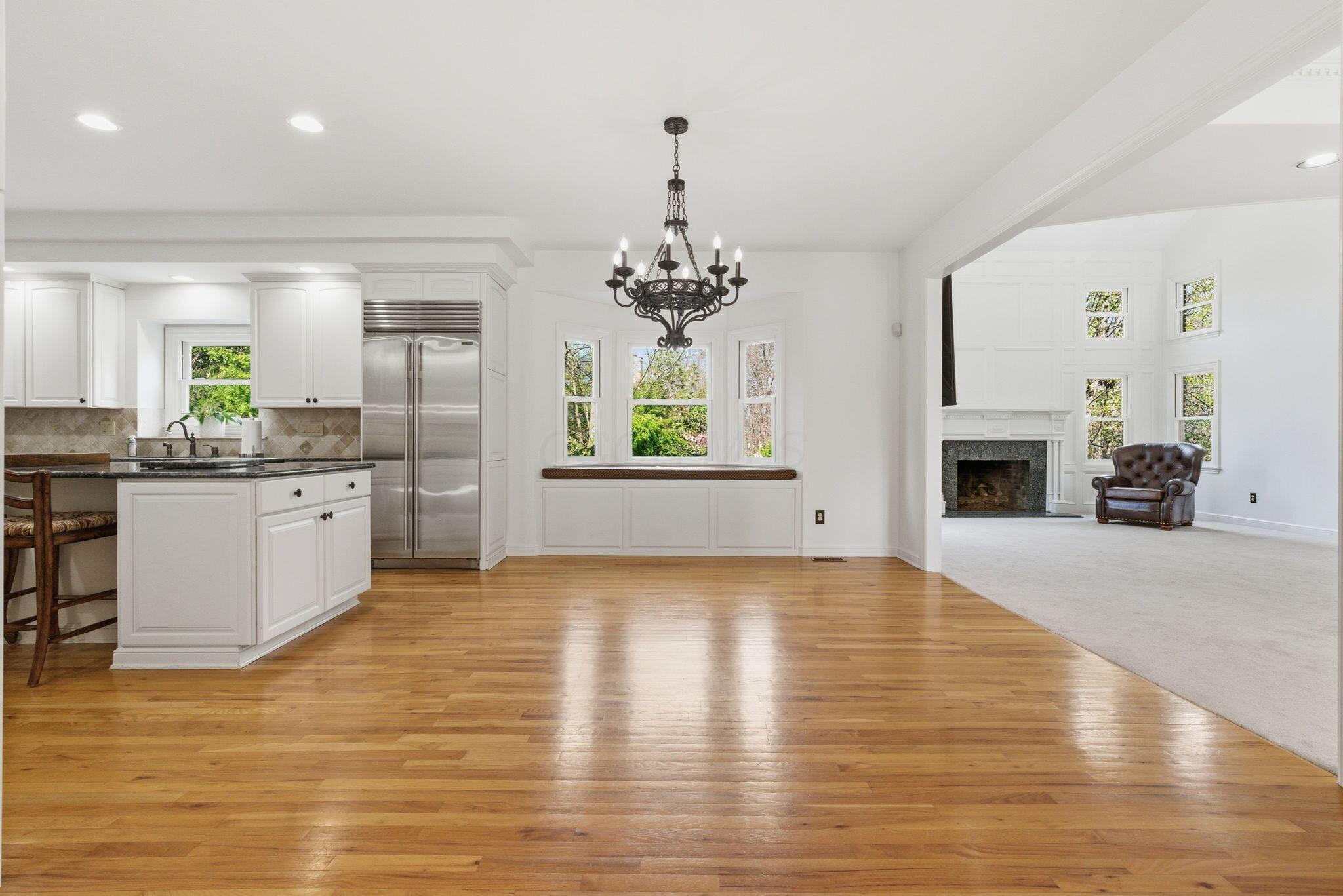 STUNNING: ALL WOODWORK & DOORS JUST PAINTED WHITE THROUGHOUT AND OTHER UPDATES! Spacious & meticulously maintained. Enter through a fabulous two-story foyer w/ a floating bridal staircase. Vaulted great room features gas FP against a custom wood-paneled wall. Expansive eating area leads to a remodeled kitchen w/ 42 white cabinetry, center island w/ seating, & a SS Subzero refrigerator, along w/ KitchenAid SS appliances. Newly renovated first-floor suite includes a cozy sitting area w/ gas FP & a luxurious bath. Upstairs, find a the master suite, a guest suite, & two additional bedrooms sharing a Jack & Jill bath. Finished lower level features a recreation room w/ a FP, a full bath, & two storage rooms. Enjoy the expansive deck surrounded by a wooded lot for privacy & impeccable landscaping. Heated three-car garage.