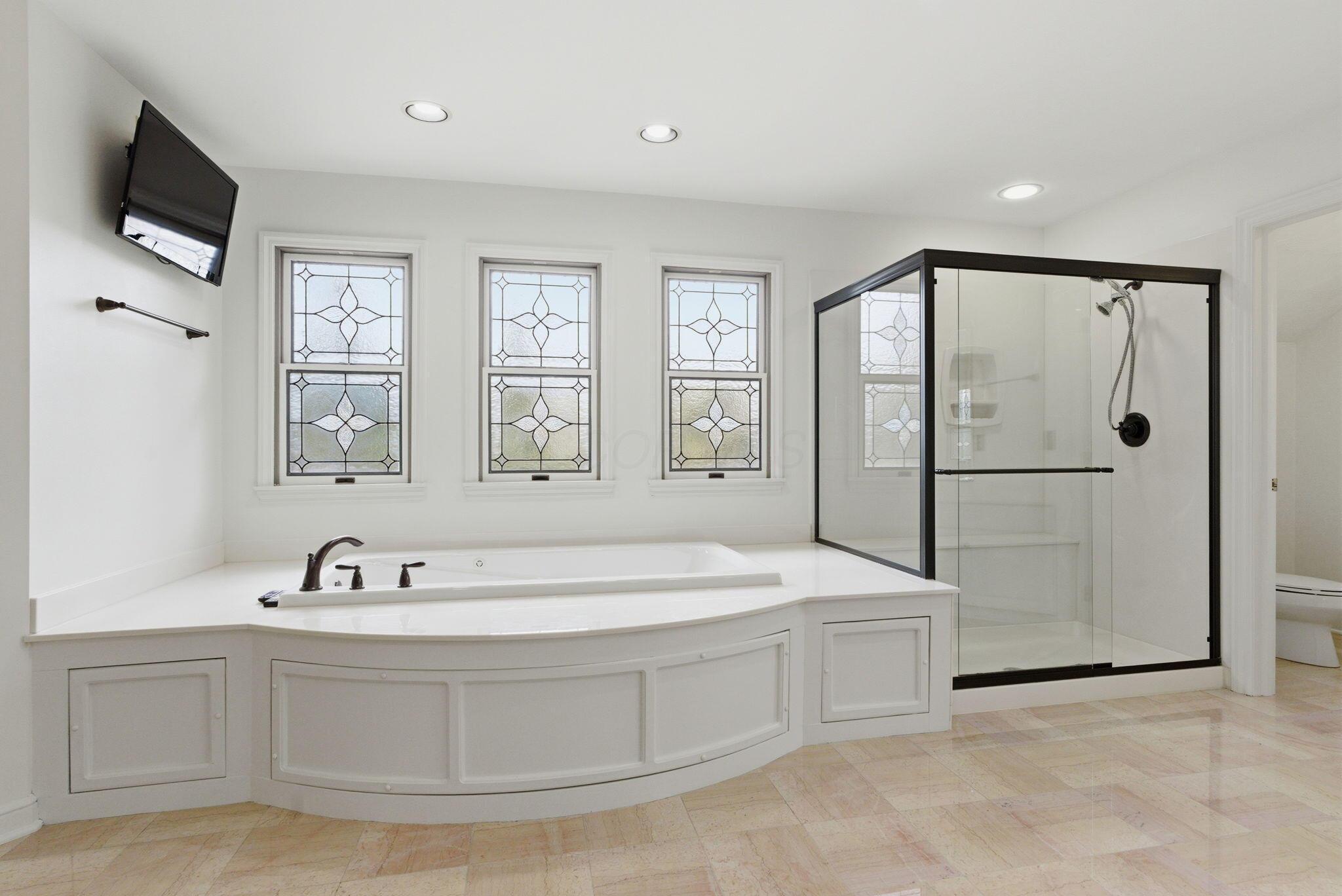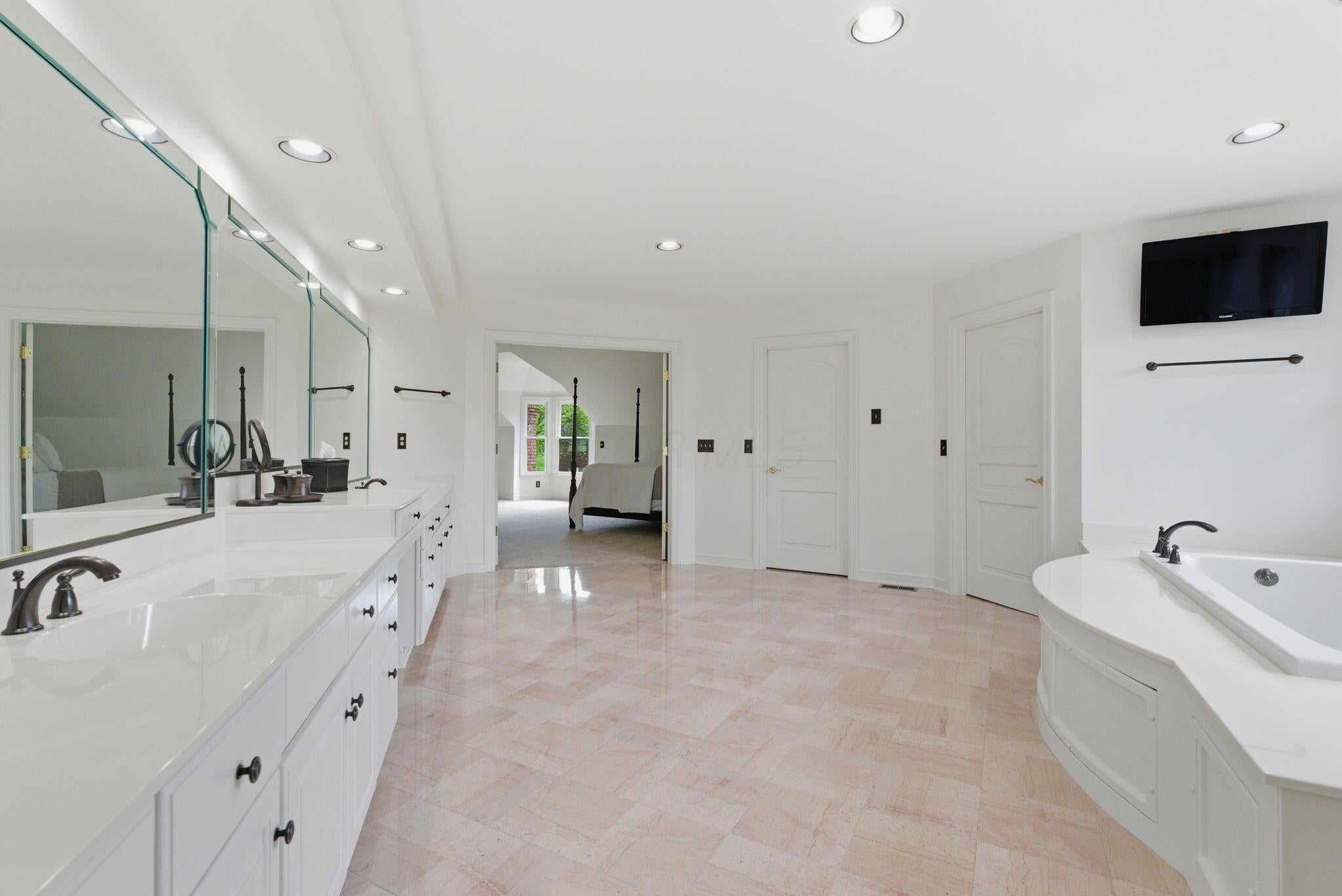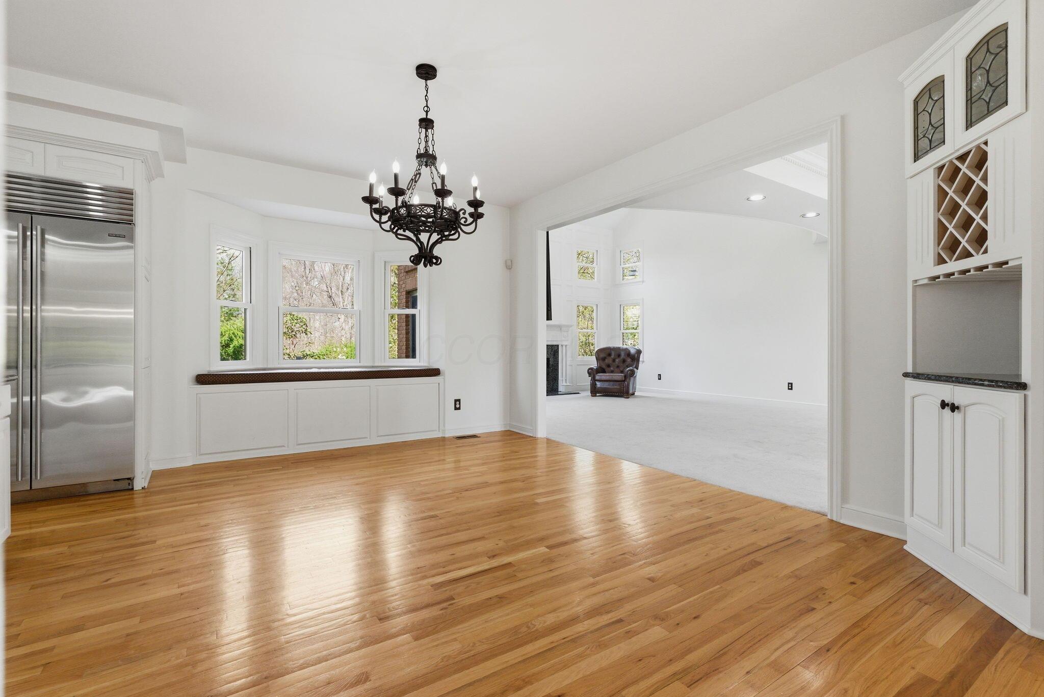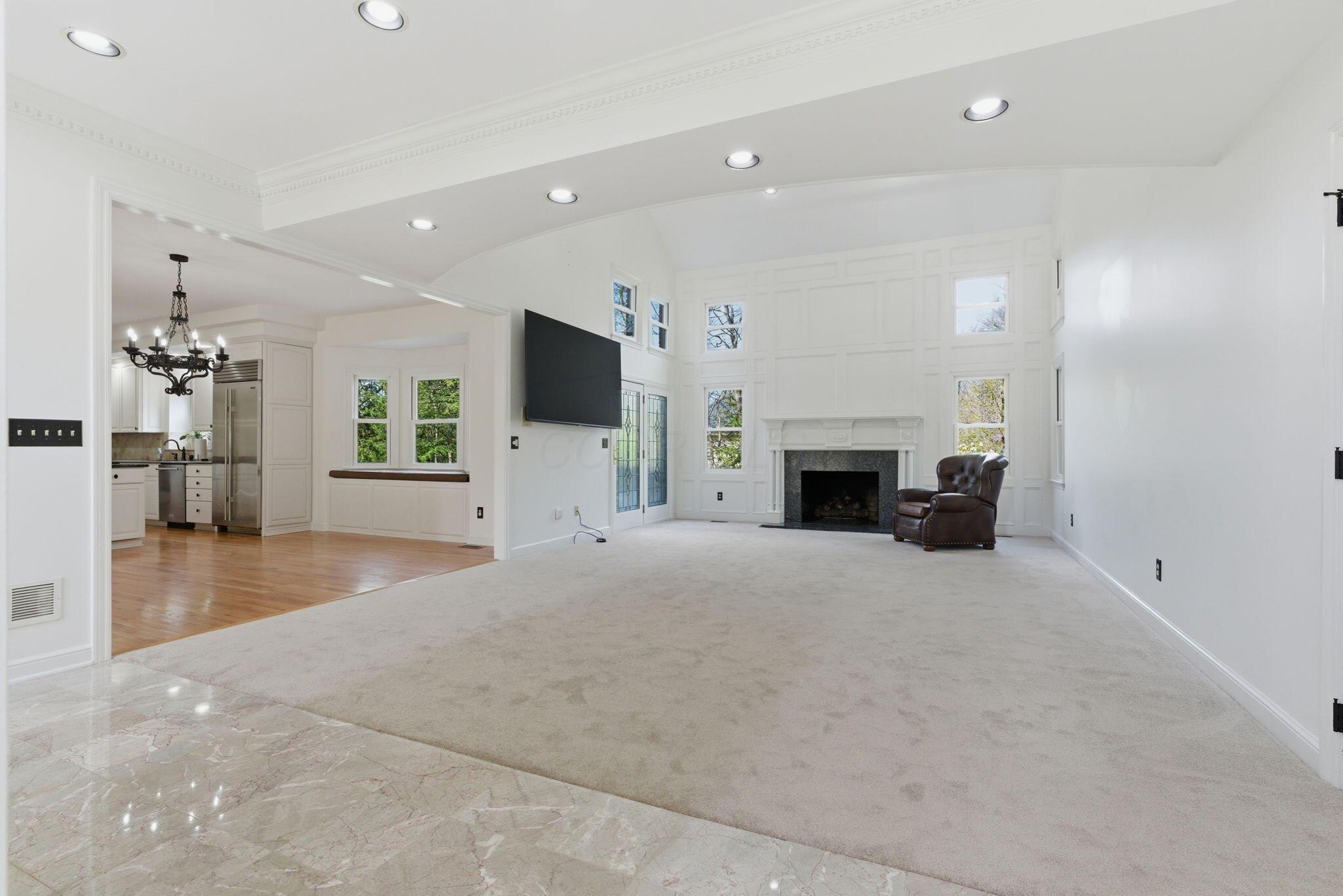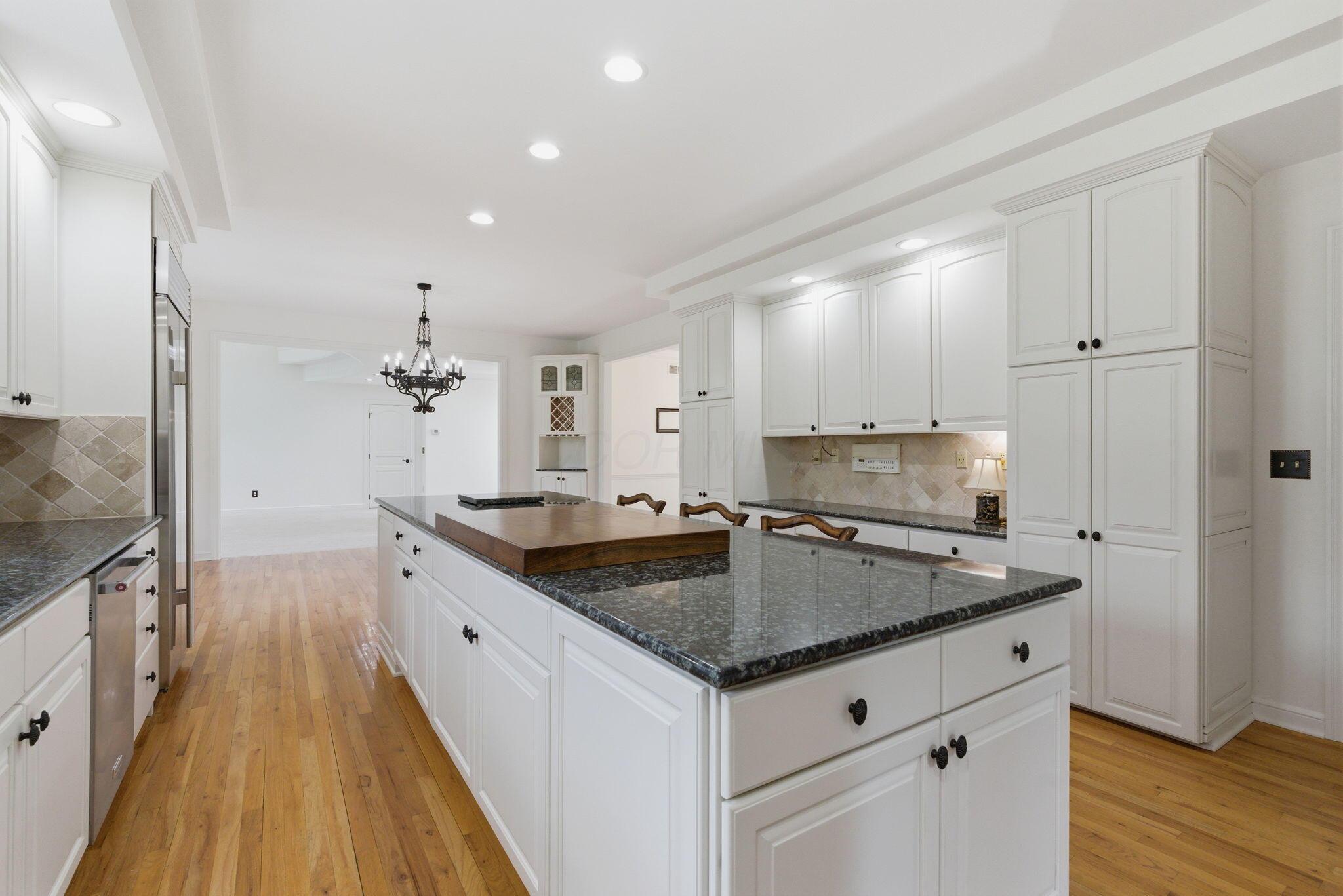 STUNNING: ALL WOODWORK & DOORS JUST PAINTED WHITE THROUGHOUT AND OTHER UPDATES! Spacious & meticulously maintained. Enter through a fabulous two-story foyer w/ a floating bridal staircase. Vaulted great room features gas FP against a custom wood-paneled wall. Expansive eating area leads to a remodeled kitchen w/ 42 white cabinetry, center island w/ seating, & a SS Subzero refrigerator, along w/ KitchenAid SS appliances. Newly renovated first-floor suite includes a cozy sitting area w/ gas FP & a luxurious bath. Upstairs, find a the master suite, a guest suite, & two additional bedrooms sharing a Jack & Jill bath. Finished lower level features a recreation room w/ a FP, a full bath, & two storage rooms. Enjoy the expansive deck surrounded by a wooded lot for privacy & impeccable landscaping. Heated three-car garage.