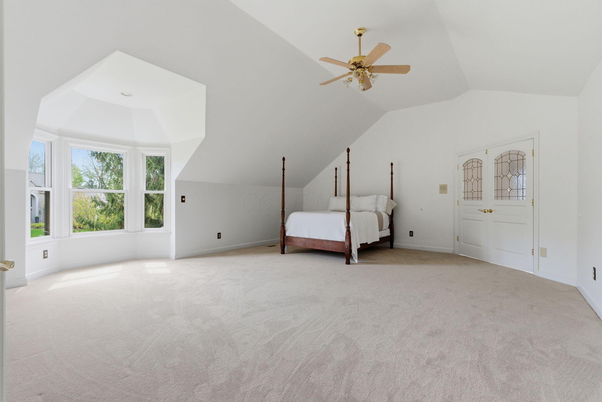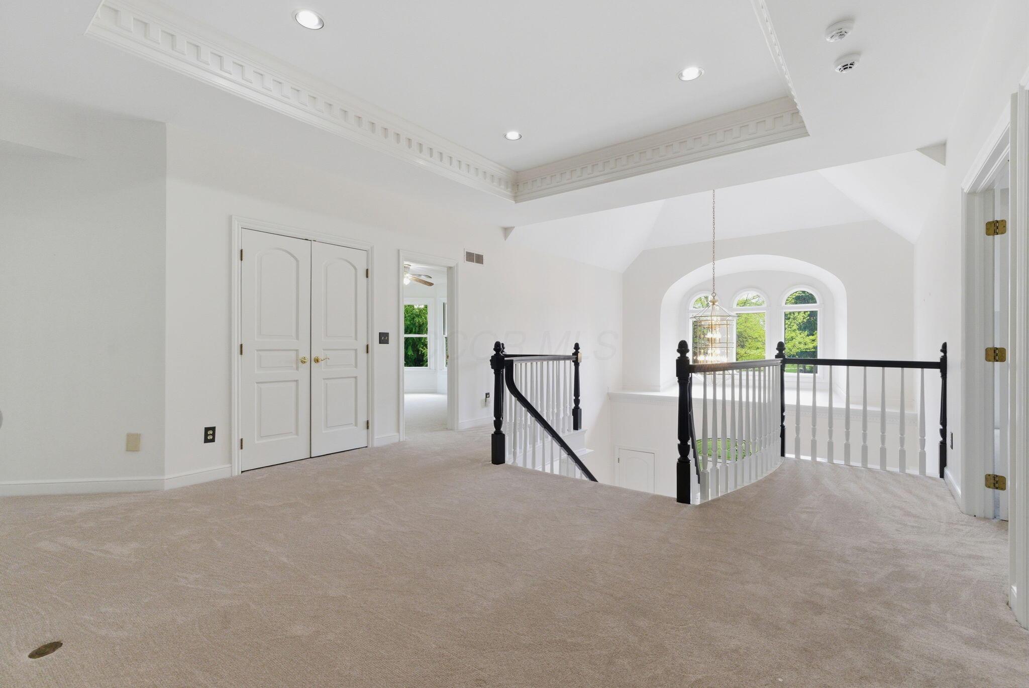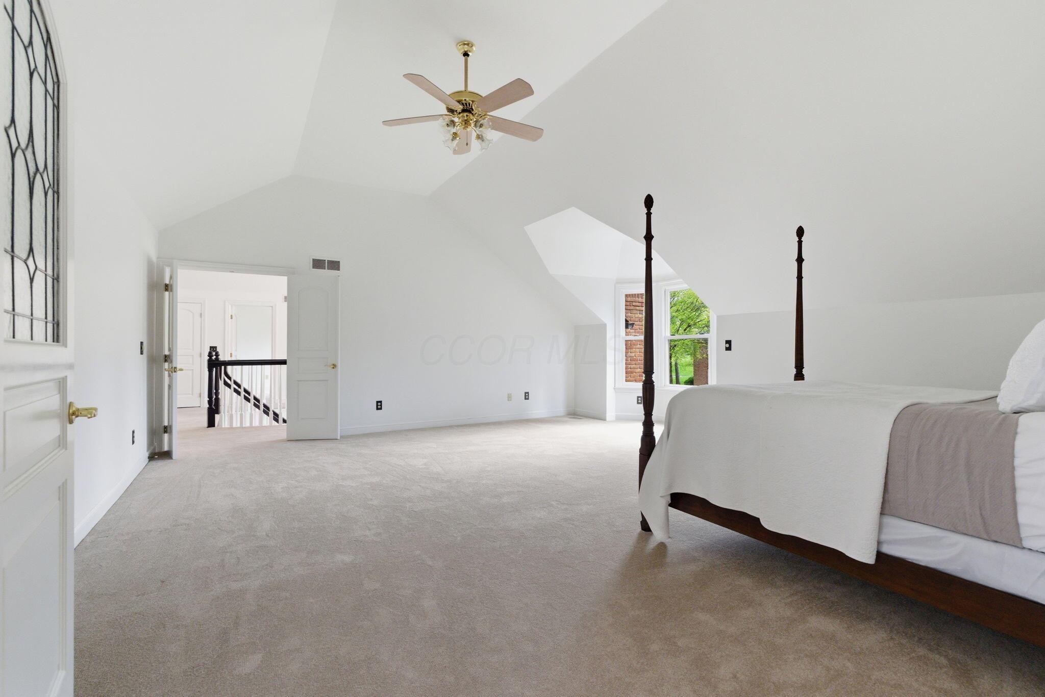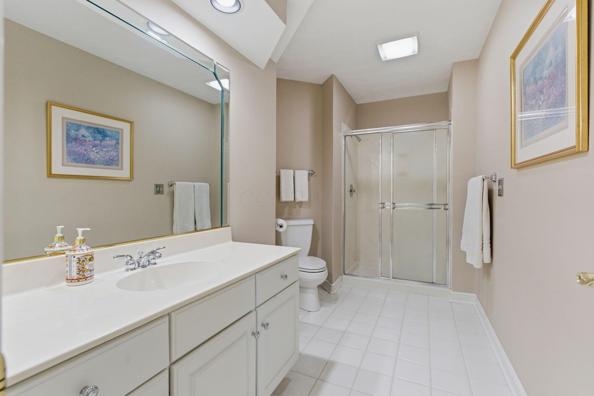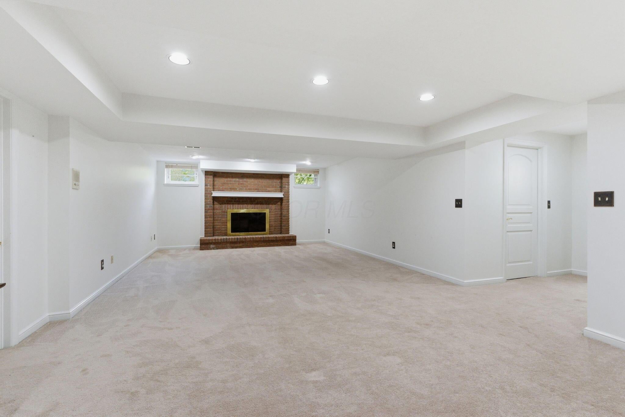 STUNNING: ALL WOODWORK & DOORS JUST PAINTED WHITE THROUGHOUT AND OTHER UPDATES! Spacious & meticulously maintained. Enter through a fabulous two-story foyer w/ a floating bridal staircase. Vaulted great room features gas FP against a custom wood-paneled wall. Expansive eating area leads to a remodeled kitchen w/ 42 white cabinetry, center island w/ seating, & a SS Subzero refrigerator, along w/ KitchenAid SS appliances. Newly renovated first-floor suite includes a cozy sitting area w/ gas FP & a luxurious bath. Upstairs, find a the master suite, a guest suite, & two additional bedrooms sharing a Jack & Jill bath. Finished lower level features a recreation room w/ a FP, a full bath, & two storage rooms. Enjoy the expansive deck surrounded by a wooded lot for privacy & impeccable landscaping. Heated three-car garage.