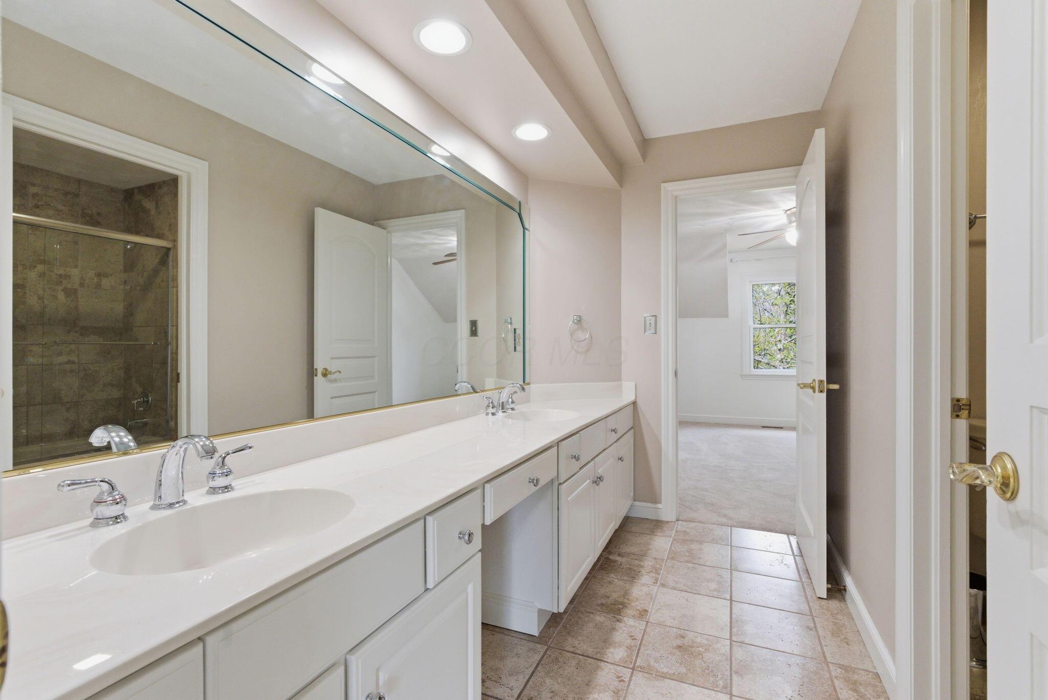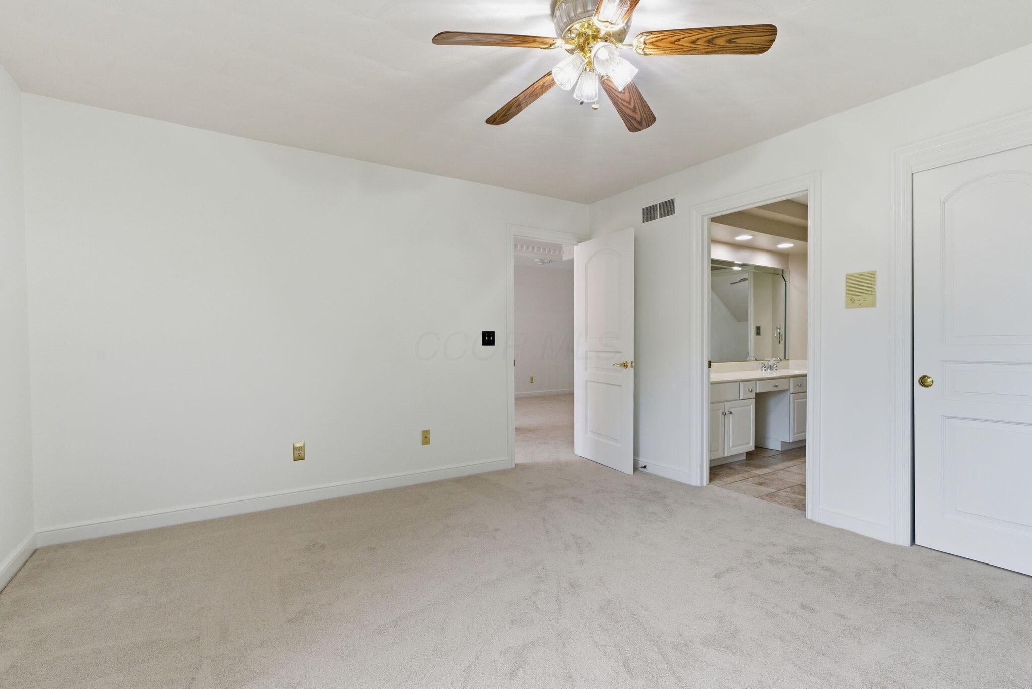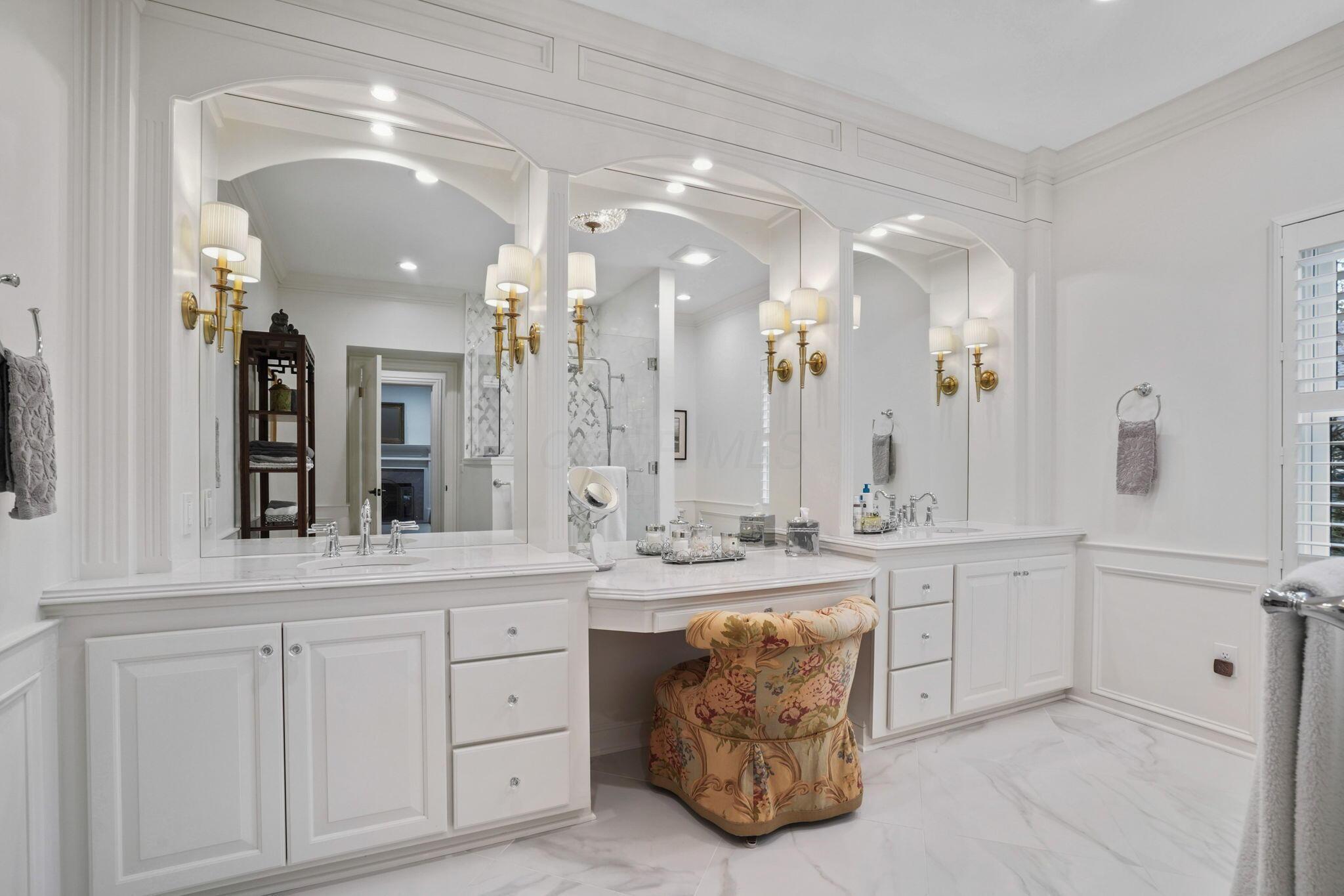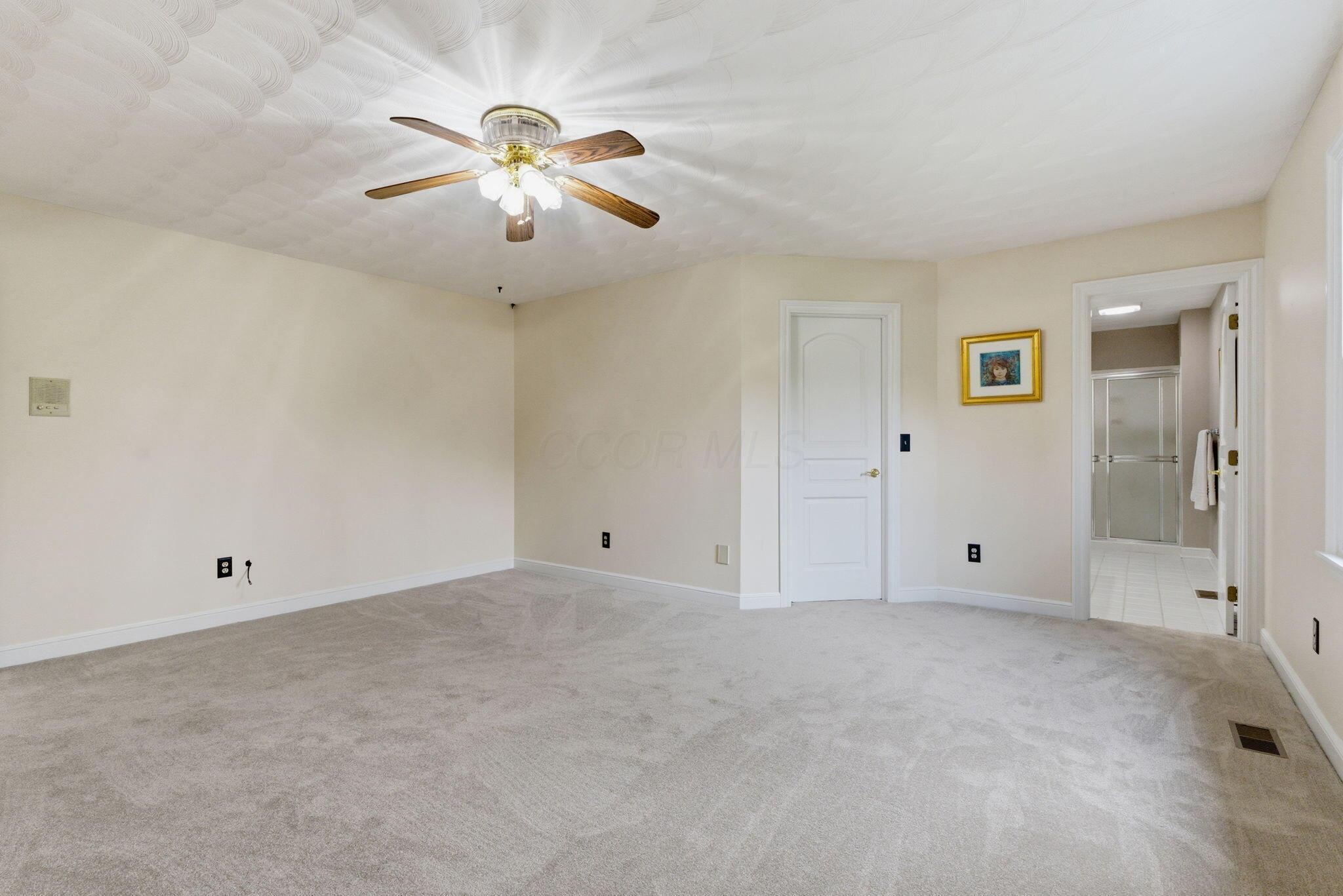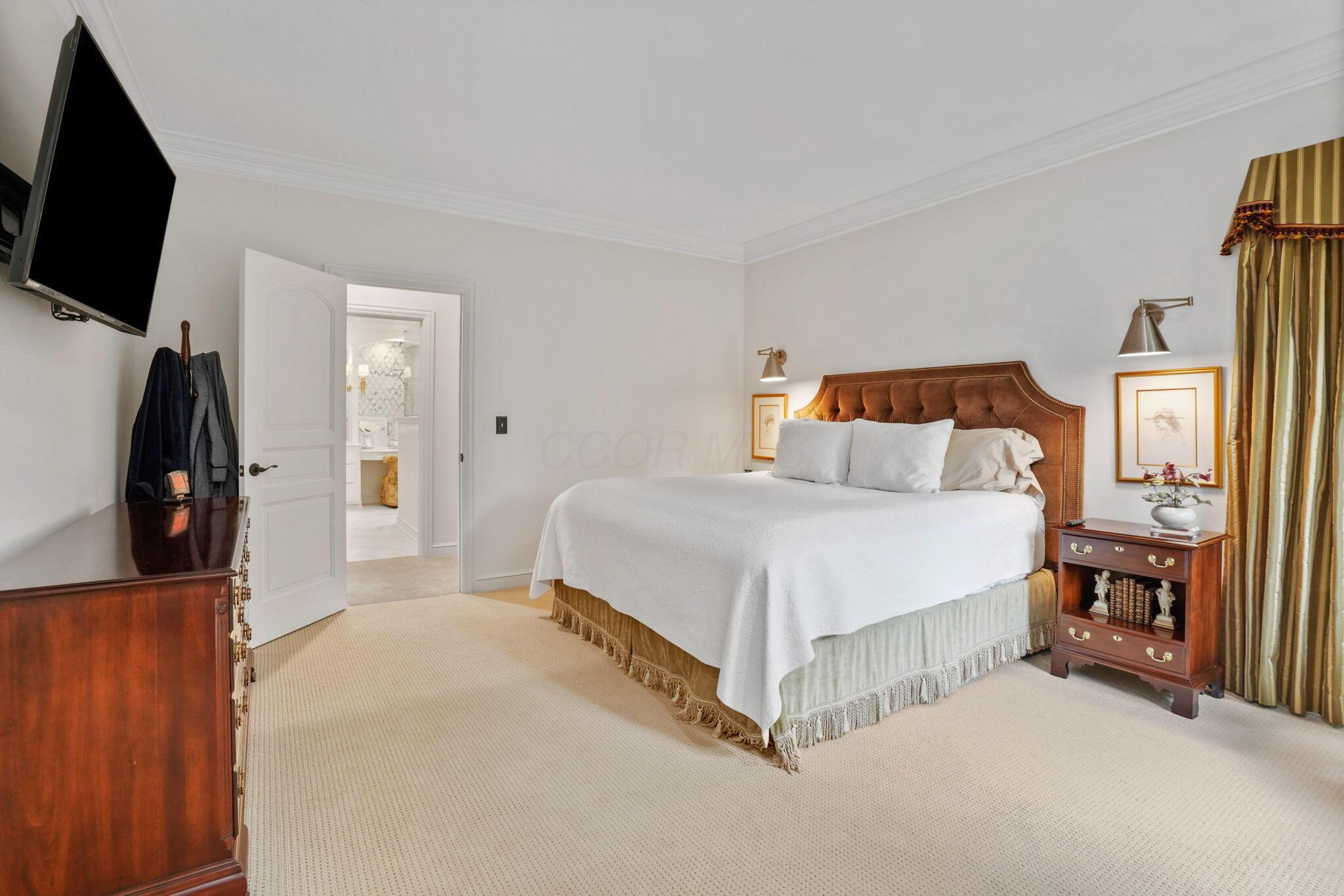 STUNNING: ALL WOODWORK & DOORS JUST PAINTED WHITE THROUGHOUT AND OTHER UPDATES! Spacious & meticulously maintained. Enter through a fabulous two-story foyer w/ a floating bridal staircase. Vaulted great room features gas FP against a custom wood-paneled wall. Expansive eating area leads to a remodeled kitchen w/ 42 white cabinetry, center island w/ seating, & a SS Subzero refrigerator, along w/ KitchenAid SS appliances. Newly renovated first-floor suite includes a cozy sitting area w/ gas FP & a luxurious bath. Upstairs, find a the master suite, a guest suite, & two additional bedrooms sharing a Jack & Jill bath. Finished lower level features a recreation room w/ a FP, a full bath, & two storage rooms. Enjoy the expansive deck surrounded by a wooded lot for privacy & impeccable landscaping. Heated three-car garage.