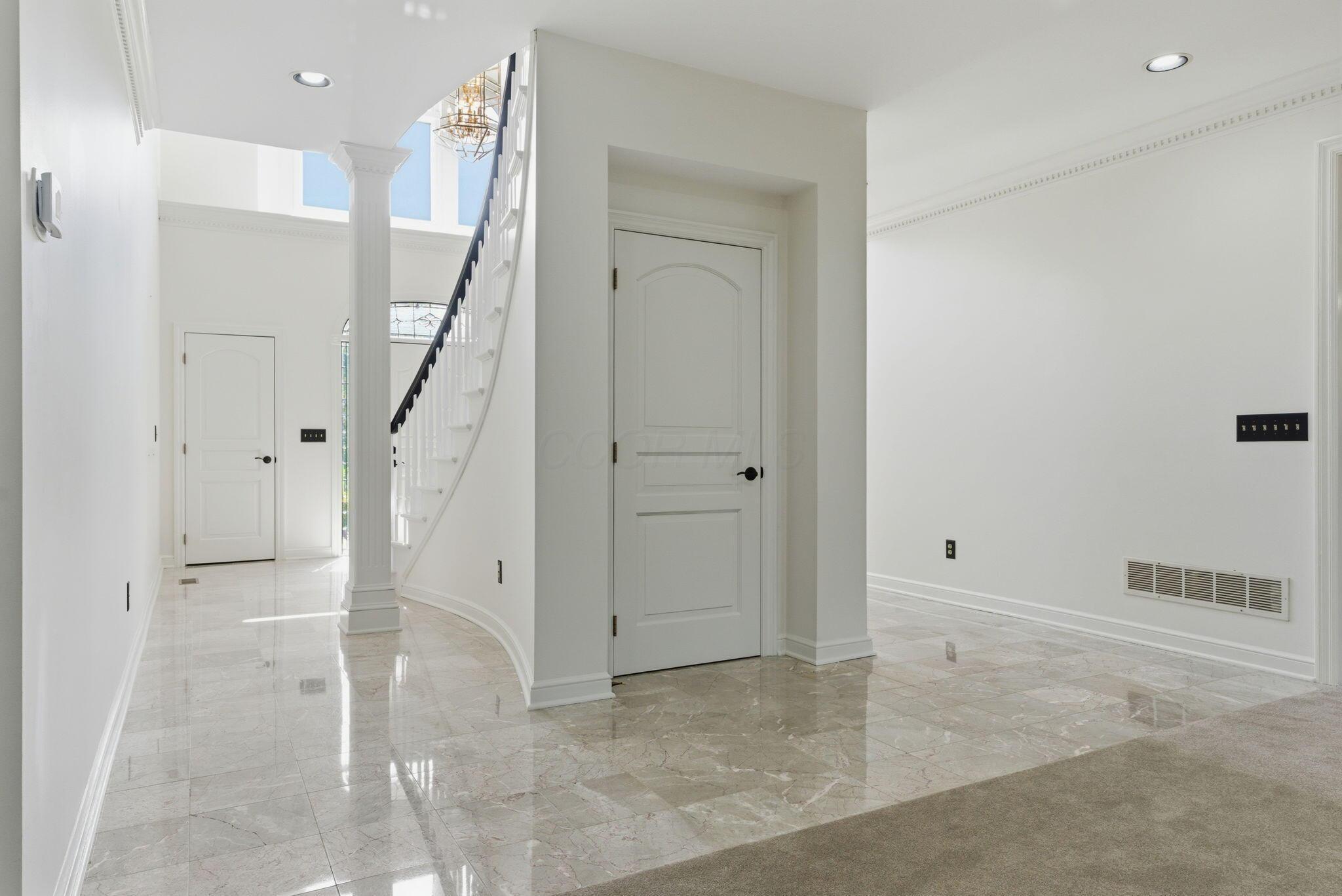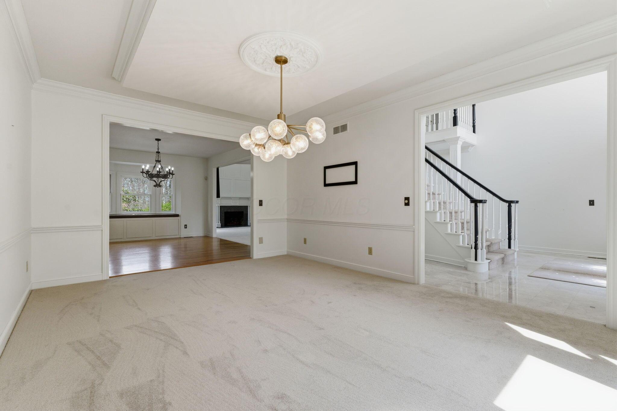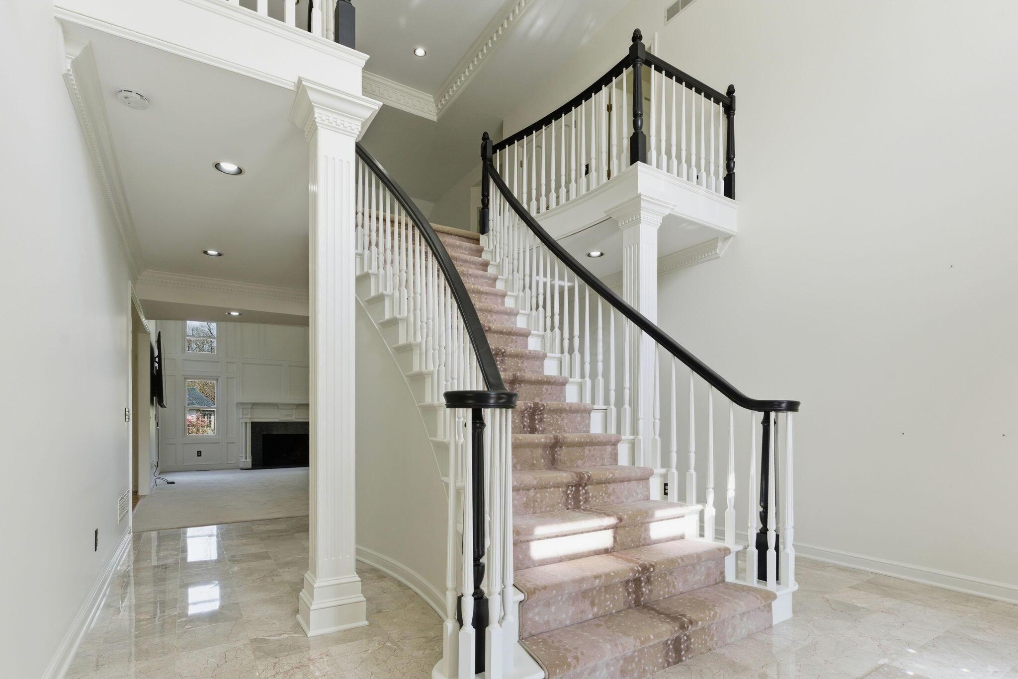 STUNNING: ALL WOODWORK & DOORS JUST PAINTED WHITE THROUGHOUT AND OTHER UPDATES! Spacious & meticulously maintained. Enter through a fabulous two-story foyer w/ a floating bridal staircase. Vaulted great room features gas FP against a custom wood-paneled wall.