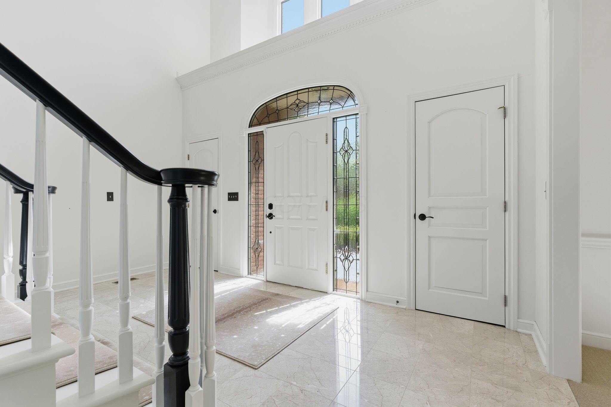 Stunning 5-bedroom, 4-full-bath Center Hall Colonial combines classic design with modern luxury. Step into a two-story entry foyer featuring an elegant circular staircase. The home offers a formal dining room, living room, & an oversized eat-in kitchen with granite countertops and upscale finishes throughout. Enjoy the sunroom, dry bar, and a spacious great room with a gas fireplace.