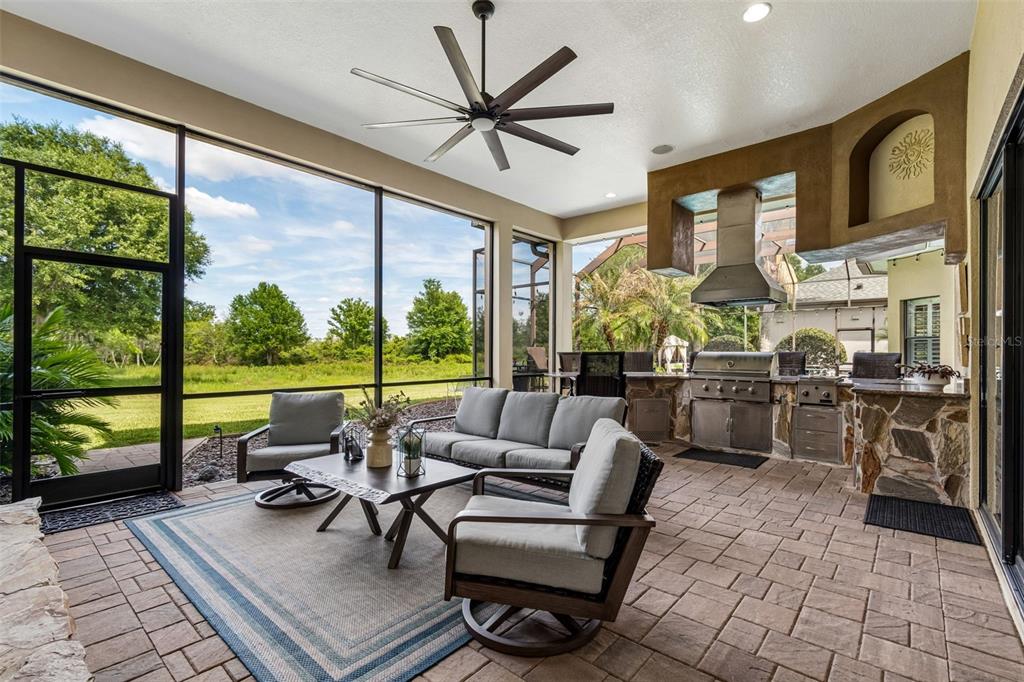 Welcome to an extraordinary lakefront estate built by renowned luxury builder Hannah Bartoletta, located within the exclusive gated enclave of Waters Edge in the highly sought-after Wilderness Lake Preserve community. Perfectly positioned on the lake, this exceptional 5-bedroom, 5-bathroom residence offers breathtaking water views, private lake access, and refined Florida living at its finest. Waters Edge residents enjoy access to a private community dock, enhancing the waterfront lifestyle this remarkable home provides. From the moment you arrive, the home makes a lasting impression with a brand-new roof (2026) and newly paved driveway (2026), enhancing both curb appeal and long-term value. Step inside the grand foyer, where you are welcomed by stunning formal living and dining rooms that set the tone for the homes elegance and spacious design. The right wing of the home features a private first bedroom and full bath, along with the luxurious primary owners retreat. This impressive retreat showcases beautiful wood flooring, two custom closets, and a spa-like en-suite bath designed for relaxation and comfort. At the heart of the home, the massive gourmet kitchen is a chefs dream, featuring 42-inch cabinetry with crown molding, high-end stainless steel appliances, quartz countertops, center island, and an oversized walk-in pantry. Designed for both entertaining and everyday living, this space flows seamlessly into the main living areas and offers spectacular views of the outdoor oasis and lake beyond. A whole-home surround sound system enhances the main living areas and outdoor spaces, creating an immersive audio experience throughout the home. On the opposite side of the home, you will find three additional bedrooms, all generously sized, along with two well-appointed bathrooms—creating an ideal layout for family or guests. Upstairs, a spacious media room provides the perfect setting for movies, games, and entertaining. This level also includes a full bathroom and a large private balcony overlooking the expansive backyard, and breathtaking lake views. Step outside to experience a true entertainers paradise. The outdoor living space features a sparkling saltwater pool and spa, two separate covered living areas, a fully equipped outdoor kitchen, and a cozy gas fireplace—perfectly designed to embrace the Florida lifestyle year-round. Pocket sliding doors open completely, seamlessly blending indoor and outdoor living spaces and creating a dramatic, open-air experience. Nearly every room in the home captures stunning views of the pool, large backyard, and tranquil lake. Located within the highly desirable Wilderness Lake Preserve, residents enjoy access to resort-style amenities that enhance everyday living. This award-winning community offers a lakeside clubhouse, state-of-the-art fitness center, resort-style swimming pools, tennis courts, playgrounds, and scenic nature trails throughout beautifully preserved natural surroundings. Residents also enjoy access to the communitys lakes for kayaking, canoeing, and outdoor recreation, making Wilderness Lake Preserve one of the most sought-after lifestyle communities in Land O Lakes. This rare lakefront opportunity combines timeless craftsmanship, luxurious upgrades, and an unbeatable location within one of Land O Lakes premier communities. Experience the perfect balance of elegance, comfort, and waterfront living in this truly exceptional home. Assumable VA Mortgage at 2.875%
