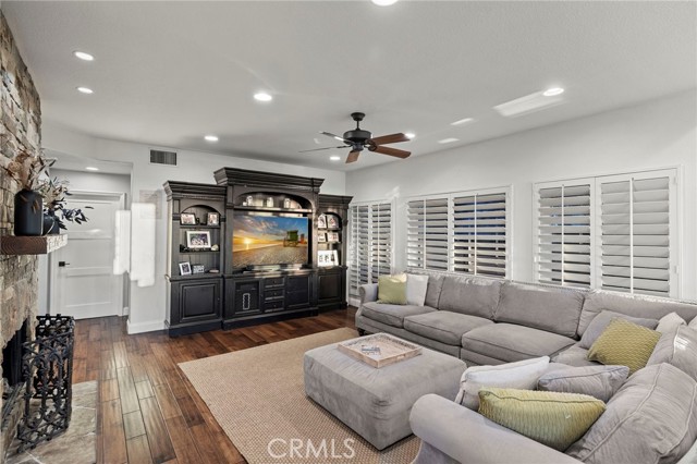 A Hilltop Oasis One of A Kind: Luxury Resort-Style Living with Panoramic 180-Degree Views. Discover the perfect blend of luxury and tranquility in this gated, private, quiet neighborhood with 3,728 sq ft of spacious living, 5 bedrooms (1 down/ full bath), 3.5 baths, bonus room and private retreat featuring breathtaking mountains, city and picturesque sunsets. Entertain effortlessly across your open-concept living, dining, and family rooms, Thoughtfully remodeled for sophisticated comfort, this home features an open floor plan with custom built-in wood cabinetry throughout. This transitional chefs kitchen is a masterpiece of convenience, custom built in double stacked cabinets and modern drawers, equipped with a 6-burner gas stove, pot-filler, Subzero freezer/fridge, Bosch dishwasher, butlers pantry, and expansive granite countertops, glass backsplash and convenient center island. Work out of home featuring custom built-in office spacious desks, French doors multiple cabinets and drawers. cozy fireplaces, The master suite is a private retreat boasting vaulted ceilings, a private fireplace, dual walk-in closets, and a spa-like bath with travertine floors and a custom double-head walk-in shower, custom built-in alder wood designer with extensive storage and vanity. Your outdoor oasis awaits: a modern tiled pool, a sparkling firepit, and a built-in BBQ island are designed for ultimate relaxation. Enjoy year-round entertaining in the covered lanai with electric shades, recessed and lanscape lighting, ceiling fans, and unobstructed views spanning to the horizon behind a sleek glass fence. A rare find featuring modern efficiency with 2 AC units, attic fans, water softener, and a tankless water heater. The backyard is a true retreat with a custom-tiled pool, paver decking, built-in BBQ island, and covered patio with shiplap ceiling, lighting, fans, outdoor TV, and drop-down shades. Professionally landscaped with synthetic turf, olive tree, lighting, glass fencing, and smart irrigation. Ideally located near Santa Margarita Lake, top-rated schools, scenic trails, and golf, this home offers incredible sunset views with ocean glimpses on clear days and views toward the Palos Verdes hills.