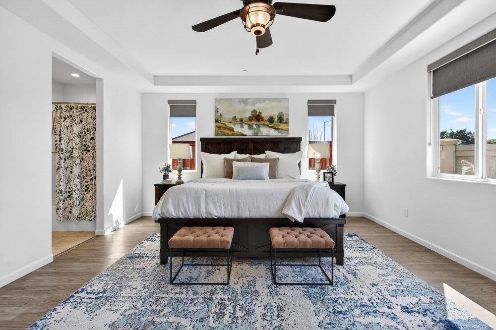Welcome to the wonderful community of Bennett Ranch! 3088 Palomino Way is a 2,031 sf 4 bed/2.5 bath SINGLE STORY on a LARGE CORNER LOT with no neighbor behind or on one side. 6 Year Old Home with lots of Bells & Whistles providing WIDE OPEN living in a smartly designed space with gorgeous finishes. This home is LIGHT & BRIGHT with tons of windows and clear lighting, wide foyer and hallways & extra storage space near the laundry room/interior garage door. LIKE NEW but Better! Gorgeous LVP flooring with nicely coordinated BUILDER UPGRADES - Quartz countertops, doors, cabinets, appliances, fixtures, AC & ceiling fans. The garage interior is beautifully finished plus wired for EV & the driveway is EXTRA WIDE for ADDITIONAL PARKING. The front yard is set up for Low Maintenance living while the DELIGHTFUL backyard has been professionally created, providing tons of space to enjoy several different types of activities as well as some much needed R&R! Lawn, beautiful tile, a large patio area, gas line plumbed for outdoor kitchen set-up, Hot Tub ready & a peaceful COVERED PATIO prewired for a fan/light & designed especially for enjoying those GORGEOUS VIEWS all along the backside of the house. PAID SOLAR w/SOLAR GARD no True Up bill. NO HOA. County living just blocks away from City Vibes!