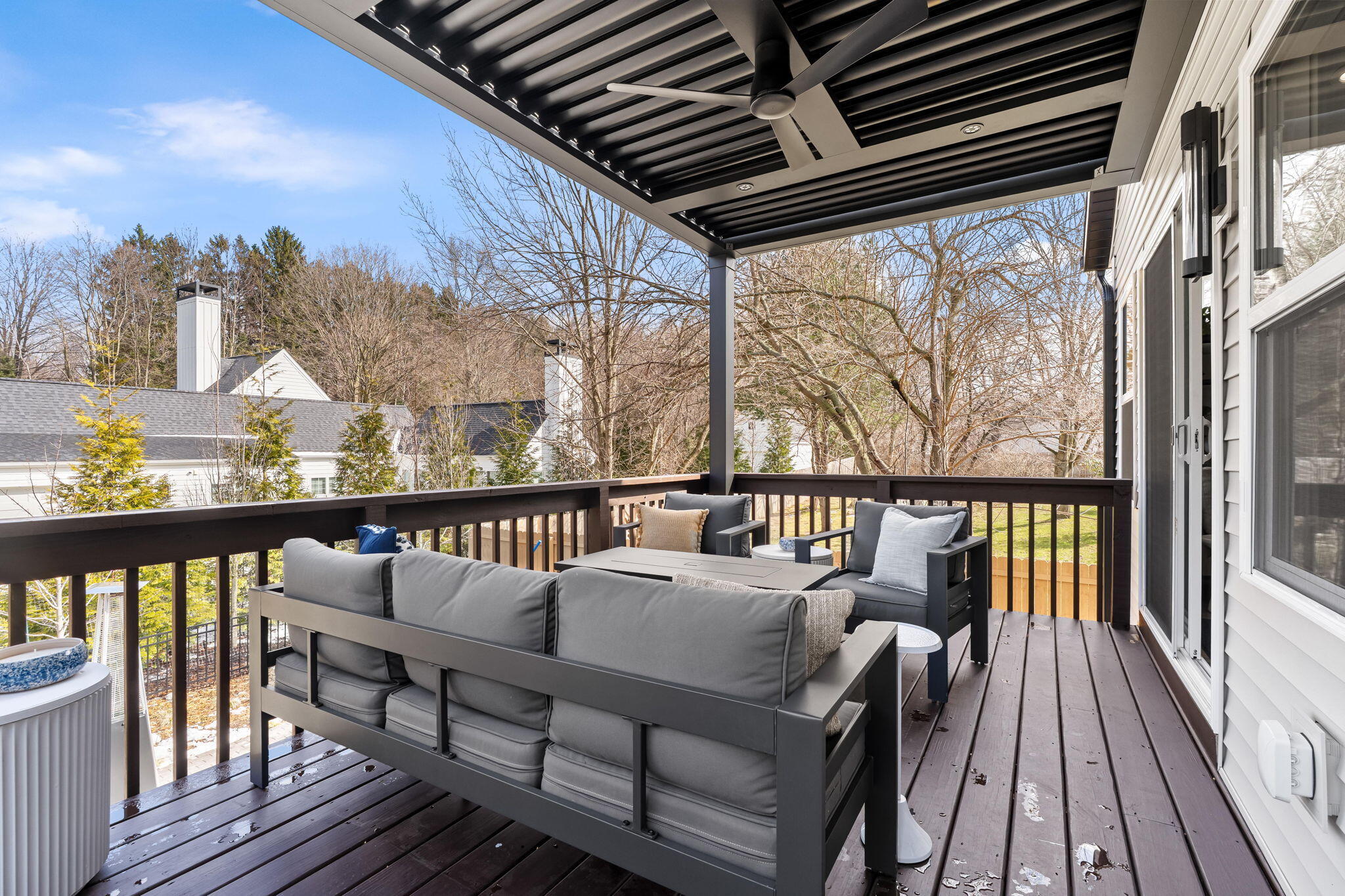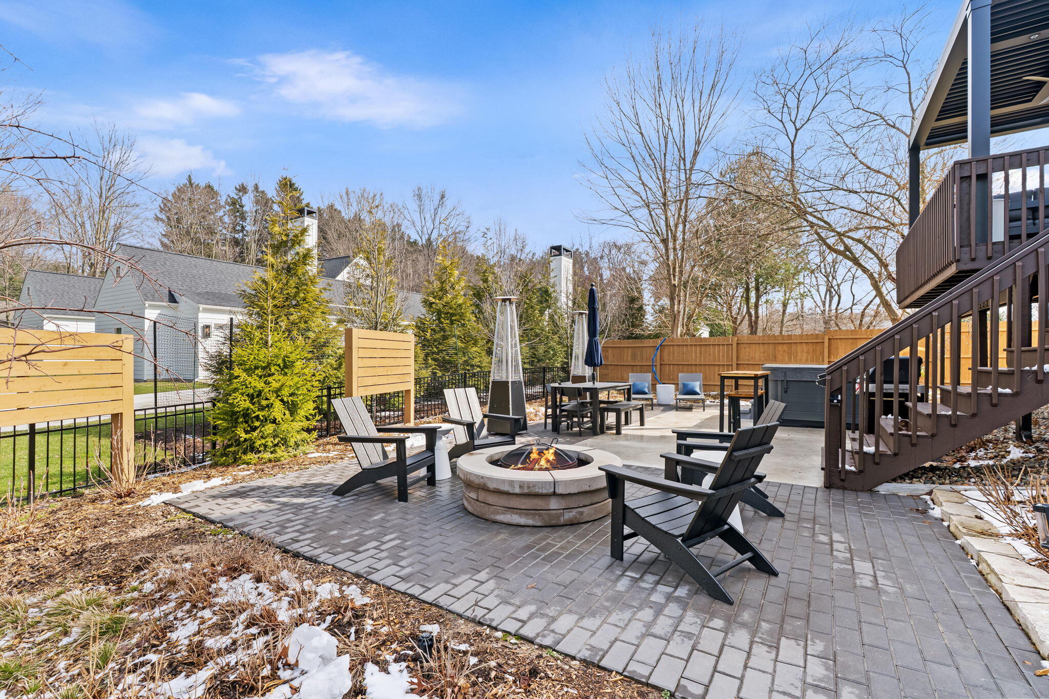 This stunning newer build home being sold turn key with nearly all furnishings & contents is ideally located near downtown Douglas & Saugatuck & just minutes from Lake Michigan. This property has been magnificently upgraded for elevated living. Featuring 4 bedrooms, 3 baths, & over 2,800 finished sq ft, the home showcases a custom Leicht kitchen with quartz countertops, integrated cabinetry with hidden fridge & dishwasher, a Wolfe stove, & a custom pantry. Enjoy seamless indoor-outdoor living with a StruXure pergola, terraced yard with ample seating, stone fire-pit, & 6-person hot tub in a fully fenced, architect-designed landscaped yard. Additional highlights include a 3-stall heated garage, 22kW whole-house generator, & a dedicated gym with cedar closet. This exceptional home is truly move-in ready. Perfect as a full-time residence or luxury getaway, it offers effortless style, modern convenience, & resort-like amenities in one of West Michigan's most desirable locations.