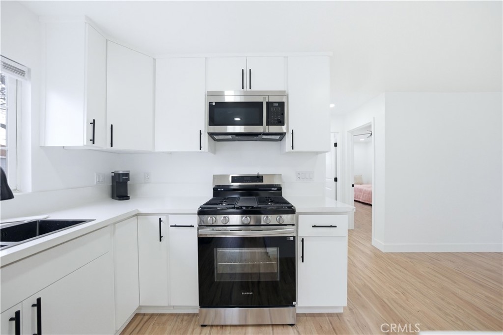 Beautifully remodeled 2 bedroom / 1 bathroom, corner-lot home offering modern upgrades, flexible living space, and a move-in ready experience. This updated home features new flooring, fresh interior and exterior paint, and a bright, open feel throughout. The remodeled kitchen is designed for both style and function, opening to the main living area for seamless everyday living and entertaining. Bedrooms are comfortably sized with clean finishes, mirrored closet doors, and updated lighting. The fully remodeled hall bathroom showcases contemporary tile work, a sleek vanity, matte black fixtures, and a tub with built-in niche and window for natural light. Additional upgrades include a new roof, and an energy-efficient ductless mini-split system for heating and cooling. Low-maintenance backyard ideal for outdoor seating, pets, or light gardening. The property also includes a one-car attached garage with laundry hookups. Located near schools, shopping, dining, and major freeways, this home is ideal for buyers seeking a turnkey property with modern upgrades and long-term potential. Potential down payment assistance programs may be available; buyers to verify eligibility.