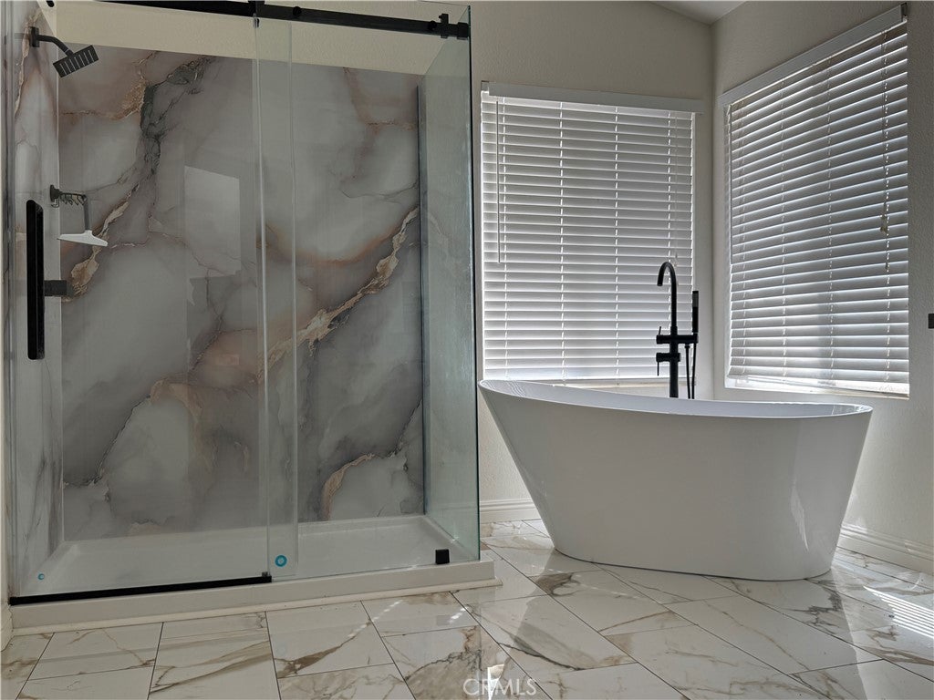 Charming Mediterranean-style exterior with a classic tile roof and timeless stucco finish 3-car garage with plenty of space for parking and storage -WELL-MAINTAINED LANDSCAPING WITH GREEN LAWN AND MATURE GREENERY -Welcoming curb appeal in a desirable, established neighborhood -Brand new carpet throughout, giving the home a fresh, cozy feel that’s ready for you to move right in -Beautifully updated primary bathroom designed with comfort and style in mind, featuring white shaker cabinets, dual sink vanity, quartz countertops, matte black fixtures, a freestanding soaking tub, and a walk-in glass shower. -Bright, light-filled spaces with second-floor skylights that bring in an abundance of natural light throughout the day -Dedicated Laundry Area with storage cabinets -Open and Functional Layout ideal for everyday living and entertaining -Spacious backyard with plenty of room to relax, entertain, or enjoy outdoor living your way
