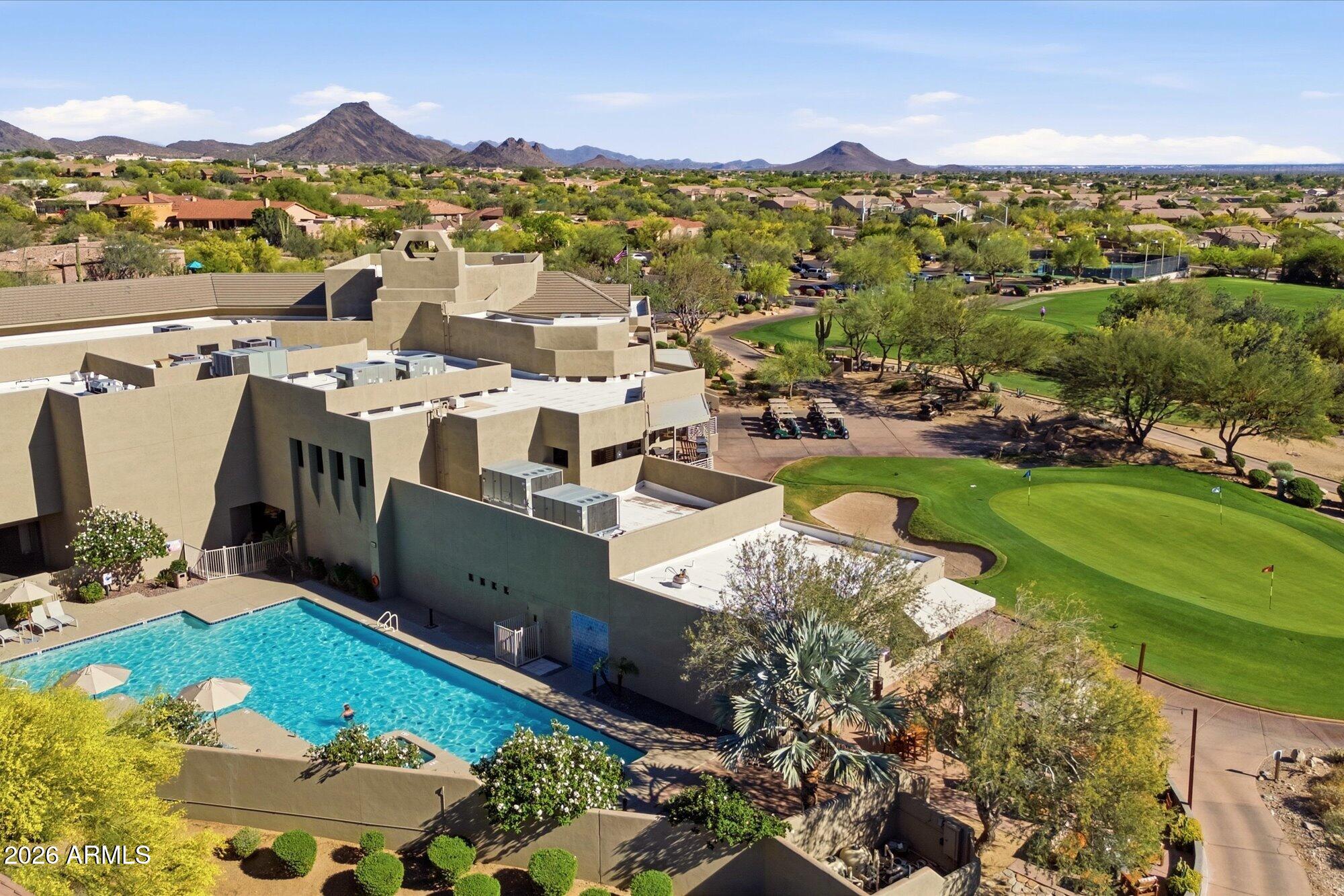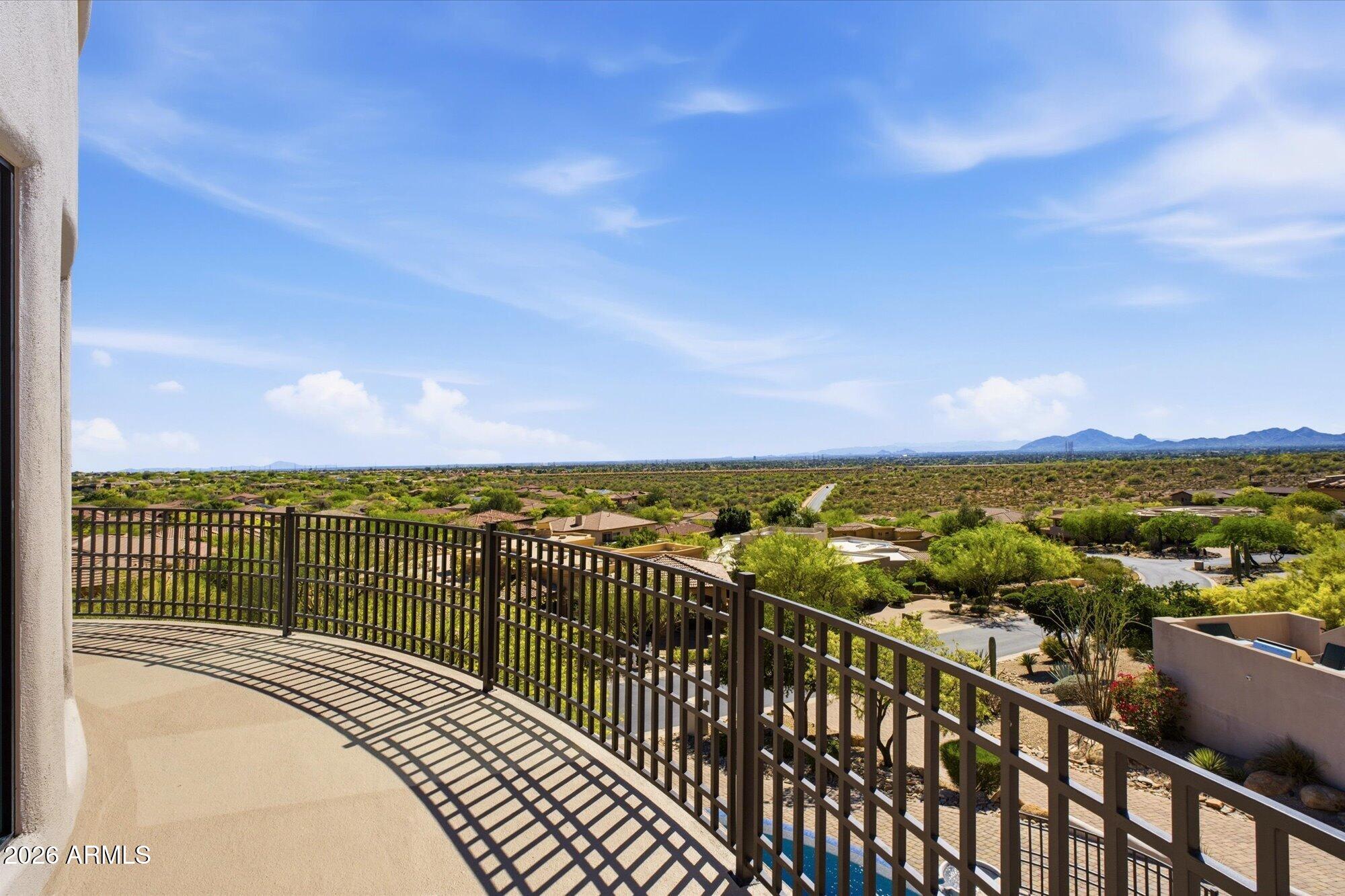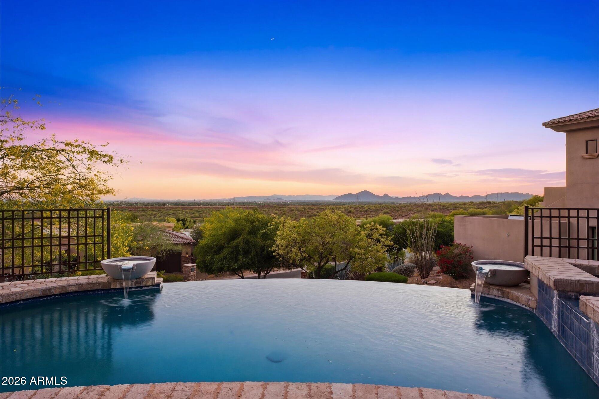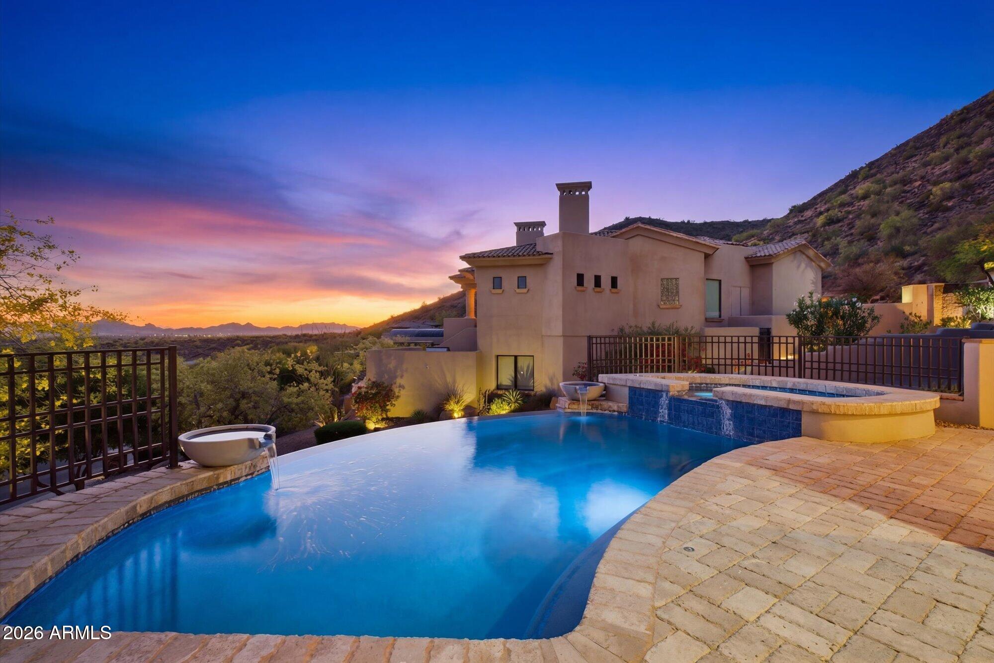 Stunning custom luxury home in exclusive Ancala Country Club, Scottsdales guard gated golf community in the McDowell Mountains. Hillside retreat with 4BD/6BA and ,1-acre lot backs to the mountain with ownership to the peak. Panoramic city lights, Camelback and desert views through expansive glass. Gourmet kitchen: Wolf/SubZero appliances, granite counters, custom cabinetry, large island. Great room: travertine fireplace and huge wet bar with two fridges. Home theater with step up and fridges. Elevator, travertine floors, high ceilings, heated pool & spa with city lights views. Unique curved architecture with soft round edges, multiple patios, two staircases: one to private guest suite with bedroom, bath, patio. Access to Pete Dye golf, clubhouse, tennis. A desert oasis!