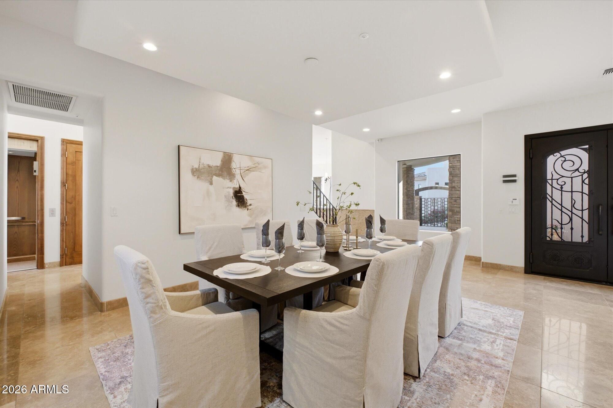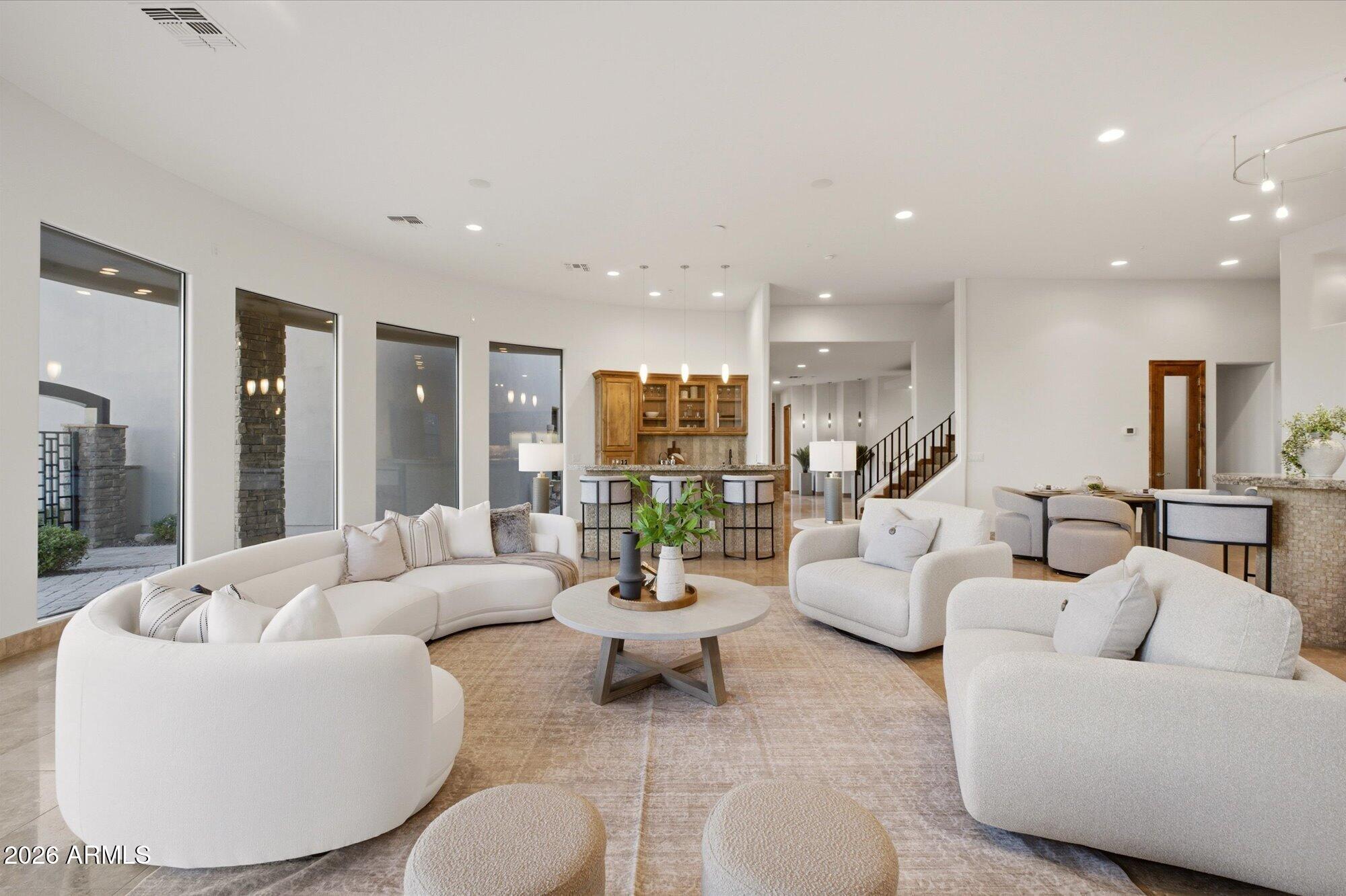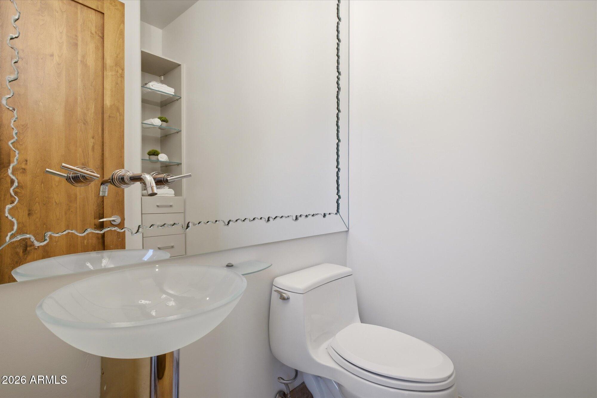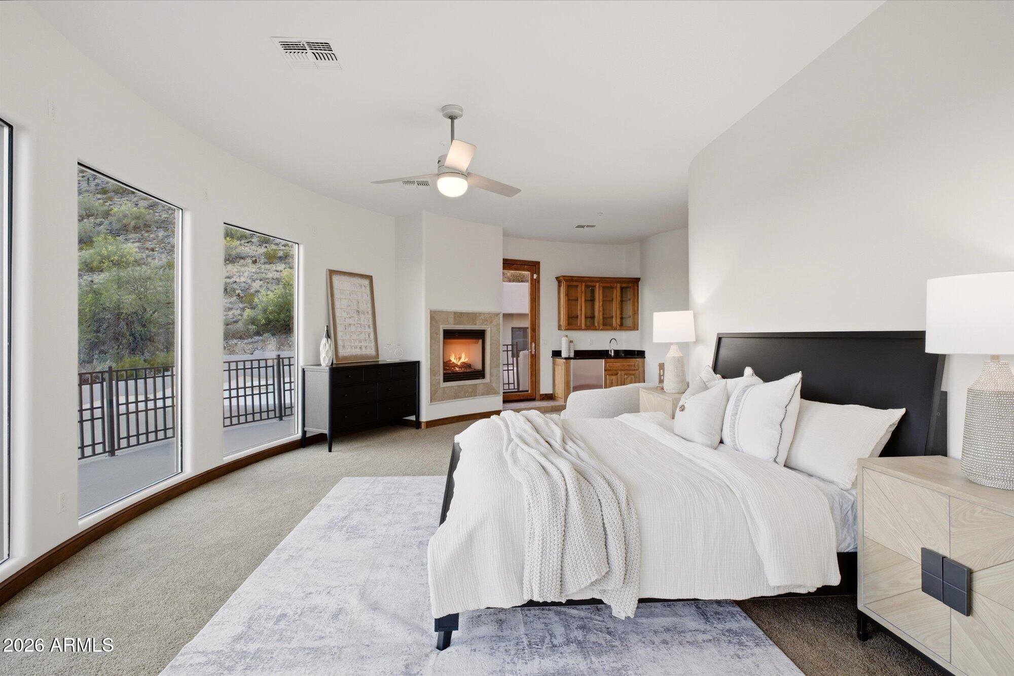 Stunning custom luxury home in exclusive Ancala Country Club, Scottsdales guard gated golf community in the McDowell Mountains. Hillside retreat with 4BD/6BA and ,1-acre lot backs to the mountain with ownership to the peak. Panoramic city lights, Camelback and desert views through expansive glass. Gourmet kitchen: Wolf/SubZero appliances, granite counters, custom cabinetry, large island. Great room: travertine fireplace and huge wet bar with two fridges. Home theater with step up and fridges. Elevator, travertine floors, high ceilings, heated pool & spa with city lights views. Unique curved architecture with soft round edges, multiple patios, two staircases: one to private guest suite with bedroom, bath, patio. Access to Pete Dye golf, clubhouse, tennis. A desert oasis!