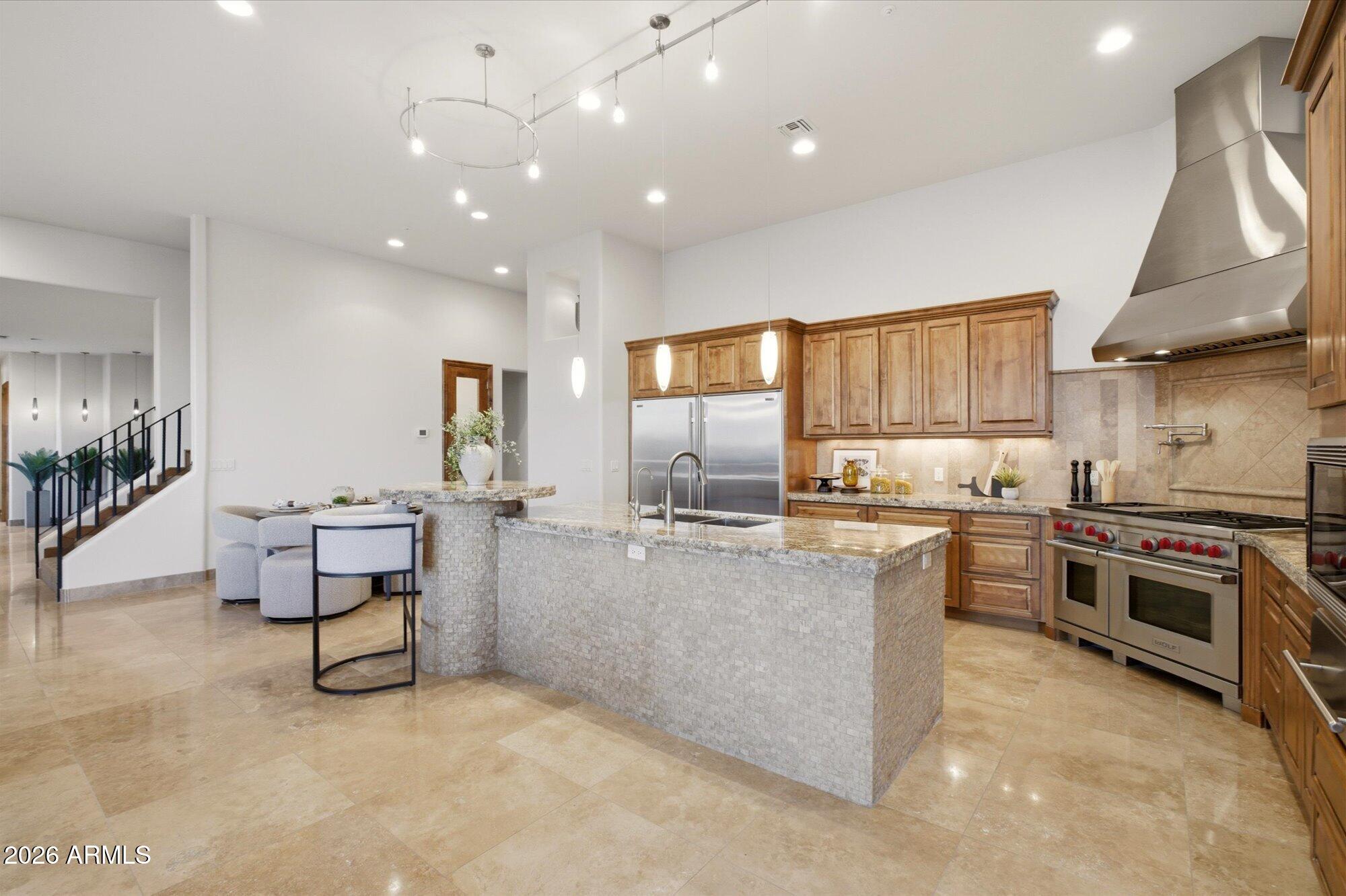Stunning custom luxury home in exclusive Ancala Country Club, Scottsdales guard gated golf community in the McDowell Mountains. Hillside retreat with 4BD/6BA and ,1-acre lot backs to the mountain with ownership to the peak. Panoramic city lights, Camelback and desert views through expansive glass. Gourmet kitchen: Wolf/SubZero appliances, granite counters, custom cabinetry, large island.