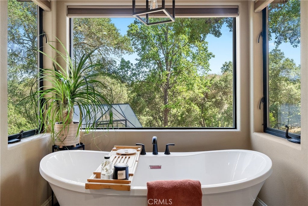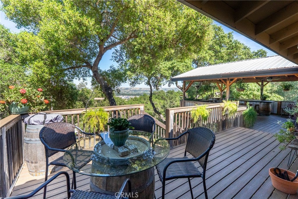 Stunning 3,332 /- sf home set on a beautiful oak graced 3 acre parcel, offering panoramic views of the surrounding hills and sparkling city lights. This 3 bedroom, 3 bathroom residence also features a versatile downstairs bonus room complete with a Murphy bed, 3/4 bath and an oversized walk-in closet. Downstairs is also accessible from both the interior stairway and a private exterior entrance, making it ideal for guests or extended living.Extensively updated over the past decade, the home showcases a thoughtfully designed kitchen with granite countertops, a large breakfast bar, center island with sink, custom cabinetry and a wine refrigerator, perfect for both everyday living and entertaining. The spacious primary suite includes a luxurious bathroom with a large walk-in shower and a soaking tub, positioned to take in serene views of the oak-covered landscape.The expansive great room features a beautiful fireplace and sliding pocket doors that open seamlessly to a covered deck with ceiling fans, an entertainers dream for enjoying indoor-outdoor living year-round.Additional highlights include a generous laundry room with abundant storage and a refrigerator, leading to an oversized 2-car garage with built-in workbenches and extra storage areas.Step outside to your own enchanted forest setting, complete with mature oaks, visiting deer and abundant wildlife. A fenced garden area includes a greenhouse and raised beds for gardening enthusiasts. The circular driveway provides ample parking for guests, along with space for RV parking.A rare opportunity to enjoy privacy, natural beauty and modern comfort all in one exceptional property.