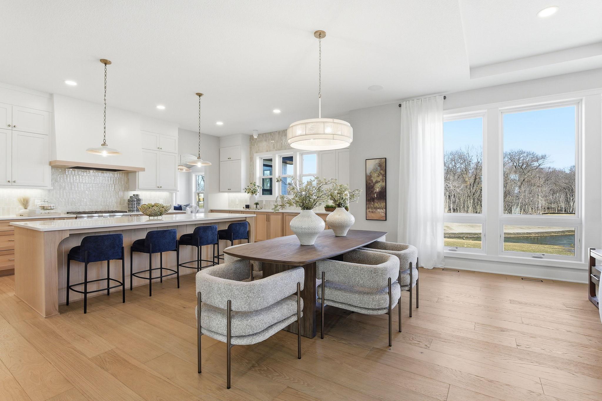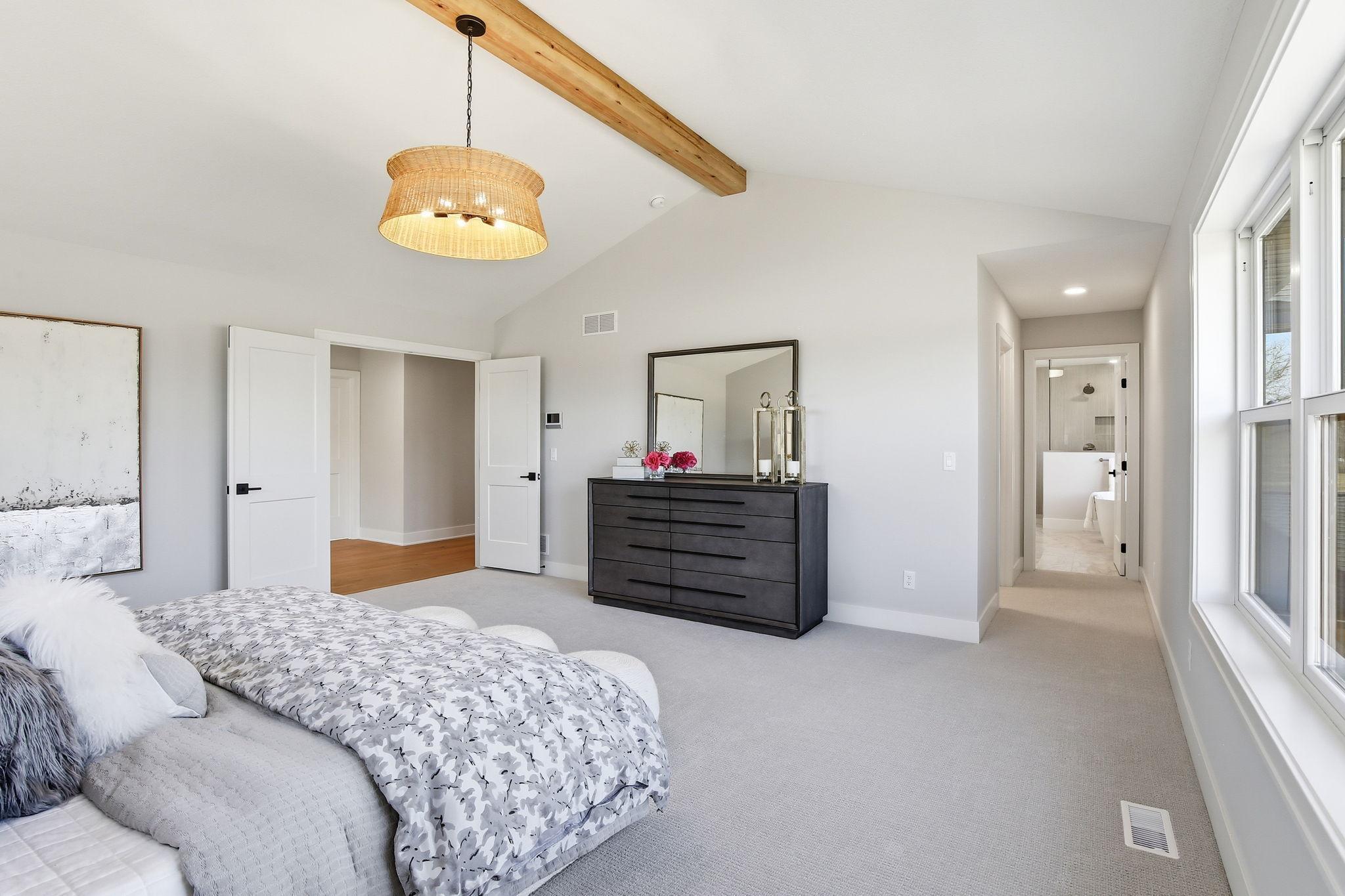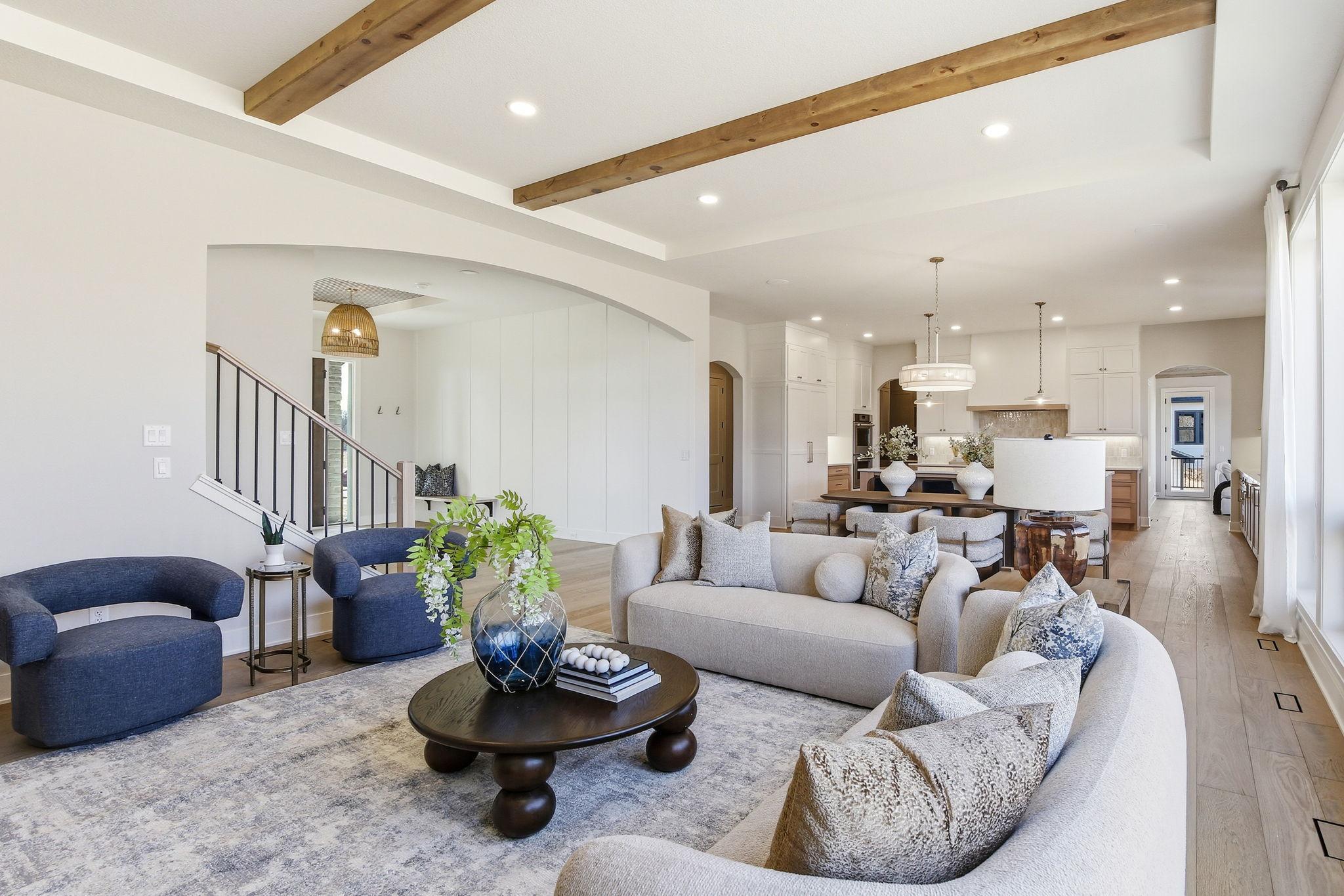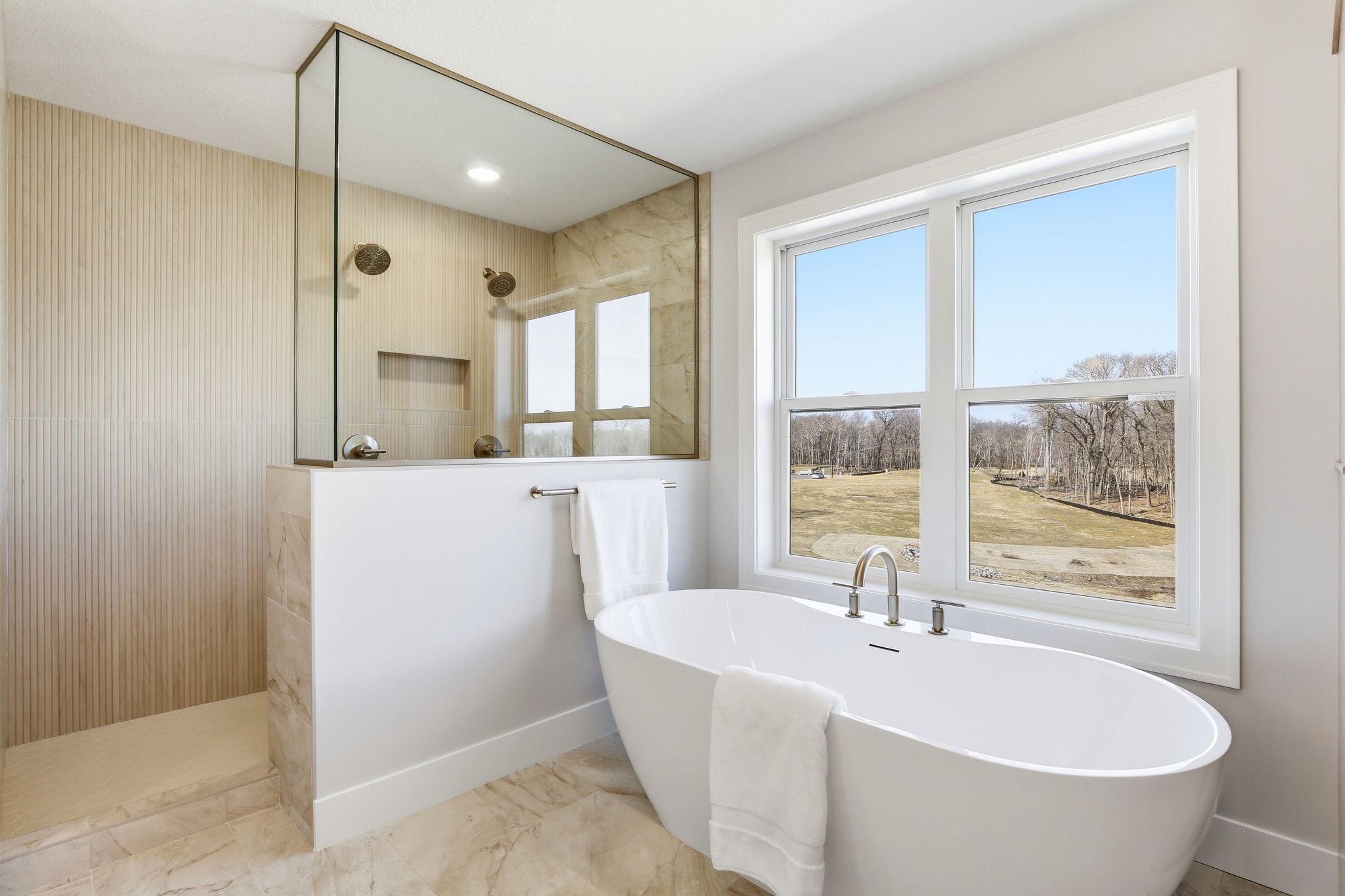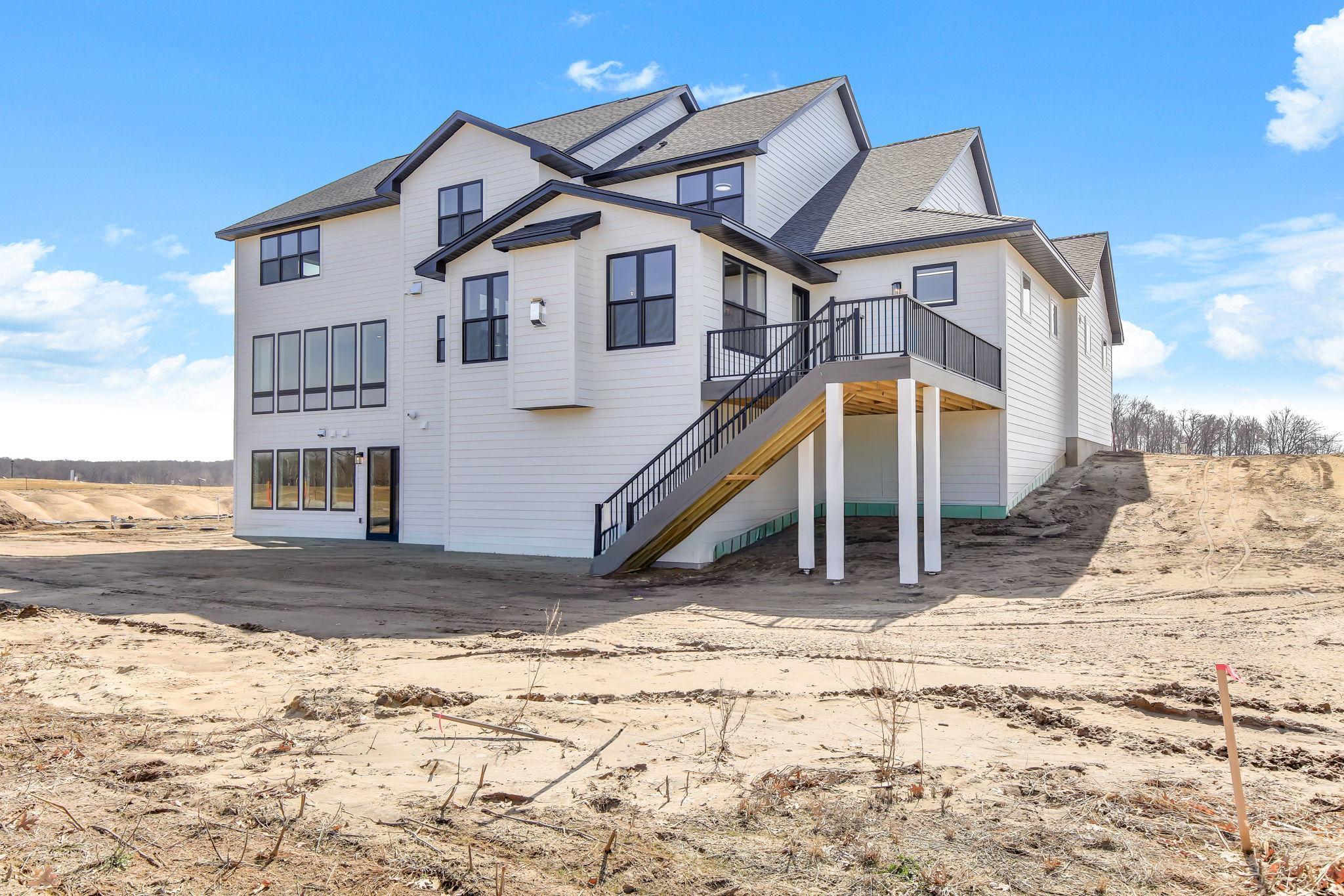 Welcome to Ham Lakes newest neighborhood, Elwell Farms, featuring 106 beautiful acreage sites that offer wooded/pond and scenic views overlooking the Carlos Avery Wildlife Management Area. Amenities in the neighborhood include a pool, clubhouse, park, fishing pier, and so much more! NIH Homes is excited to bring this new floor plan to the neighborhood, which offers tall ceilings on the main floor, including wood beams and beautiful ceiling details. Other main floor features include a large walk-through pantry/prep area, a sunroom with a stone-surround fireplace, and an office. Upstairs, you will find a luxurious primary suite, a Jack-and-Jill bedroom, a junior suite, and a large bonus room. The basement is thoughtfully designed, including entertaining areas in the family room, rec room, and bar, all overlooking the golf sim room. It also features a guest bedroom/bath, an exercise room, and a large indoor athletic court. The garage is fully finished, including a unit heater and floor drain. All of this is complemented by a beautiful pond view out the back.