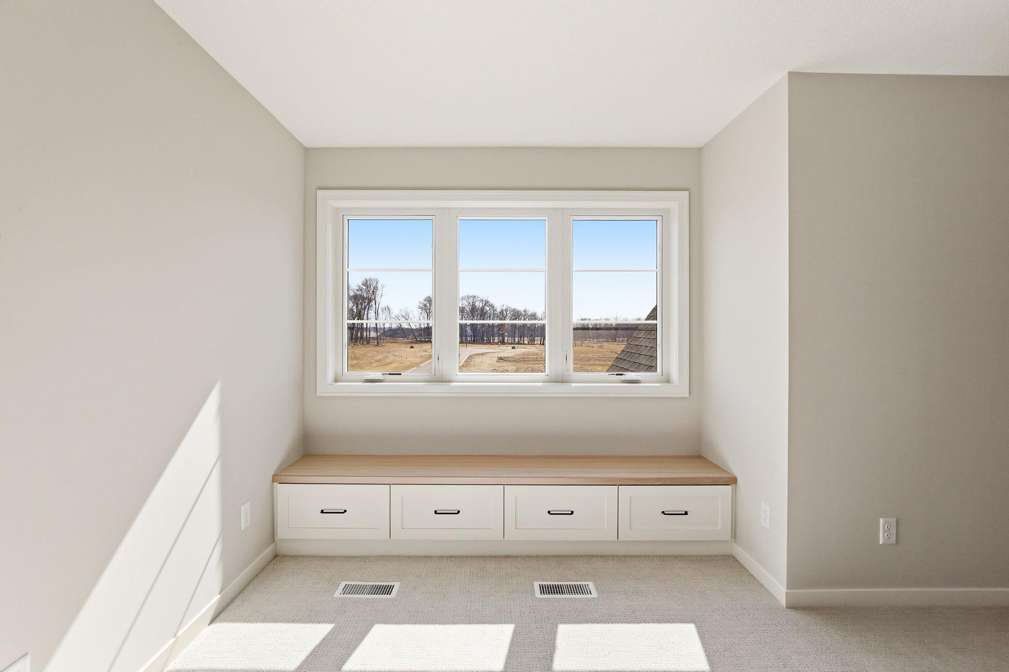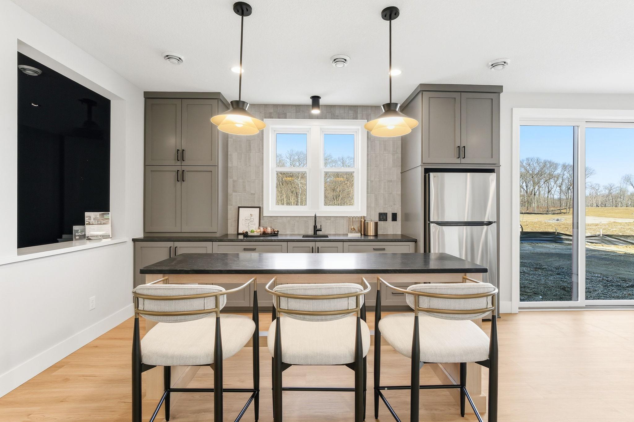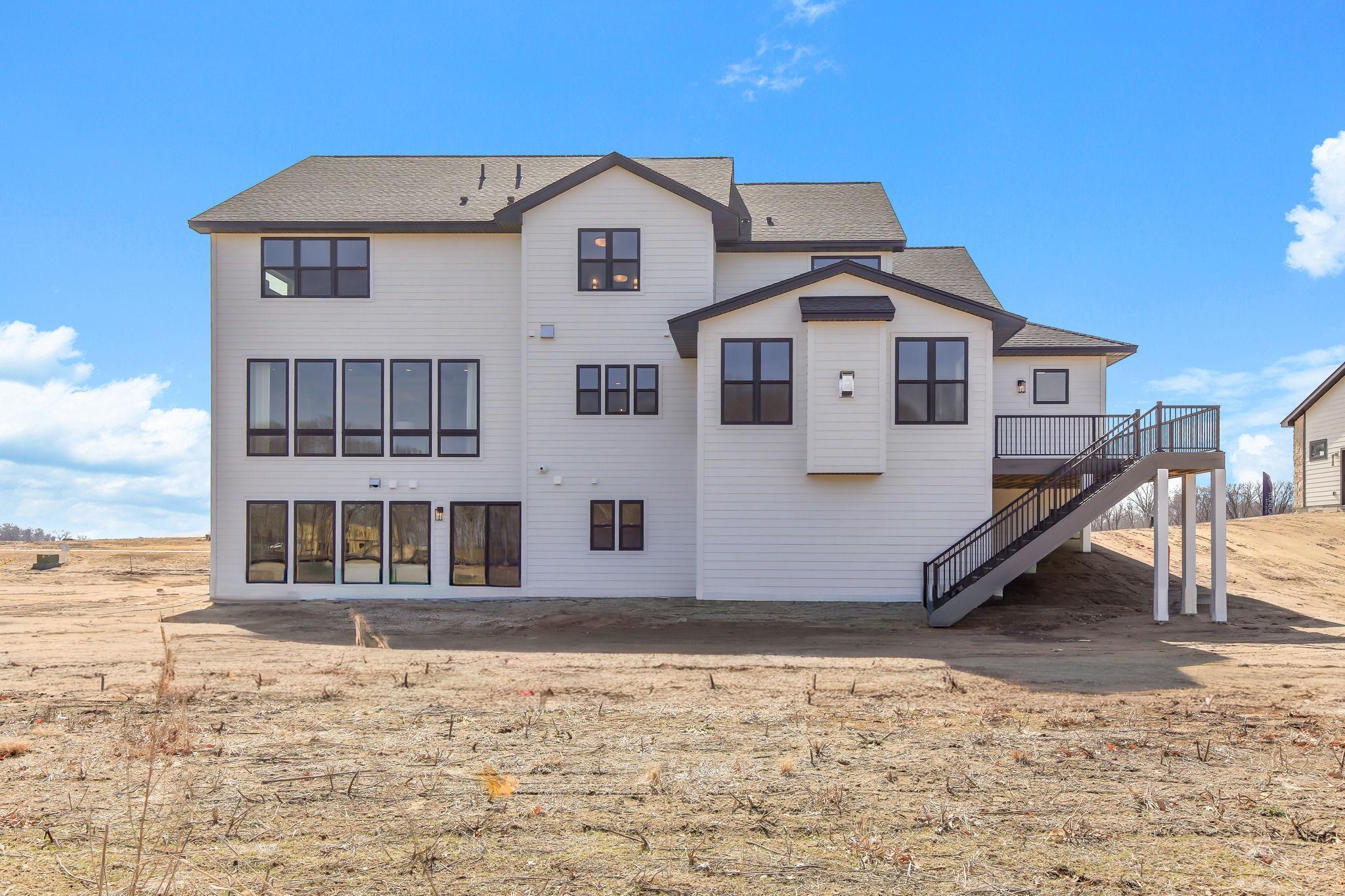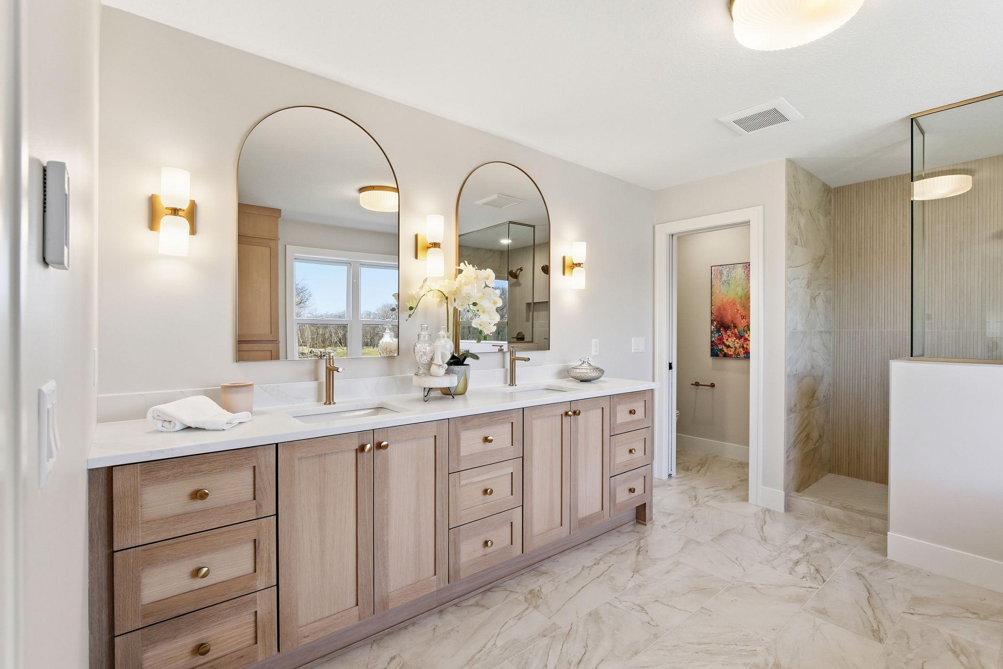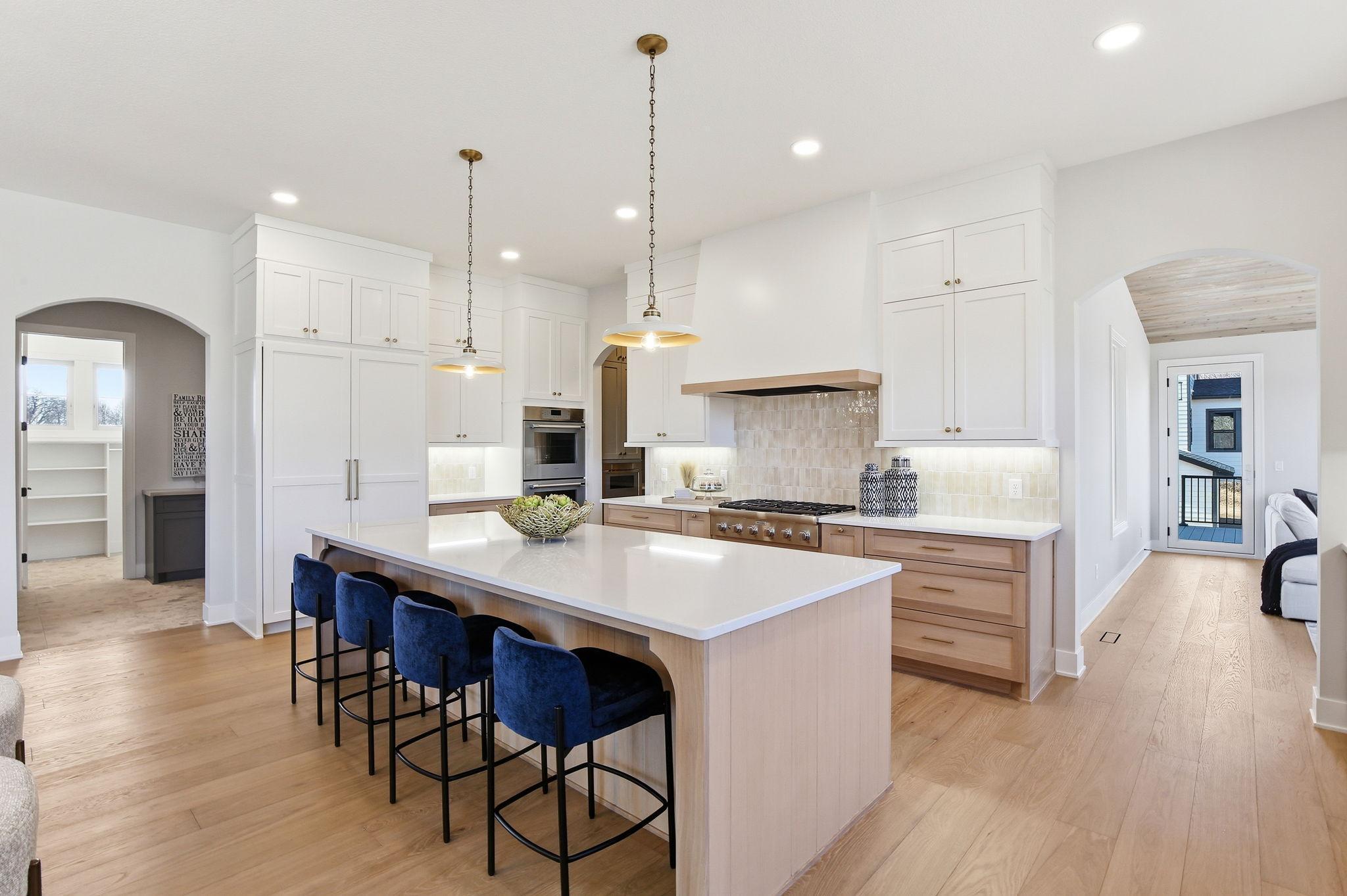 Welcome to Ham Lakes newest neighborhood, Elwell Farms, featuring 106 beautiful acreage sites that offer wooded/pond and scenic views overlooking the Carlos Avery Wildlife Management Area. Amenities in the neighborhood include a pool, clubhouse, park, fishing pier, and so much more! NIH Homes is excited to bring this new floor plan to the neighborhood, which offers tall ceilings on the main floor, including wood beams and beautiful ceiling details. Other main floor features include a large walk-through pantry/prep area, a sunroom with a stone-surround fireplace, and an office. Upstairs, you will find a luxurious primary suite, a Jack-and-Jill bedroom, a junior suite, and a large bonus room. The basement is thoughtfully designed, including entertaining areas in the family room, rec room, and bar, all overlooking the golf sim room. It also features a guest bedroom/bath, an exercise room, and a large indoor athletic court. The garage is fully finished, including a unit heater and floor drain. All of this is complemented by a beautiful pond view out the back.