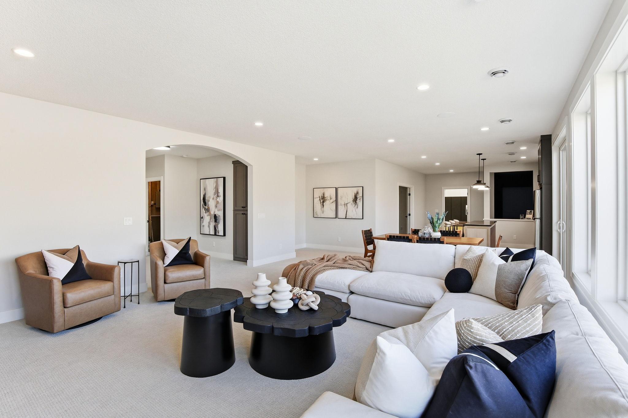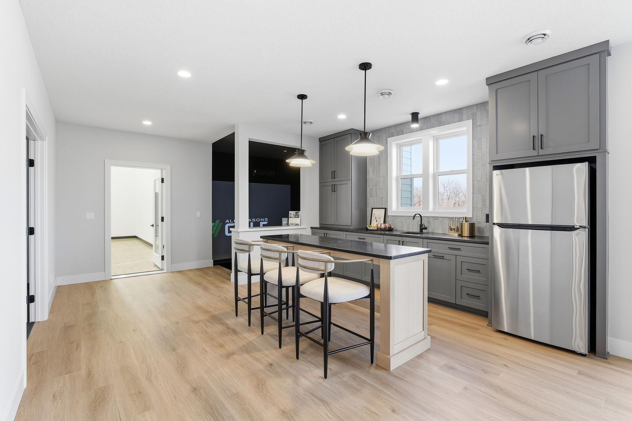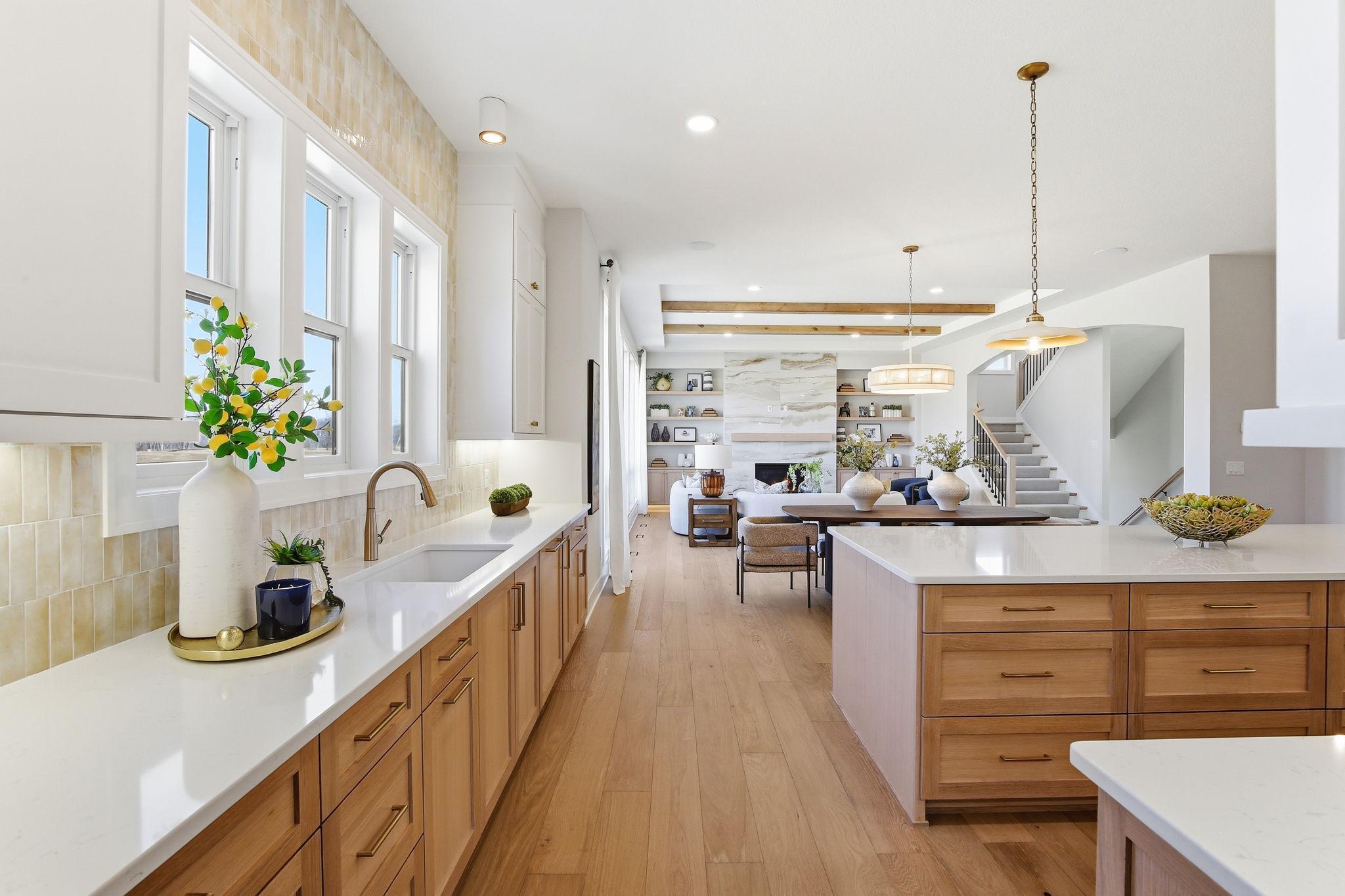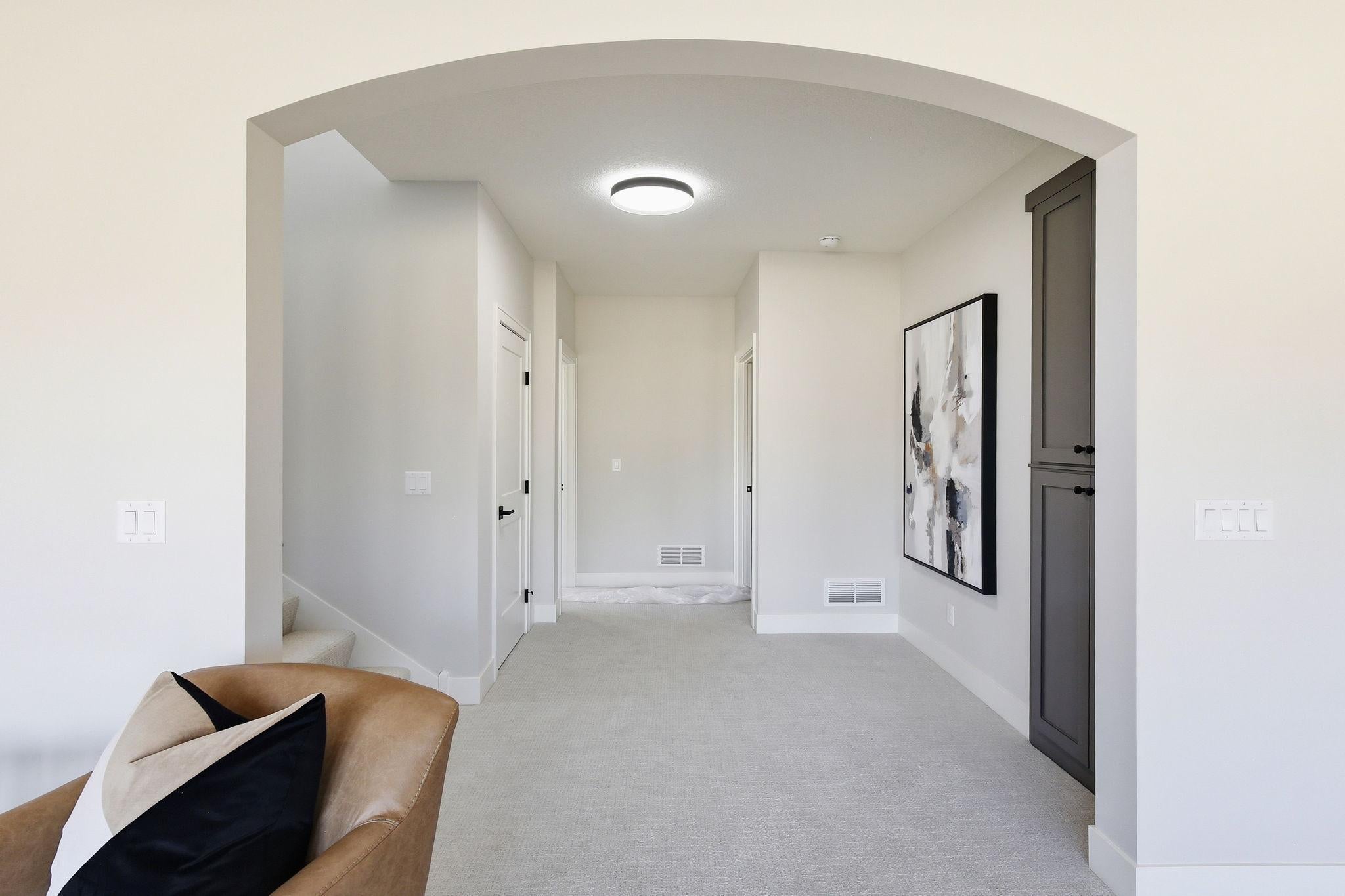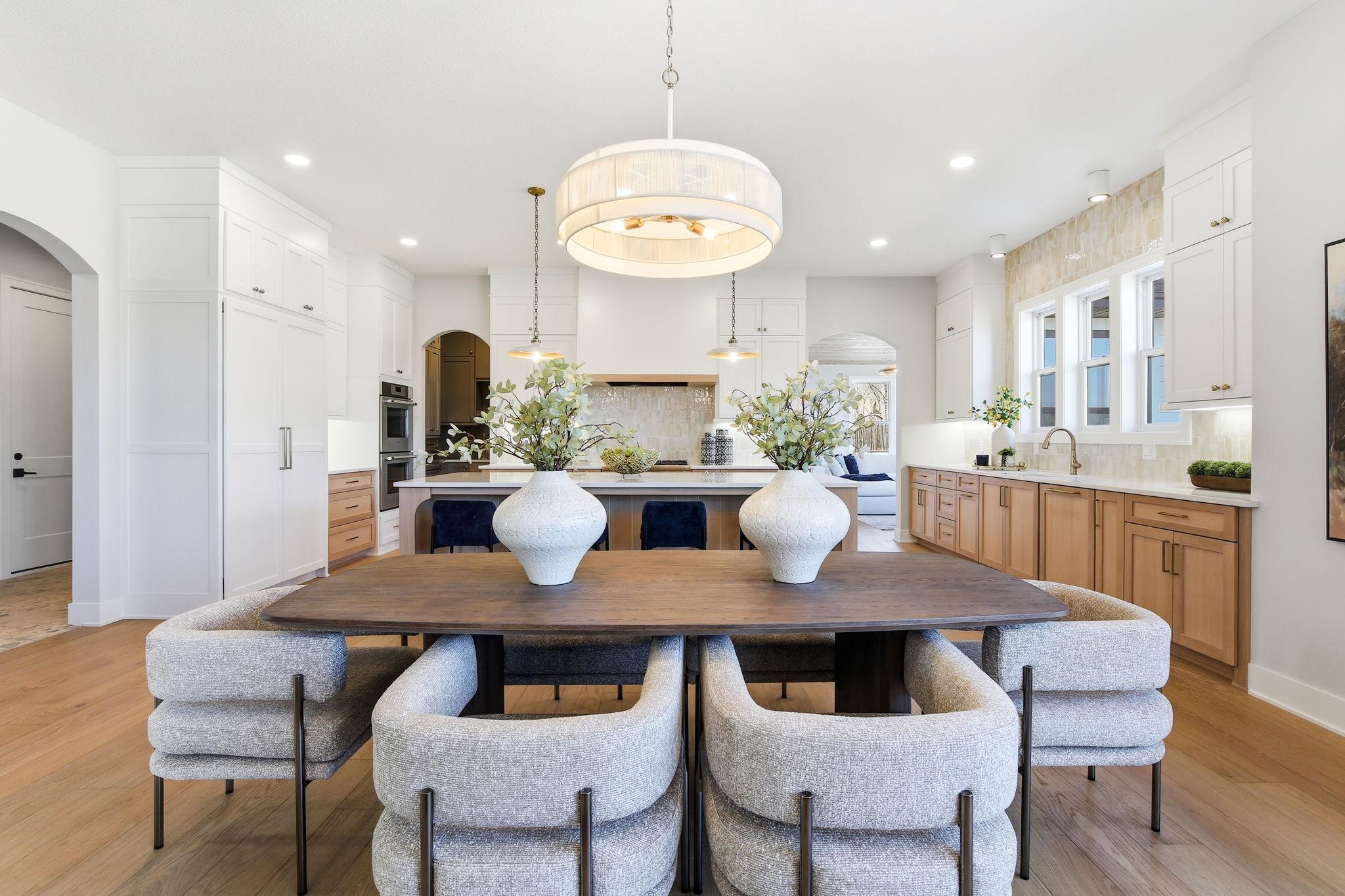 Welcome to Ham Lakes newest neighborhood, Elwell Farms, featuring 106 beautiful acreage sites that offer wooded/pond and scenic views overlooking the Carlos Avery Wildlife Management Area. Amenities in the neighborhood include a pool, clubhouse, park, fishing pier, and so much more! NIH Homes is excited to bring this new floor plan to the neighborhood, which offers tall ceilings on the main floor, including wood beams and beautiful ceiling details. Other main floor features include a large walk-through pantry/prep area, a sunroom with a stone-surround fireplace, and an office. Upstairs, you will find a luxurious primary suite, a Jack-and-Jill bedroom, a junior suite, and a large bonus room. The basement is thoughtfully designed, including entertaining areas in the family room, rec room, and bar, all overlooking the golf sim room. It also features a guest bedroom/bath, an exercise room, and a large indoor athletic court. The garage is fully finished, including a unit heater and floor drain. All of this is complemented by a beautiful pond view out the back.