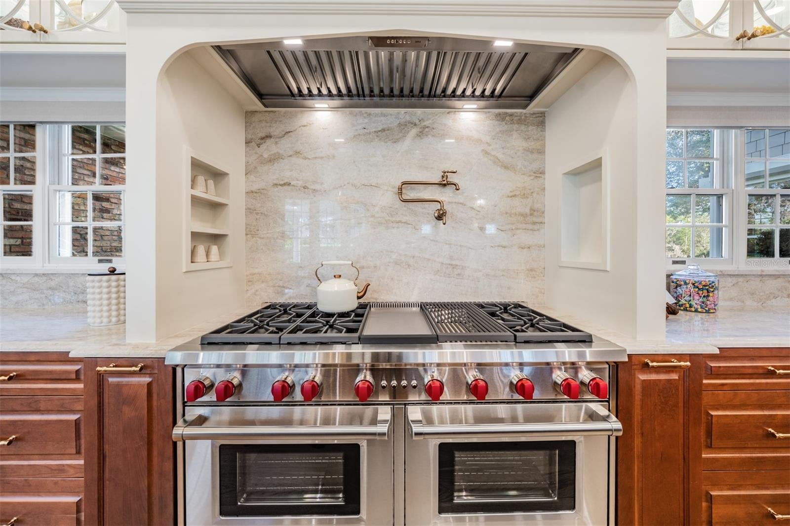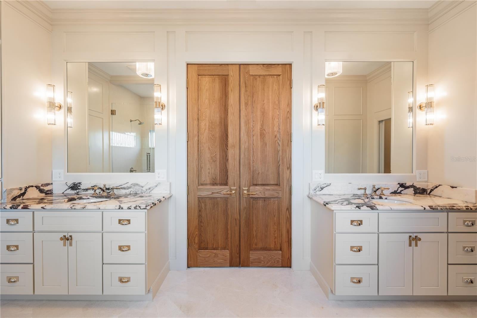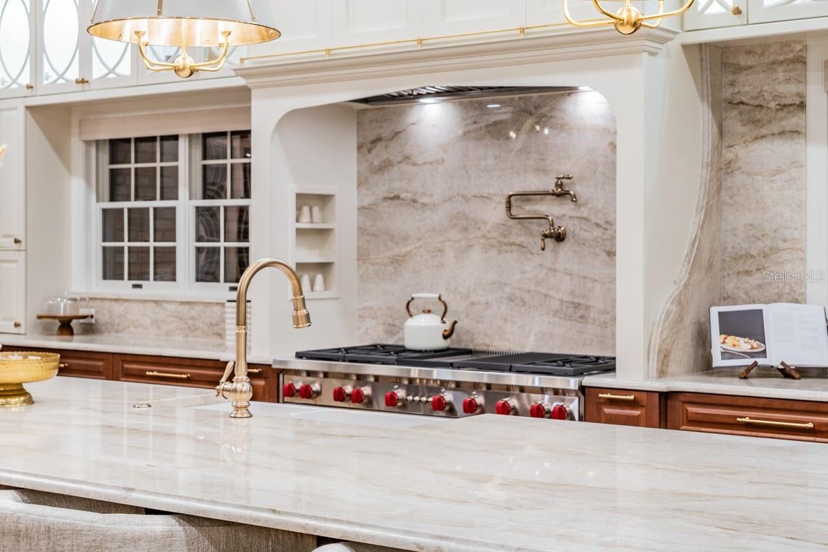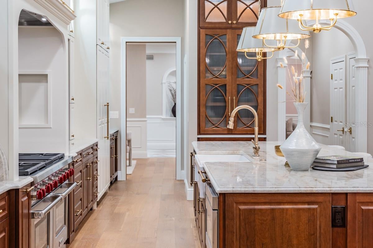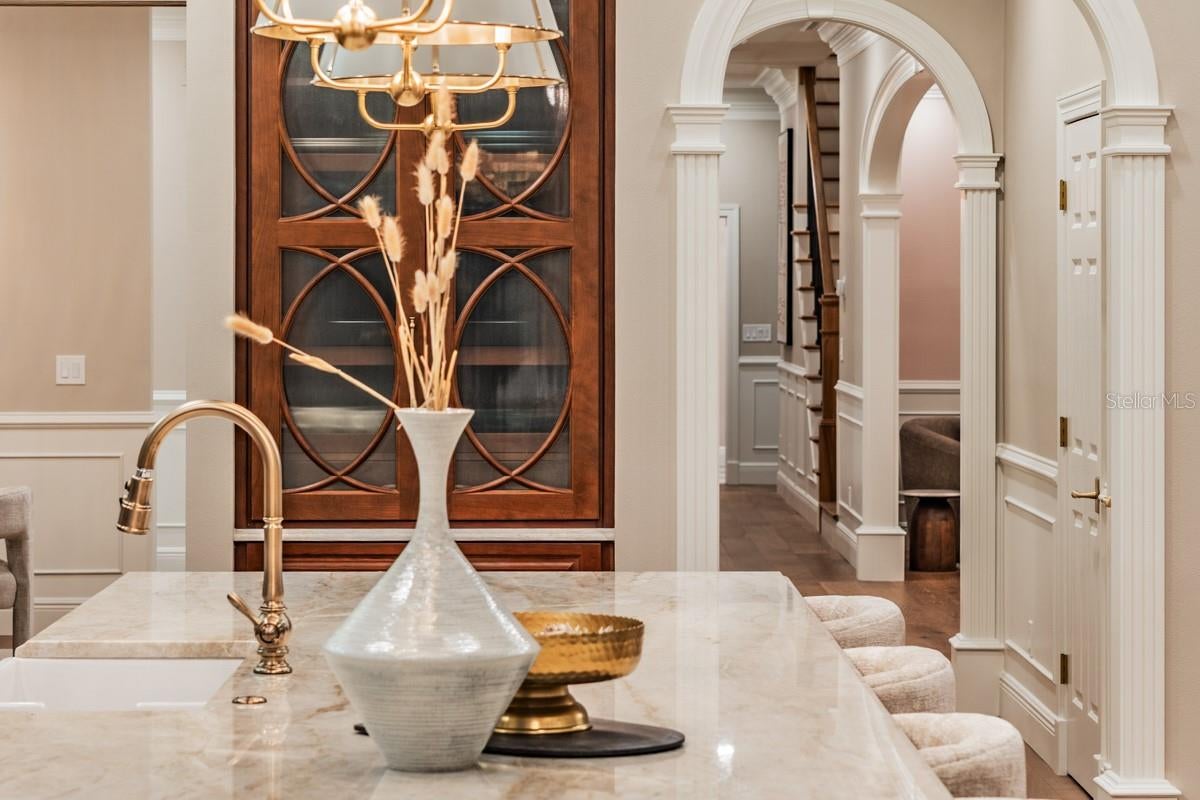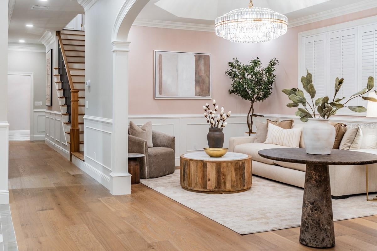 Timeless architecture, exceptional craftsmanship & refined luxury living in Palm Harbor! Perfectly positioned on a private cul-de-sac in the prestigious community of Cobbs Acres, this stunning 5,700 square-foot estate is coming to market for the first time after being meticuliously redesigned to the highest standards of modern luxury. A charming brick path welcomes you to the covered front porch where peaceful views of Lake Tarpon create a tranquil setting. From the moment you enter through the double French glass doors, the home unfolds with elegant features, designer finishes, and beautifully curated spaces - details rarely found in todays homes. The foyer flows into the formal living room, music room, & formal dining room, & also features a powder bath highlighted by a hand-carved Italian marble sink. A gracefully arched hallway leads to the heart of the home: a stunning great-room-style living area designed for both everyday living & refined entertaining. This wing features an oversized living room, spacious dining area, & a chefs dream kitchen. Floor-to-ceiling custom cabinetry surrounds a professional appliance suite; a 60-inch Wolf gas range with double ovens, pot filler, & custom hood, along with a Sub-Zero refrigerator & freezer, Miele dishwasher, Scotsman ice maker, & a custom coffee bar. A beverage station with wine fridge & custom built-in pantry provides optimal functionality. Adjacent to the main living space is an oversized bedroom or bonus room, a full bathroom w/ walk-in shower near the pool, & perfectly placed closet designed for laundry or addtl utility. White oak flooring runs throughout, complemented by custom wainscoting & crown molding. Generous closet space throughout the home provides exceptional storage & organization. Sconce lighting lines the hallways and leads to the upper level where five of the bedrooms are located. At the top of the stairs, the main laundry room offers abundant cabinetry & storage. Two bedrooms share a beautifully designed marble bathroom featuring dual sinks, a large walk-in shower, private water closet, & custom cabinetry. Two addl bedrooms each feature private en-suite bathrooms - One w/ a soaking tub & shower combination finished in marble, while the other offers an arched walk-in shower with oversized wood vanity. Down the hallway, an arched entryway introduces the private primary wing, complete with a color-drenched office flooded with natural light. Enter the primary retreat through 8 foot white oak solid doors, revealing a sanctuary designed for relaxation. The primary bath centers around a soaking tub & includes dual vanities with custom cabinetry, large walk-in shower, & a private water closet with a Toto fixture. The primary closet offers exceptional storage, custom lighting, & a steam closet for added convenience. The outdoor spaces complement the home beautifully - a large rounded patio reflects the timeless distinction, while the covered porch provides a relaxing place to gather or unwind. The pool area is perfectly suited for Florida living, & the spacious private backyard offers room for outdoor enjoyment or recreation. The yard behind the home previously housed a batting cage for the baseball enthusiast. An oversized 3 car garage fits large vehicles while still offering space for storage, equipment, & recreational toys. Ideally located near award-winning Gulf beaches, championship golf courses, premier dining & shopping, Tampa Intl Airport, & downtown Tampa.