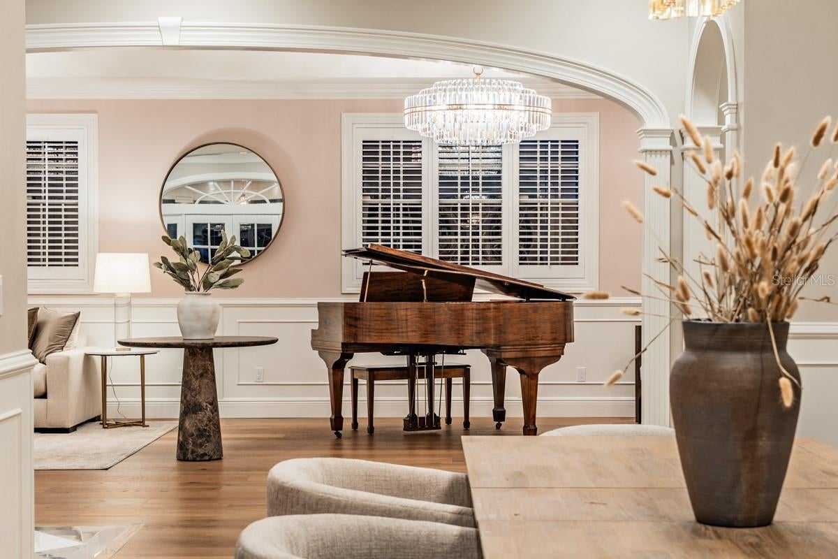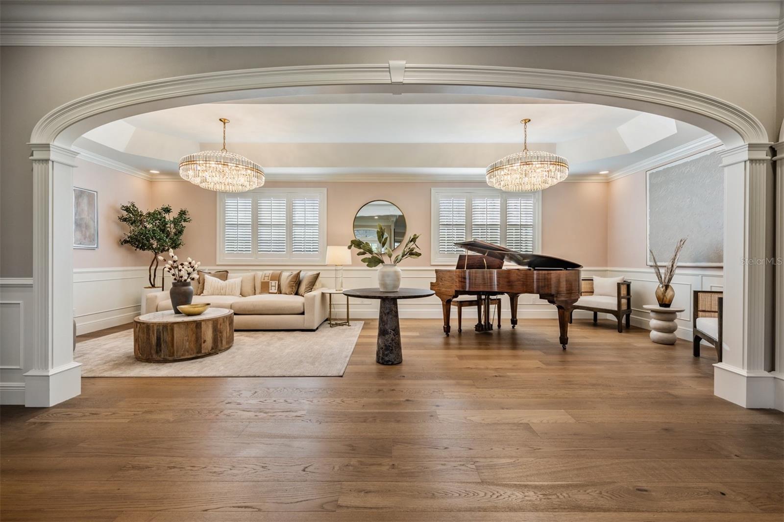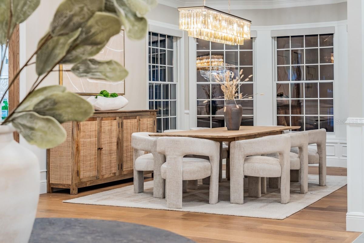 Enter through the gorgeous front door and discover elegance at its best! Gleaming Hardwood floors, a popular Open Floor Plan and large Sunlit rooms in over 4,000 square feet. The formal Dining room with a large beautiful window, wainscoting, trey ceiling with accent lighting opens to a spacious Great room.