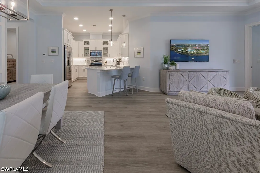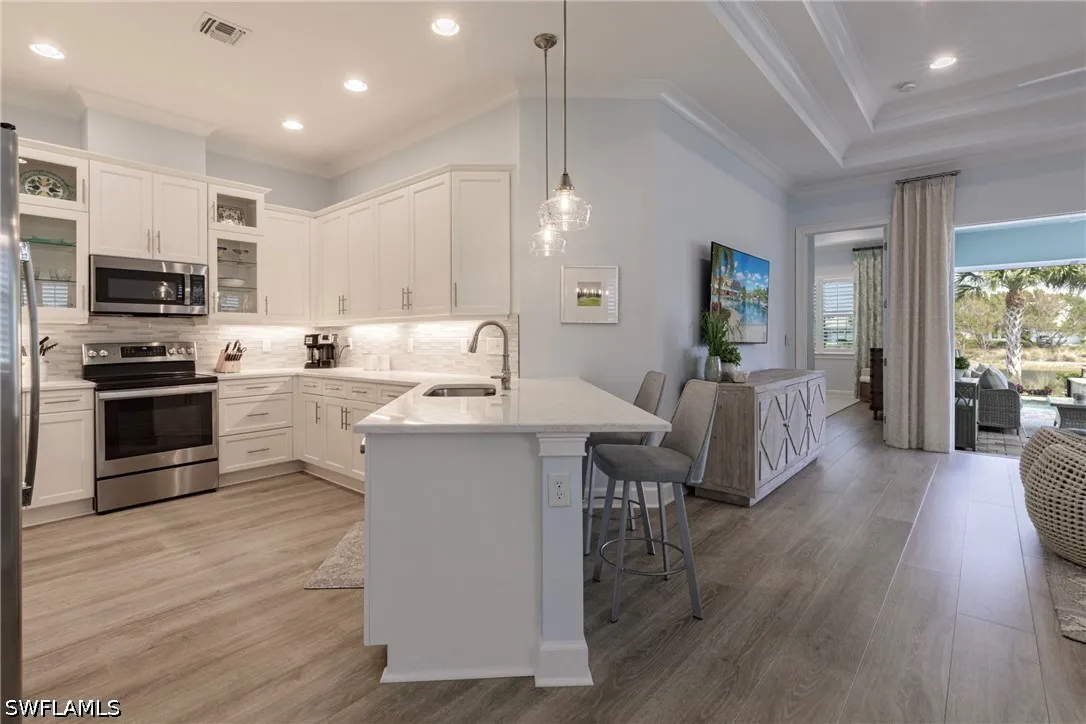 Welcome to this beautifully updated single-family home in the sought after Glen Eagles neighborhood in Pelican Sound, the areas finest bundled golf community. This elegant and tastefully updated home features an open great room floor plan designed for easy Florida living and entertaining.