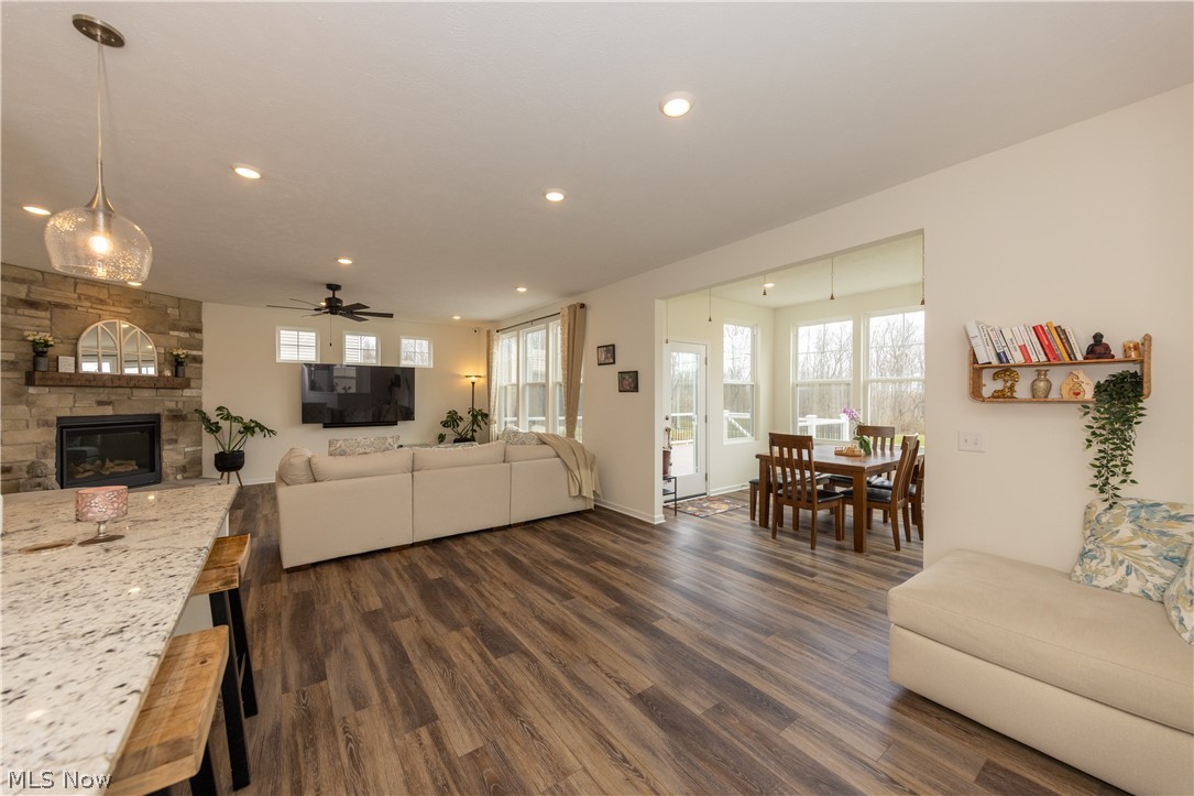 Stunning like new 2024 Colonial offering premium owner selected upgrades and thoughtful design. Better than buying new - having all the beautiful landscaping and lawn done along with the Trex composite deck and stamped concrete patio to enjoy now! This 3 bedroom, 3 full-bath home features a chef-inspired kitchen with granite countertops, a large center island, high-end appliances, soft close cabinetry, and pantry will inspire your inner gourmet. The Planning Center off the kitchen is a great space for organizing meal prep, family coordination, and office/study area. The dining room/sunroom overlooks the beautiful yard enhancing the serenity of the home. The open-concept family room is ideal for everyday living and entertaining with a gas fireplace in a custom stone wall, another fantastic upgrade. Off the foyer is the first-floor office with tons of natural light also makes a great separate play area. On the second floor there is an additional office or study providing flexible work from home options or another great place to relax. The primary suite is spacious with room to relax and the en-suite includes dual vanities and a large, upgraded shower and big walk-in closet. There are 2 more generous size bedrooms with walk-in closets. The laundry is also conveniently located on the second floor. This house has designer flooring, upgraded lighting, finishes, luxury bath fixtures and more upgrades are featured throughout this fantastic home. The unfinished basement is extra tall and ready for customization with a bathroom rough in and egress windows. Outside, a low-maintenance Trex deck overlooks the stamped concrete patio and landscaped backyard making it perfect for the family to enjoy and outdoor gatherings. This home includes energy efficient windows, high efficiency HVAC, Reverse Osmosis water system, and extended two-car garage is move-in ready and waiting for you. Schedule a showing to experience the premium finishes and outdoor living spaces in person.