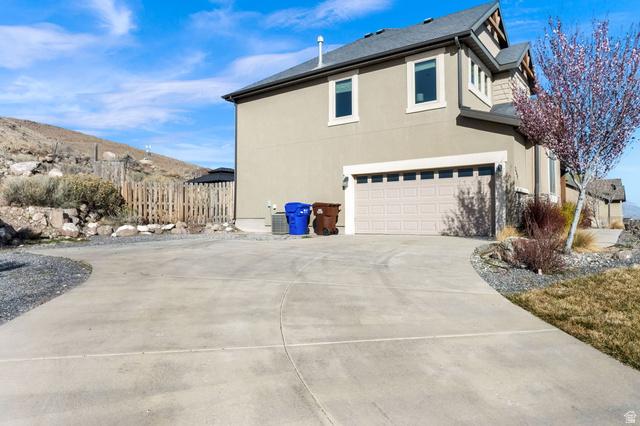 Perched in one of Eagle Mountains most coveted communities, this stunning estate offers the perfect blend of high-end sophistication and wide-open space. Situated on a massive .80 acre lot, this property guarantees lifelong privacy with zero backyard neighbors. From the moment you step onto the front porch, youll be greeted by breathtaking, panoramic views of the lake and the entire valley-the perfect backdrop! Inside, no detail has been overlooked. This home boasts upgraded finishes throughout, featuring a bright, modern aesthetic and a fully finished basement that doubles your living and entertaining space. Whether youre hosting in the gourmet-style kitchen or relaxing in the spacious primary suite, the craftsmanship shines through. For those with toys or a passion for the outdoors, this horse property is a dream come true. With dedicated RV parking and immediate access to local trails, your adventures start right at your doorstep. Located just minutes from the new Walmart and local amenities, you get the peace of rural living with the convenience of the city. This is more than a home; its your own private hillside retreat. Schedule your private tour today!