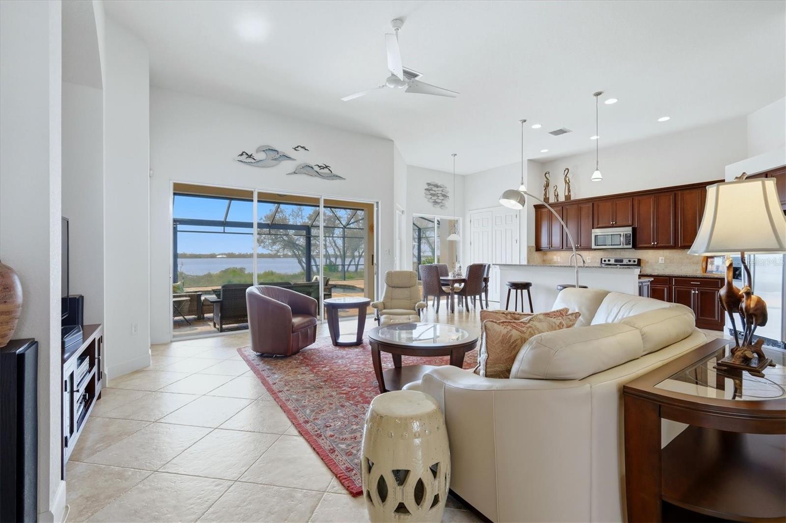 EXPERIENCE UNMATCHED RIVERFRONT LIVING in RIVERWOOD and ENDLESS BREATHTAKING SCENIC FLORIDA SUNSETS together with a TRANSFERABLE PRIVATE RIVERWOOD BEACH CLUB MEMBERSHIP on the GULF OF MEXICO.! Embrace a lifestyle of tranquility and sweeping natural beauty in this exquisite 3-Bedroom, plus Den, 3-Bath, 3-Car Garage customized Sussex model, perfectly positioned along the Myakka River in the highly regarded gated community of Riverwood. Tucked within the sought-after River Run neighborhood, this exceptional residence showcases rare, unobstructed panoramic river views and delivers the perfect blend of comfort, peacefulness and privacy. The moment you enter, an expansive, sunlit layout unfolds, featuring soaring 10-foot ceilings and diagonally laid tile flooring. The impressive Great Room takes center stage with its full wall of sliding glass doors, drawing your eyes directly to the breathtaking river backdrop. This inviting space flows effortlessly into the well-appointed kitchen, featuring solid wood cabinetry, stainless steel appliances, a breakfast bar, a large pantry, and a cozy dining nook bathed in natural light with tranquil water views. A formal dining room enhanced by a tray ceiling provides the ideal setting for memorable dinners and special occasions. Just beyond, the oversized lanai offers an exceptional outdoor living experience—perfect for gatherings or peaceful moments overlooking the river. The primary suite is a true sanctuary, complete with private lanai access, a tray ceiling, walk-in closet, and a luxurious en-suite bathroom offering dual vanities, a garden tub, and a spacious walk-in tiled shower. The second bedroom is positioned near a full pool bath, while bedroom three and the Den share a convenient Jack-and-Jill bathroom. Step outside to discover your own serene riverside haven. The extended lanai features a screen pool cage, a custom-built sparkling solar heated pool and spa, and plenty of deck space to take in the captivating river views. Added Bonus NEW 2025 AIR CONDITIONER and UPGRADED ROLL DOWN STORM SHUTTERS for a peace of mind. PLUS Turn Key Furniture Package Available. Ask Agent for Details. Riverwood is an Audubon-certified, master-planned community known for its lush natural surroundings and impressive resort-style amenities, including: Championship 18-hole golf course with top-tier practice facilities, Private Beach Club on Manasota Key, 18 Har-Tru tennis courts, 12 pickleball courts, Fitness and Activity Center, Bocce courts, championship croquet lawn, Clubhouse with restaurant and bar, Dog Park and miles of scenic walking and biking trails. Premier Location. Ideally located near the new Sunseeker Resort, Tampa Bay Rays and Atlanta Braves Spring Training facilities, and the stunning beaches of Boca Grande, Englewood, and Venice, this home provides effortless access to world-class boating, fishing, dining, and shopping. This is not just a home—it is an extraordinary lifestyle opportunity. Properties like this rarely become available. Arrange your private tour today and experience the magic of riverfront living in one of Southwest Florida’s most coveted communities.