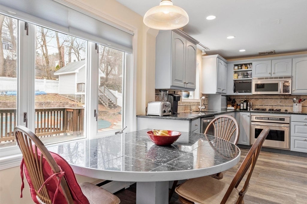 Set behind a private gate, 5002 Paradise offers sweeping bay views from nearly every room.Vacation at home with steps from your backyard leading down to the bay, where the parcel extends into the water.The architecturally stunning living room connects to the outdoors, creating an idyllic setting for both entertaining and everyday living. Soaring ceilings and dramatic floor-to-ceiling windows frame breathtaking views of the bay, while hardwood floors, chic wicker pendants, and sliding doors leading to the view deck create an airy, coastal feel.Indulge in elevated functionality and style in the updated kitchen, featuring quartz countertops, white cabinetry, a center island, a Wolf 6-burner range and gas oven, a Dacor refrigerator, a KitchenAid dishwasher, and a charming breakfast nook with built-in bench seating.A versatile family room (or potential 4th bedroom) on the main level opens to a covered deck and includes a stylish half bathroom.Upstairs, the landing overlooks captivating bay and bridge views and leads to the private primary suite with a sunny view deck, a walk-in closet, and a beautifully remodeled bathroom with heated floors, skylights, dual sinks, a soaking tub, and a large glass shower.The expansive second and third bedrooms, one with a private deck, are located on the upper level and offer flexible space for a home office, guest room, or shared bedroom.The guest bathroom features heated floors and a stone-tiled shower.The outdoors feature meandering pathways that connect multiple outdoor spaces, including turf lawns, a patio off the kitchen, and a striking pool overlooking the bay, offering a rare waterfront setting designed for relaxation and enjoying the ever-changing scenery.Fitness room with an exterior entrance, offering a versatile space for workouts, a home office, or an art studio.Detached two-car covered carport and large driveway for additional parking.Live the outdoor life in Tiburon, with access to Ring Mountain open space only minutes from your front door; only 8-9 minutes to downtown Tiburon’s shopping, restaurants, and waterfront pathways. This residence is perfectly appointed for an easy lifestyle, offering the ultimate in convenience with close proximity to the Corte Madera Village shopping center, the Town Center, San Francisco ferry service from Larkspur, and the Marin Country Mart.Minutes to the popular Marin County Paradise Park featuring 19 acres of parkland with picnic grounds, pickleball, volleyball, paddleboarding, kayaking, and a fishing pier.