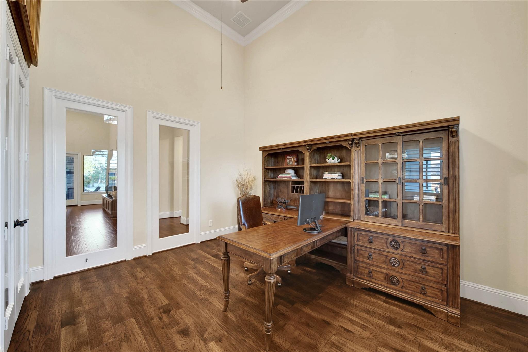Tucked away on a sprawling 1.1-acre homesite, this stunning, custom PIB home delivers the perfect blend of privacy, luxury, and exceptional entertaining. The backyard is a true retreat featuring a sparkling pool and spa, expansive green space, and a large covered patio w/ fireplace. Outdoor kitchen makes it easy to host gatherings while fully enjoying the incredible outdoor setting.Inside, youll find updates galore and a thoughtfully designed floor plan. A private study offers a quiet work space, while the gourmet chefs kitchen impresses with an oversized center island, top-of-the-line appliances, walk-in butlers pantry w/ built-in desk 2nd walk in pantry. Luxurious primary suite features a spa-inspired bath designed for relaxation. Two Guest BRs Down offer ensuite baths. Upstairs boasts large GMRM plus 4th BR & BA. Additional highlights incl an Oversized 3 Car garage w/ rear pass-through door & shop area, Control4 Home Automation, Generator, Well for irrigation!