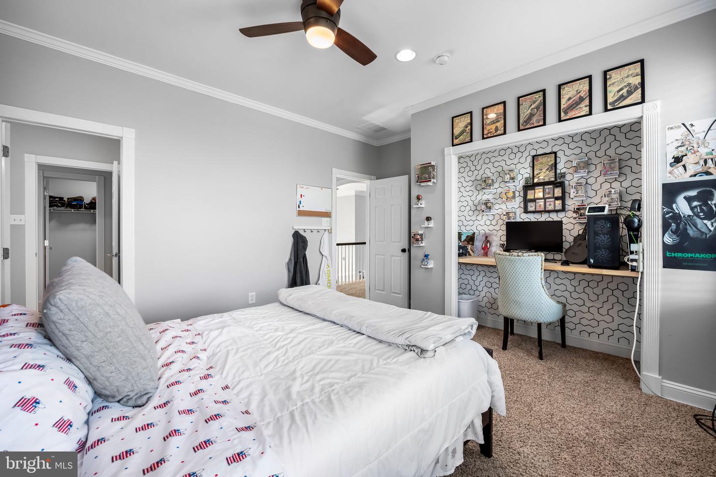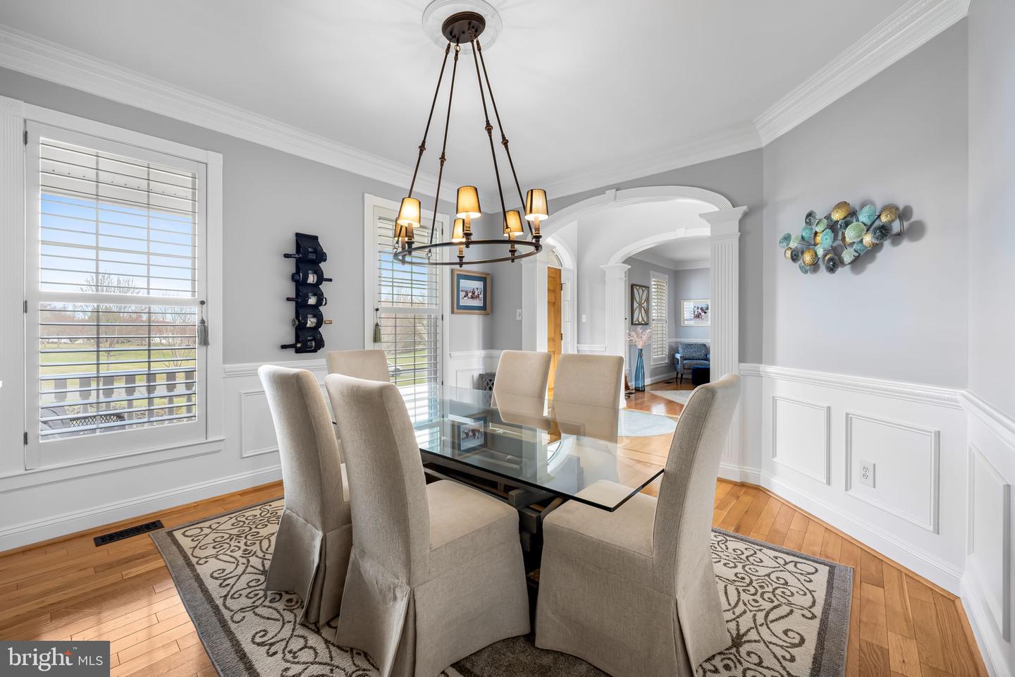 Welcome to this stunning Providence II model by Selfridge Builders in the sought-after Fox Valley Estates. Featuring a classic brick front and an inviting covered front porch, this southern style home combines lavish style with thoughtful modern upgrades. A dramatic two-story foyer welcomes you and hardwood flooring flows throughout most of the main level. All three levels of the home feature 9-foot ceilings, creating an open and airy feel throughout. The beautifully updated gourmet kitchen is the heart of the home and showcases on-trend white cabinetry, upgraded quartz countertops, a large center island with seating for four, and upgraded stainless steel appliances. The adjoining breakfast area with cathedral ceilings is the perfect spot to enjoy morning coffee. The impressive two-story family room is filled with natural light from a wall of windows and features a cozy gas fireplace and built-in shelving, creating a warm and inviting gathering space. Elegant formal living and dining rooms feature hardwood flooring and extensive moldings, perfect for both entertaining and everyday living. The main level office is enhanced with custom built-ins, offering an ideal work-from-home space. The main-level primary suite is a true retreat with hardwood flooring, cathedral ceilings, a large walk-in closet, and direct access to the deck through French doors. The luxuriously updated primary bath features a frameless glass walk-in shower, a freestanding soaking tub, and a double vanity with upgraded countertops. Just off the oversized two-car garage that is wired for EV charging, the convenient welcome center provides a dedicated laundry area and ample space for everyday organization. The upper level offers four spacious bedrooms and two full baths. One of the bedrooms could easily serve as a second primary suite, complete with a large walk-in closet and convenient access to a full bath. The walk-out lower level expands the living space with a large recreation area ideal for entertaining, complete with a wet bar. This level also includes a possible sixth bedroom and a half bath, perfect for guests. A home gym and large storage area complete the lower level..Outdoor living is just as impressive with a low-maintenance screened porch that overlooks the deck, paver patio, and flat backyardthe perfect setting for relaxing or entertaining. Fox Valley Estates features a neighborhood pool and tennis court and is ultra convenient to commuter routes and all the modern conveniences in Clarksville and Ellicott City. This exceptional home blends space, style, and functionality in one of the areas most desirable communities!