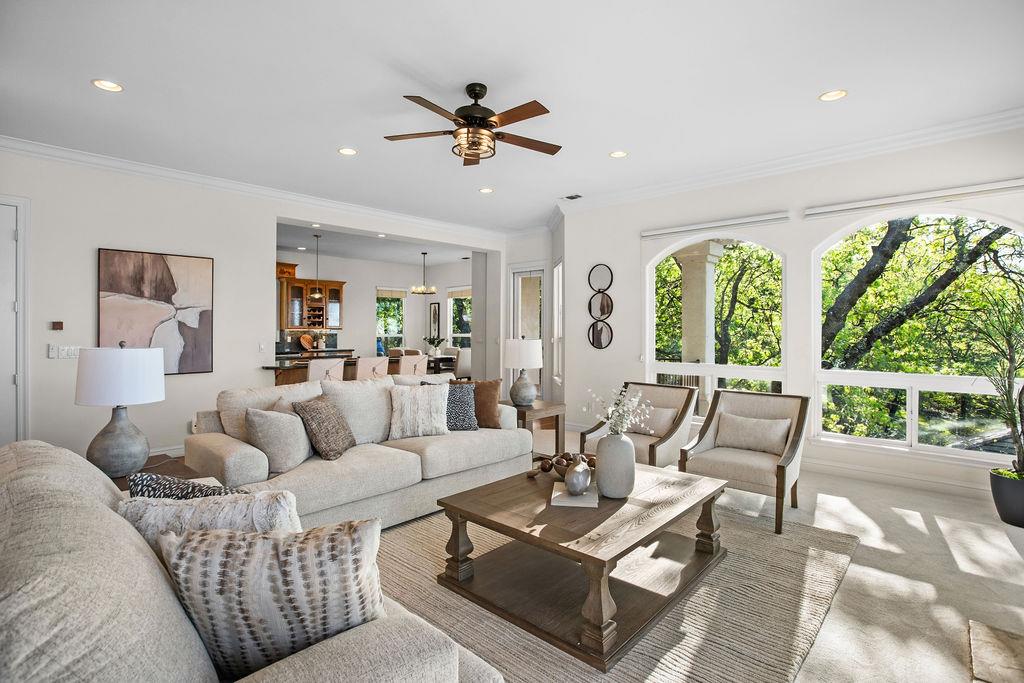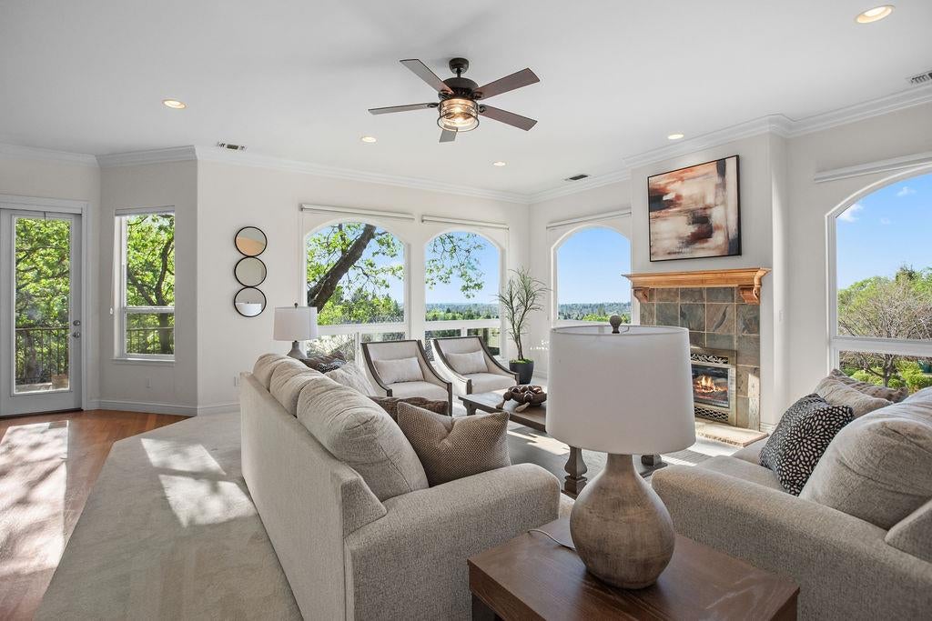 Offered for the first time, this exceptional custom residence presents a rare opportunity to own a home where architectural presence, privacy, and refined living converge. Set high in Eastwood Park, the home captures sweeping views and delivers a sense of scale and sophistication from the moment you arrive. Designed for both entertaining and everyday comfort, this home features 3 bedrooms, 3.5 baths, a dedicated office, and a seamless open-concept layout. Expansive living spaces are complemented by soaring ceilings and a wall of windows that flood the interiors with natural light while framing the surrounding landscape. The chefs kitchen is thoughtfully appointed with a premium cooktop, granite surfaces, built-in ovens and microwave, and an expansive walk-in pantry. Flowing into the main living and dining areas, hosting is effortless. Multiple gathering spaces, including inviting living areas with masonry fireplaces create warmth while maintaining a refined aesthetic. The primary suite is a private retreat, generously scaled and positioned to take full advantage of the homes scenic outlook. The spa-inspired en-suite bath and ample closet space complete the experience of comfort and luxury. Spacious living area and secondary bedrooms are located on the lower level offering privacy and multi-generational options. Outdoors, the property provides a tranquil setting with the potential to curate a bespoke outdoor living environment ideal for entertaining or enjoying quiet evenings with sunset views. Located just minutes from parks, shopping, dining and Highway 50, this residence offers a rare blend of convenience, privacy, and elevated design in one of Cameron Parks most desirable enclaves.
