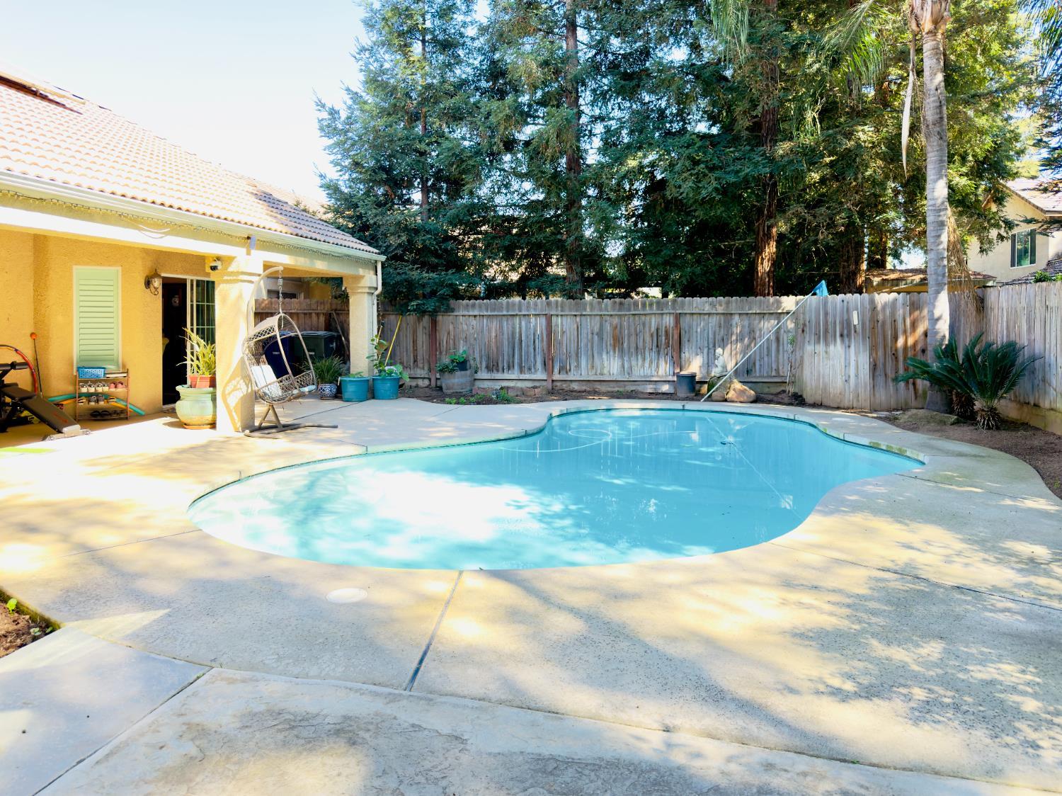 Located on a quiet corner lot in The Dominion, this Granville home offers a comfortable layout in one of northeast Fresnos most established neighborhoods. The entry opens to a bright living space with an easy flow into the family room, and kitchen all overlooking the backyard and pool. The home office is located in the front just to the left of the main entry. The primary bedroom is conveniently located downstairs for added privacy at the back corner, and another bedroom in the front corner. Two additional bedrooms with a jack and jill bathroom are upstairs that work well for guests, work, or a second living area. The backyard is made for Fresno summers, featuring a pool, covered patio, and plenty of space to relax. This home has owned solar as well. Set near parks, Champlain shopping and dining, and within Clovis Unified, this home sits in a highly walkable and well-kept part of The Dominion.