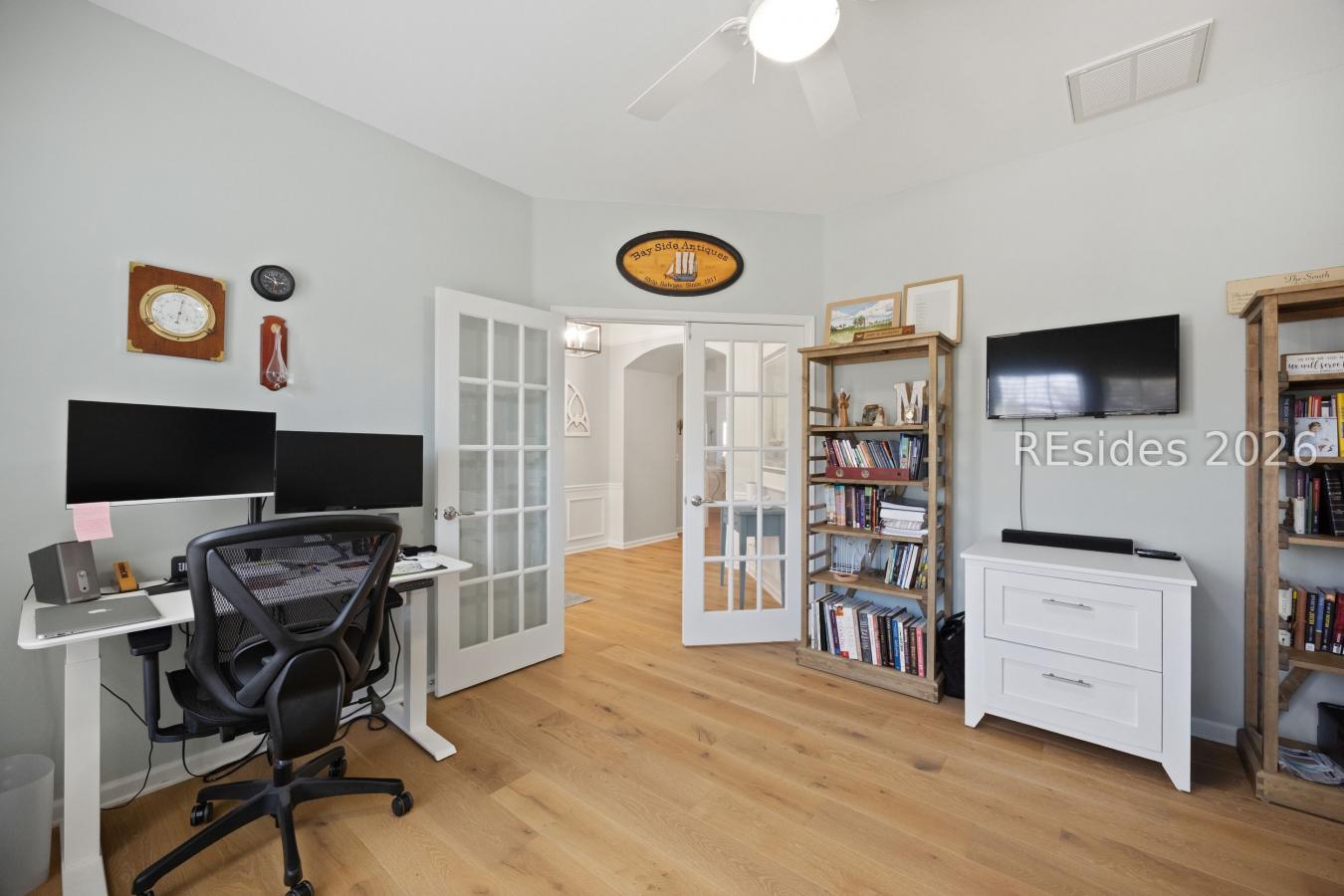 On one of Moss Creeks most coveted streets, this private marsh-front retreat captures the true magic of Hilton Head living. Set back on a generous homesite, the home is designed to embrace expansive, ever-changing marsh views-glowing sunrises, tidal reflections, and endless sky. Golf views grace the front, but the marsh is the star. A beautifully landscaped gated courtyard welcomes you in, where doors from nearly every room open to nature. The main Carolina Room showcases wide marsh vistas, while a second, more intimate Carolina Room off the kitchen and a third bedroom also overlooks the marsh-ideal as a studio or quiet retreat. The chefs kitchen features high-end appliances and striking art-worthy countertops. Wood floors run throughout, and baths are beautifully & newly updated. The spacious primary suite enjoys marsh views, a wood-burning fireplace, and a private den. 3 bedrooms, 2.5 baths, separate laundry, and a two-car garage. A timeless home in an unforgettable setting. Enjoy all of Moss Creeks premier amenities.