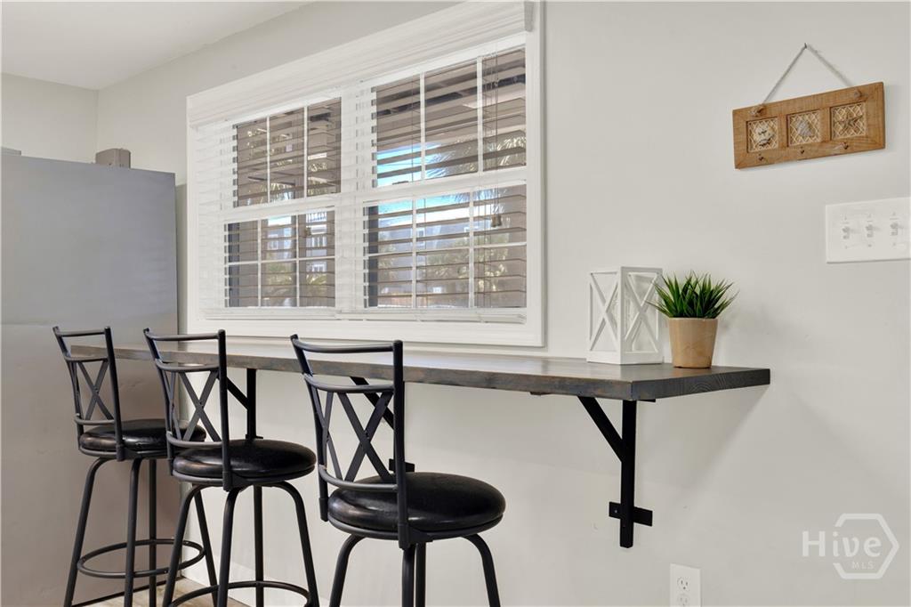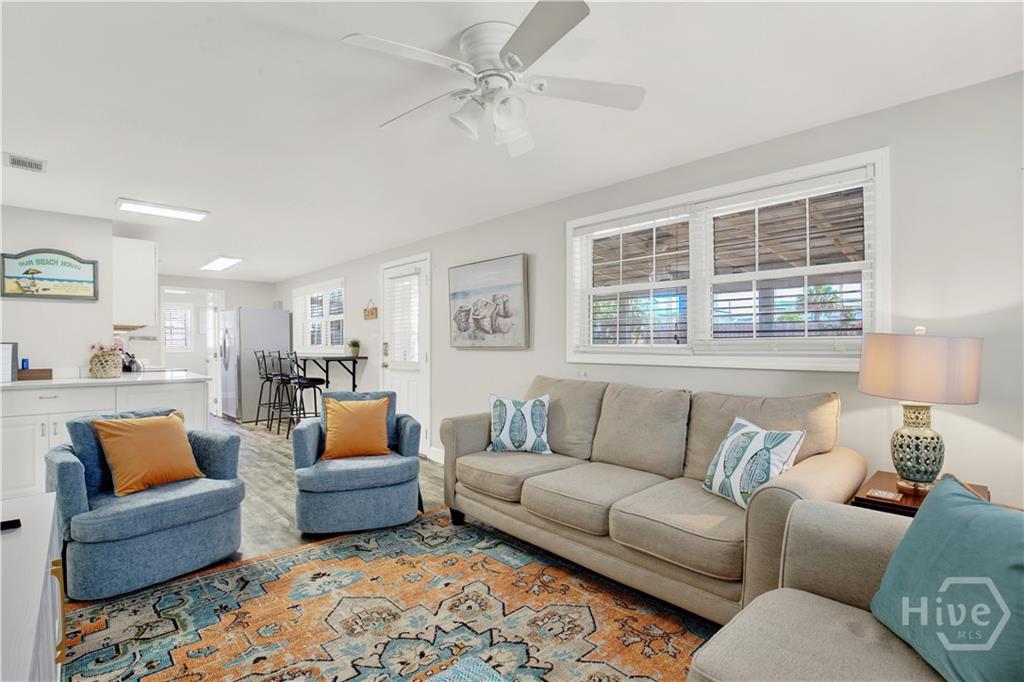 Adorable and move-in ready, this charming 4 BR, 2 BA single level Tybee cottage is perfectly situated just one block from the beach. Thoughtfully renovated, the home features an open-concept living area and an inviting eat-in kitchen designed for both comfort and style. The coastal inspired kitchen showcases stainless appliances, a custom built bar with seating for four, and luxury vinyl plank flooring that runs seamlessly throughout the entire home. Relax and unwind on the spacious covered screened-in front porch- perfect for enjoying ocean breezes year round. The outdoor living space is equally impressive, featuring a dining area, sofa and fire pit ideal for entertaining or quiet evenings relaxing after a fun day at the beach. The primary suite offers a private en-suite bath, while three generously sized guest bedrooms are tucked along the rear of the home and share a well- appointed full hall bath. Additional highlights include a hall laundry, a large wide driveway with room for a boat, and a beautifully landscaped, fully fenced yard complete with an outdoor shower. Enjoy the convenience of being within walking distance to the beach, local shops, restaurants & coffee shop. This coastal gem is ideal as a primary residence or a vacation hom