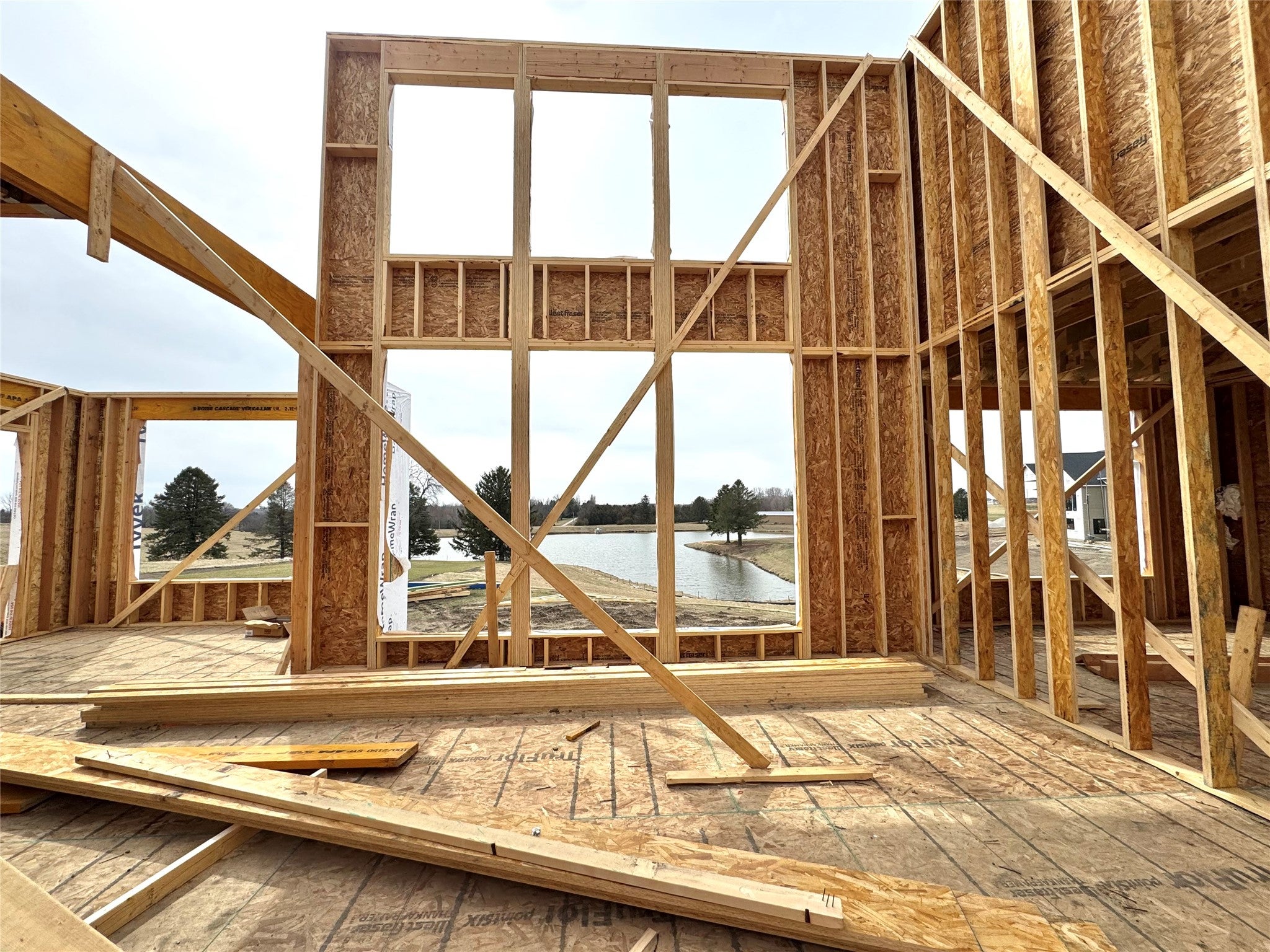 Beautiful 1.5-story home by Destination Homes set on a .49-acre lot backing to a serene pond, offering stunning views and exceptional outdoor living with a covered deck and patio. This thoughtfully designed home features an open layout with soaring windows and a dramatic 2-story great room. The main level includes a den, a chef-inspired kitchen with JennAir appliances, including a 48 dual-fuel range, a large walk-in pantry, and a dining room overlooking the pond. The luxurious primary suite offers dual vanities, a soaking tub, tiled shower, walk-in closet, and linen storage. A custom mudroom, powder room, and laundry complete the main floor. Upstairs, youll find three bedroomsone with a private bath and two sharing a full bath. The finished walk-out lower level adds a second family room with a fireplace, a custom-designed wet bar, two additional bedrooms, an exercise room, and a bathroom. A 4-car garage with over 1,000 sq. ft. includes a tandem stall for flexibility. Built with quality craftsmanship, this home features 2x6 construction, blown-in insulation, upgraded windows, 30-year shingles, and high-efficiency HVAC. Pricing and features subject to change; additional lots and plans available.